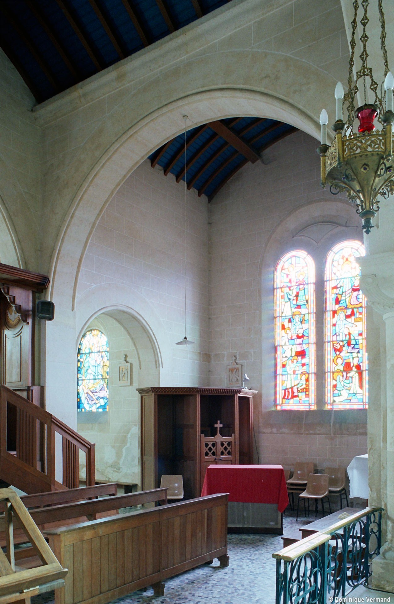 Outre une chaire à prêcher art déco, l’église compte des vitraux de diverses époques, oeuvre des maîtres verrier Avenel (années 30), Flachat (1960) et Pasquier (1961) (2008).