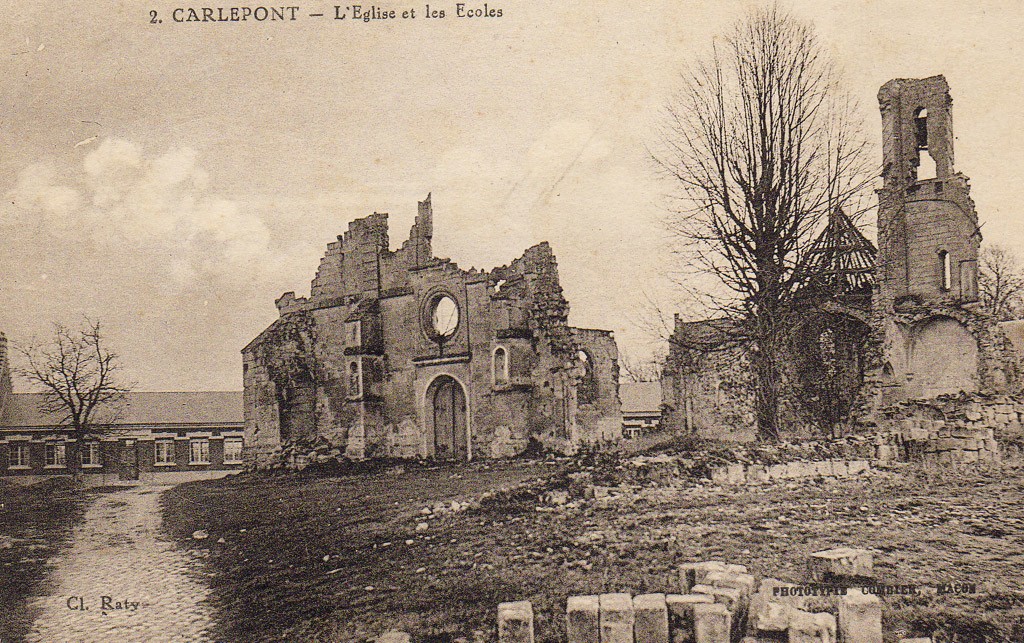 Carlepont a été, jusqu’à la fin de l’Ancien Régime, le lieu de villégiature des évêques de Noyon. Reconstruit à plusieurs reprises et, pour la dernière fois, au 18ème siècle, le château occupait une butte dominant le village à l’est de l’église. Comme celle-ci, il a été presque totalement ruiné durant la Guerre 14-18.