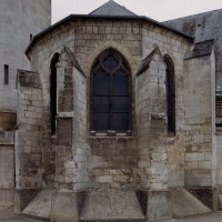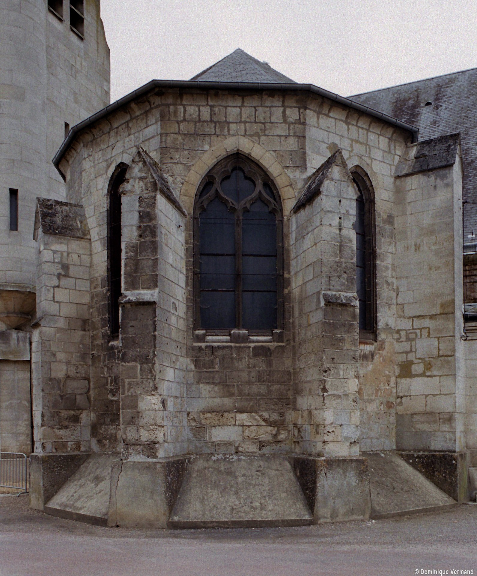 Seule partie de l’église à avoir échappé au désastre, l’abside a été conservée. Comportant cinq pans, elle est voûtée d’ogives et éclairée par trois fenêtres dont celle du centre, plus grande, possède un réseau flamboyant. Greffée sur le flanc oriental du nouvel édifice, construit lui selon un axe nord-sud, elle n’est plus aujourd’hui qu’une simple chapelle.