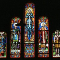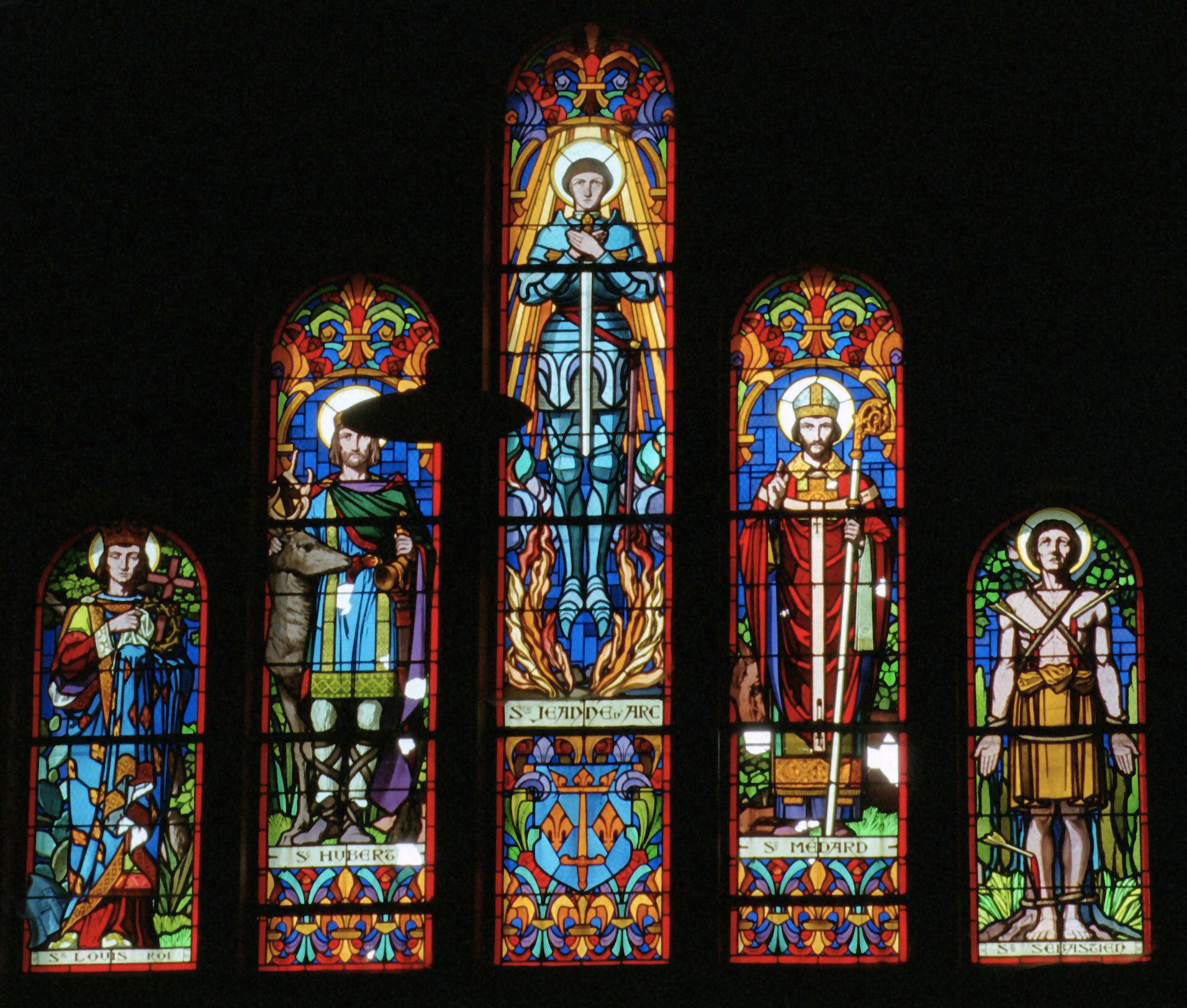 L’église possède un très intéressant ensemble de vitraux des années 1920 et 30 : une très grande verrière représentant le Jeudi Saint ; en façade, un ensemble de cinq vitraux consacrés à saint Louis, saint Hubert, sainte Jeanne d’Arc, saint Médard et saint Sébastien ; enfin deux vitraux (1934) de Houille ayant pour thème l’ancienne église et le Christ bénissant un soldat agonisant (2008).