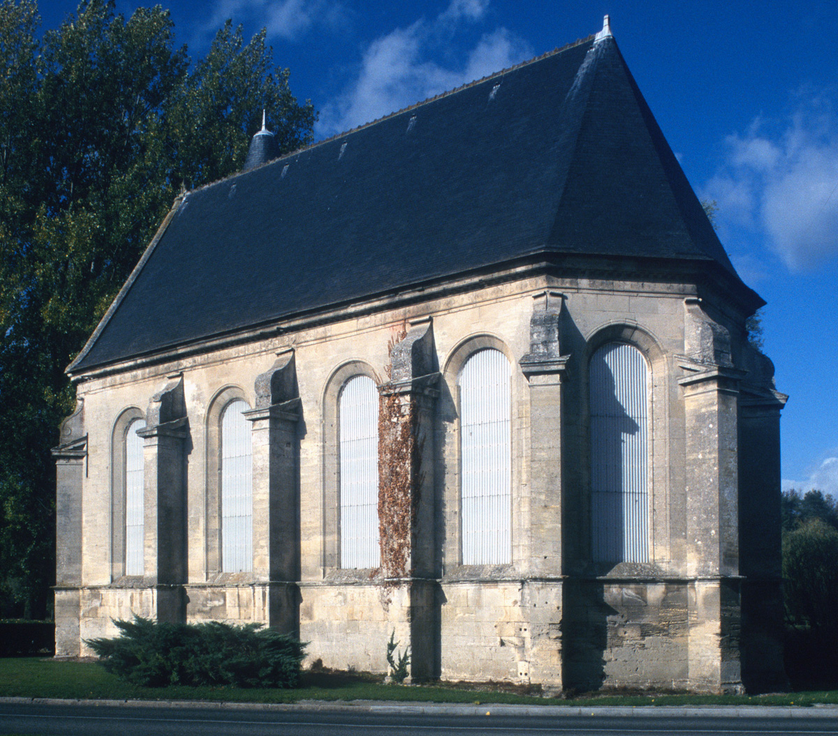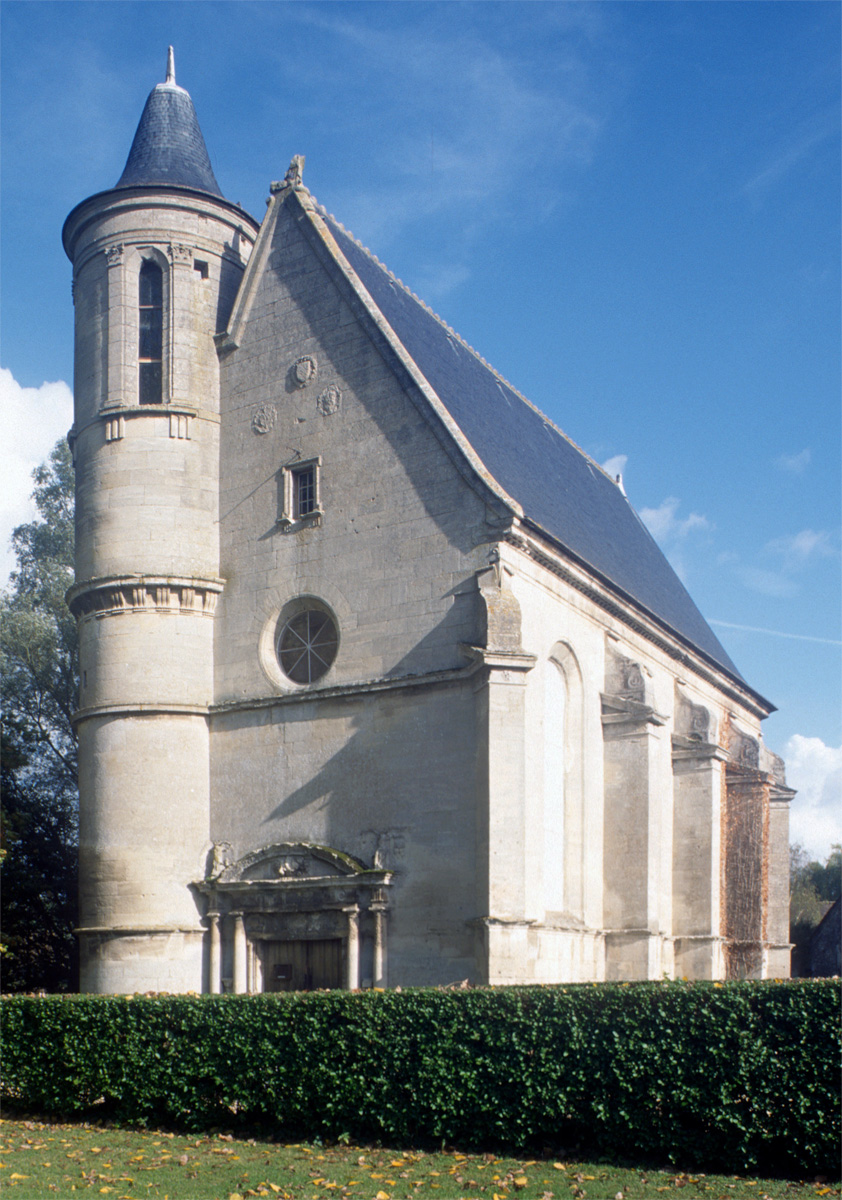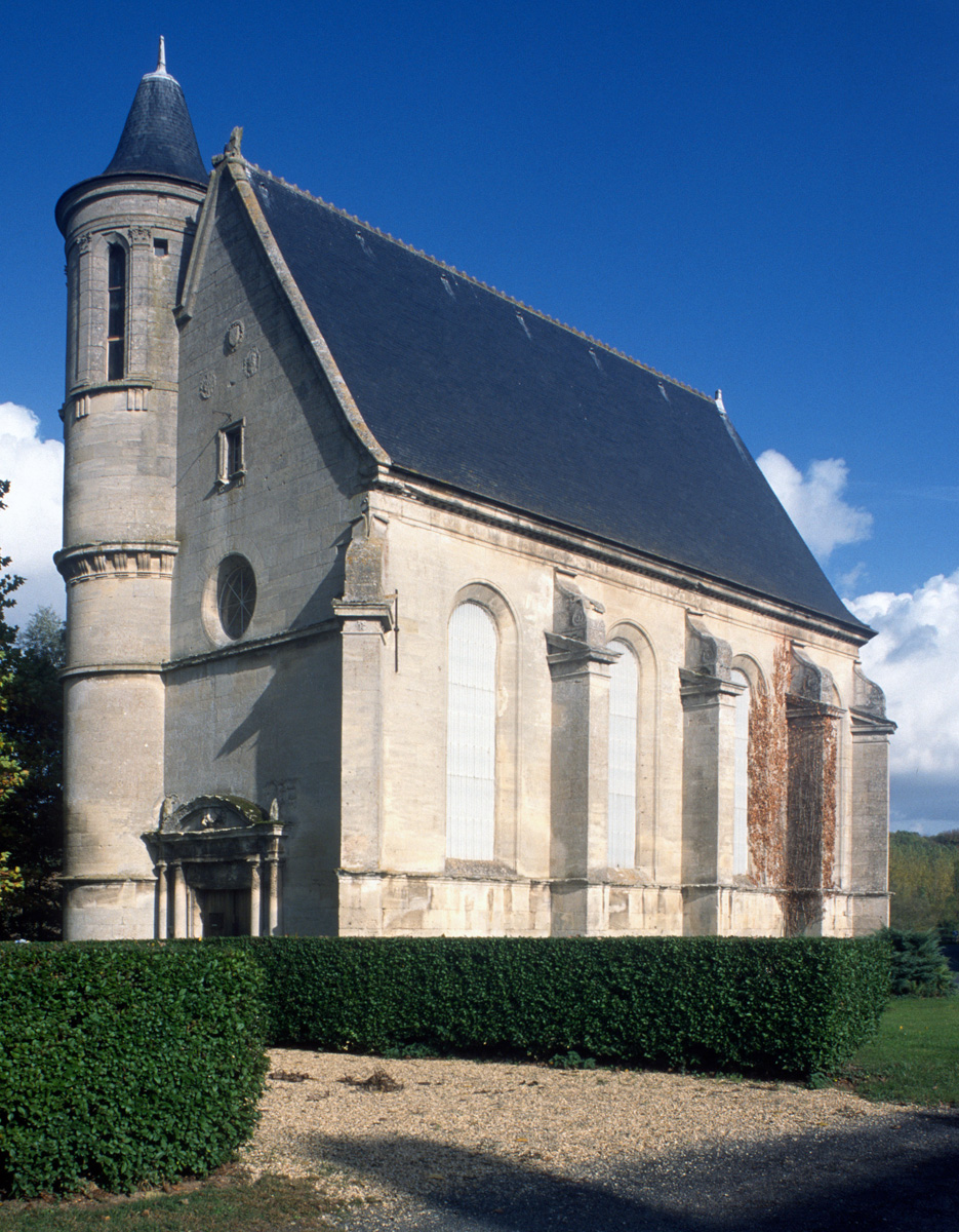 Assis sur un encorbellement faiblement saillant, le lanternon, ajouré par trois baies allongées qui s’inscrivent entre des pilastres cannelés, reste imprégné du vocabulaire de la Renaissance, à l’image de certains éléments du décor de la chapelle. Les murs latéraux et le chœur sont percés de hautes fenêtres en plein cintre et épaulés par des contreforts dont la partie supérieure, bénéficiant du même soin apporté au reste de la construction, s’amortit en console renversée (1997).