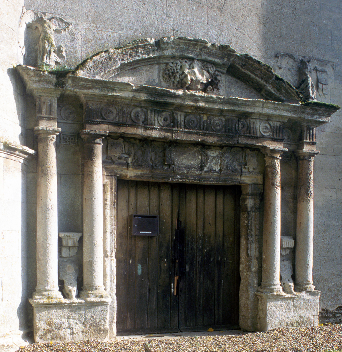L’extérieur vaut principalement pour la façade, avec son mur pignon très aigu et son original lanternon. Le portail associe, en une belle composition, deux double colonnes couronnées de chapiteaux doriques et supportant un entablement orné de six rosaces que couronne un fronton courbe encadré par deux anges. Comme à l’intérieur, certains éléments du décor sont malheureusement bûchés ou abimés.