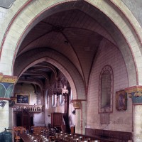 C’est à la fin du 13ème ou au début du 14ème siècle qu’est reconstruit le choeur, privé de sa voûte d’ogives lors de la restauration du 19ème siècle mais intéressant par les trois fenêtres de style gothique rayonnant – et tout particulièrement celle du chevet – qui l’éclaire. Au 16ème siècle, une chapelle au sud de la travée du clocher – chapelle de la Vierge – puis une nef avec bas-côté au sud donnent à l’église son visage actuel. L’intérieur de la nef sera totalement repris au 19ème siècle et doté de voûtes d’ogives plates inspirées du style gothique perpendiculaire anglais.