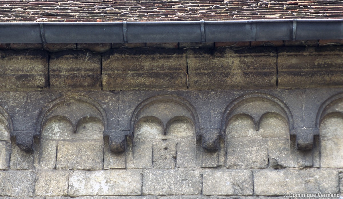 A l’extérieur, on remarque une corniche beauvaisine associée, à l’extrémité est, à une demi colonnette issue du contrefort, comme à Saint-Etienne de Beauvais. Un rare antéfixe représentant un oiseau coiffe le pignon du chevet (2002).