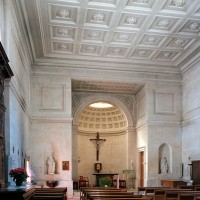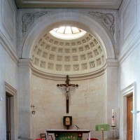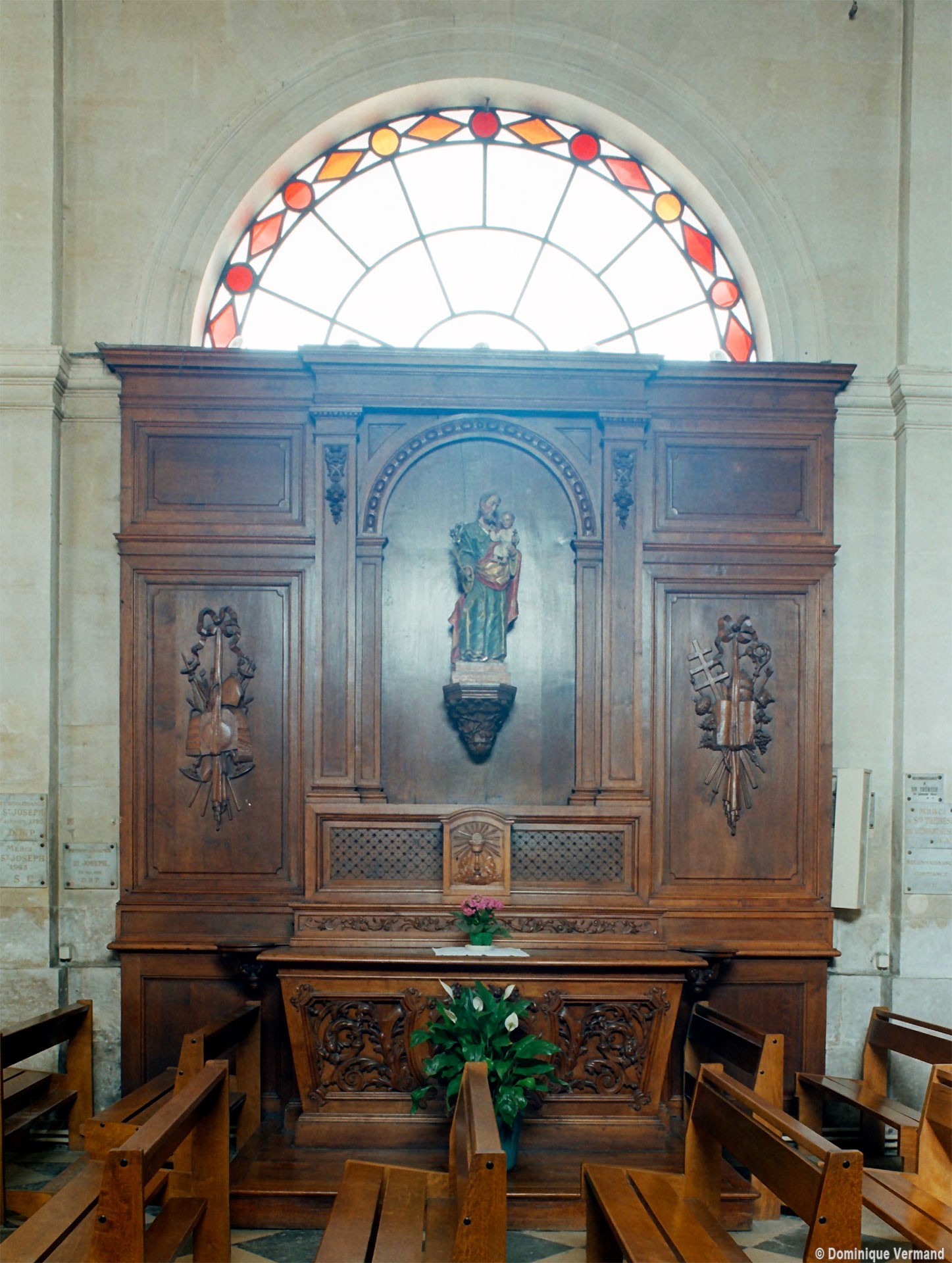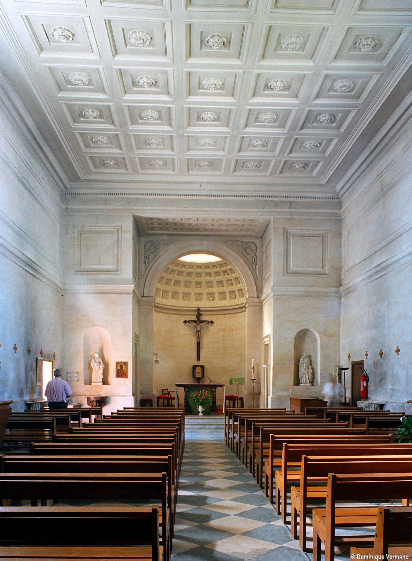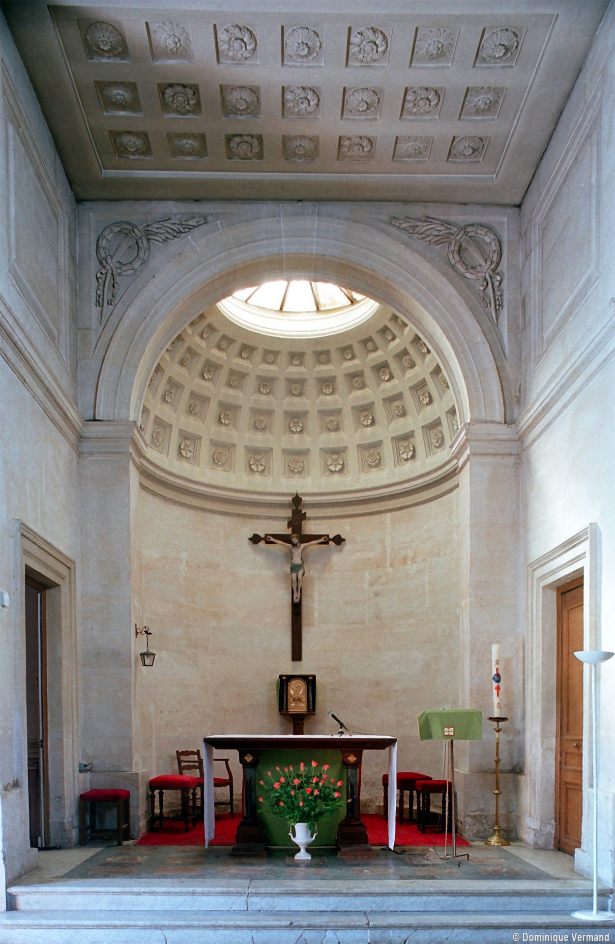 Aujourd’hui Fondation Condé, l’hôpital Condé a pour origine une maison de Charité fondée en 1647 à Vineuil par Charlotte-Marguerite de Montmorency, mère du Grand Condé. C’est à un legs effectué en 1709 par Henry-Jules, prince de Condé, que l’on doit la construction des premiers bâtiments à l’emplacement actuel. L’implication permanente des Bourbons vaudra à l’hospice d’être maintes fois remanié et agrandi et, dans son état actuel, la chapelle, dédiée à saint Vincent de Paul, est due à la reine Marie-Amélie, épouse de Louis-Philippe (1836). C’est une sobre construction de style néo-classique, peu fréquent dans l’Oise, composée d’une nef unique éclairée par des fenêtres en demi-lune et terminée par une abside en hémicycle. On accordera surtout son attention au décor finement sculpté des caissons du cul-de-four de l’abside ainsi qu’à la belle composition de la façade formant porche, surmontée d’une grande statue de sainte Louise de Marillac (2002).