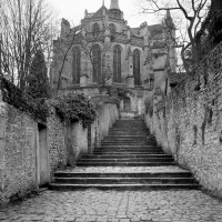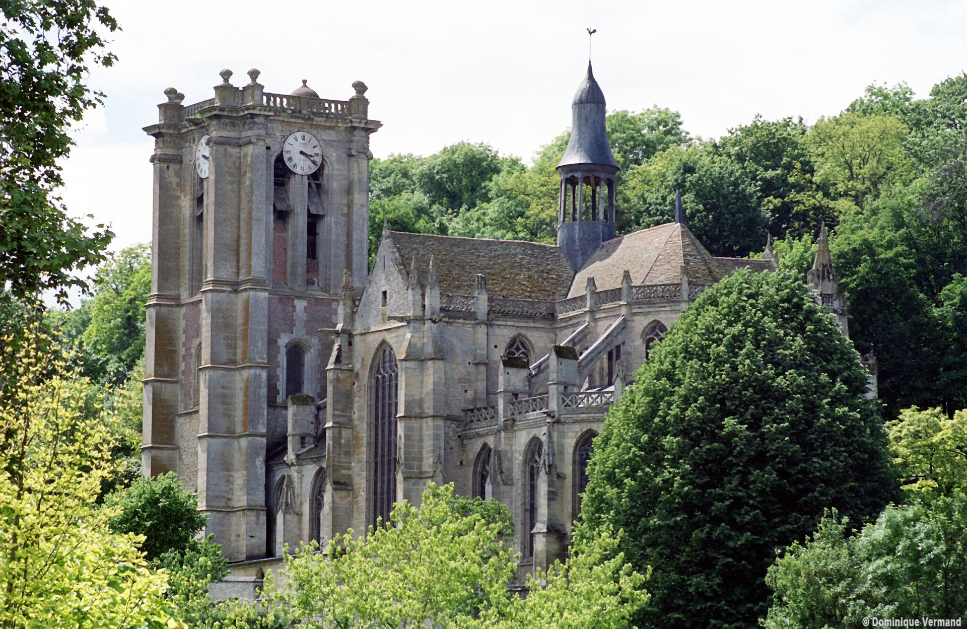 Occupant une situation dominante sur le flanc oriental de la butte où s’élevait jadis la forteresse médiévale, Saint-Jean-Baptiste constitue un magnifique exemple d’architecture gothique tardive. Eglise paroissiale, elle a été bâtie à partir de la fin des années 1520 pour répondre aux besoins d’une population croissante, qui ne pouvait plus se suffire de l’ancienne église Notre-Dame, au sommet de la butte, trop petite et d’un accès difficile. François de Bourbon, comte de Chaumont, son frère cadet Louis, abbé de Saint-Denis et Jean Le Bossu, prieur de Saint-Pierre, interviennent directement dans la construction de l’édifice, confiée au talent de Nicolas Jouette, présent auparavant sur le chantier de Saint-Gervais-Saint-Protais de Gisors aux côtés de Robert Grappin. Les travaux démarrent par le chevet vers 1528 et procèdent vers l’ouest. La façade nord et la chapelle attenante sont terminées en 1539 et la consécration de l’édifice intervient en 1554. A cette date la façade ouest reste à construire et la tour sud, seule, sera achevée à la fin du 16ème ou au début du 17ème siècle.
