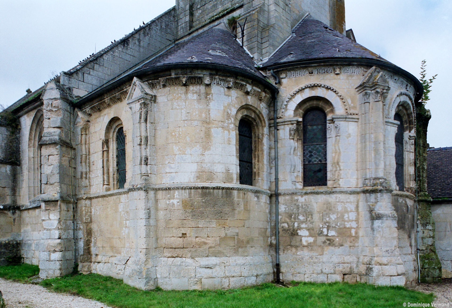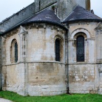 Le chevet de Notre-Dame forme, avec le clocher qui le domine, l’un des plus beaux ensembles d’architecture romane de l’Oise. Il appartient à un édifice bâti dans les années 1140/50 dont la plan était alors composé d’une nef non voûtée de cinq travées avec bas-côtés et d’un chœur formé d’une travée droite et d’une abside en hémicycle. Deux chapelles, également terminées en hémicycle, flanquaient le chœur et communiquaient avec lui par une petite arcade brisée. Le clocher est assis sur la travée droite du chœur. Les dispositions d’origine de la nef ont seules subsisté au mur gouttereau nord, dont les cinq arcades brisées avec ressaut, reçues sur des piliers cruciformes à tailloir continu, sont bien conservées.