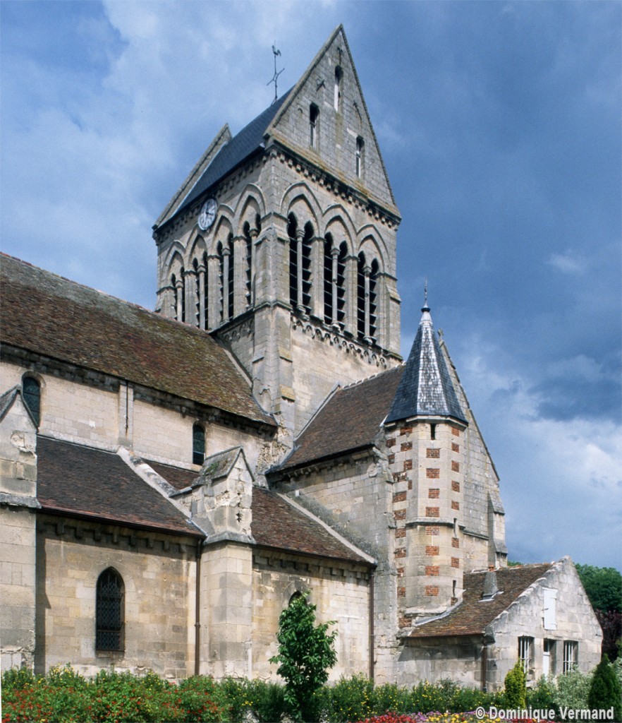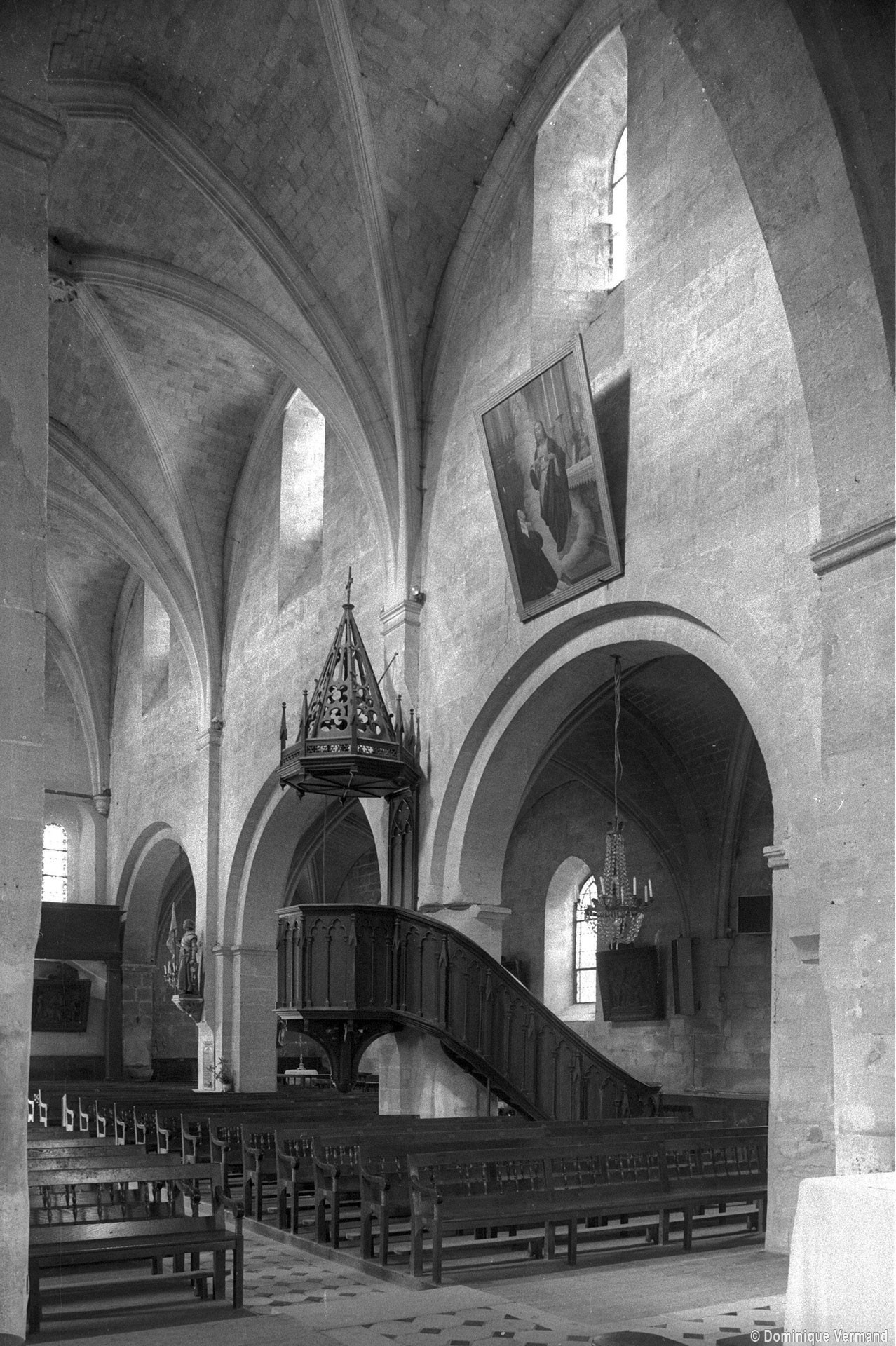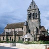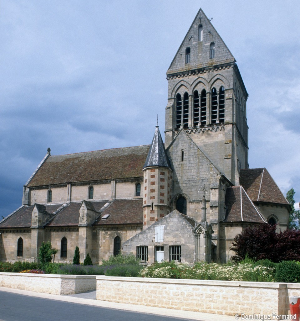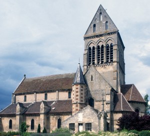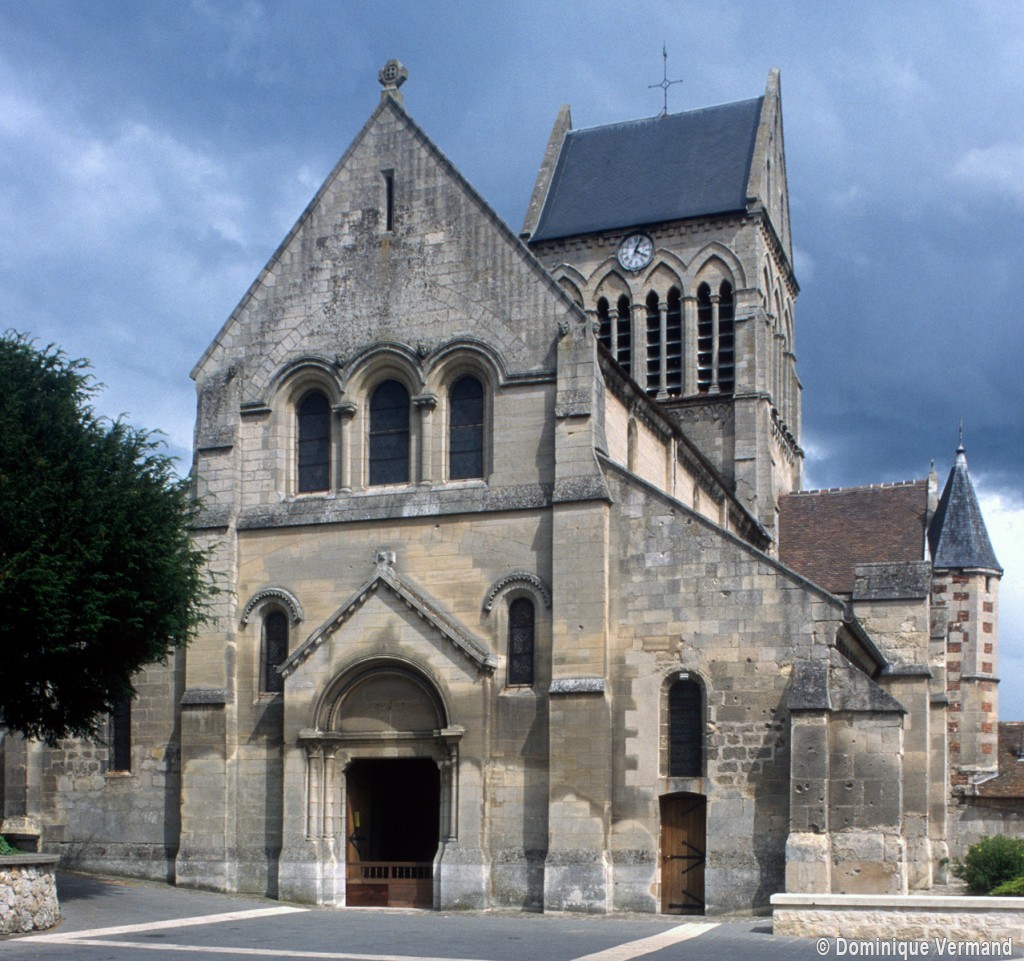 Bien que pénalisée, à la fin du 19ème siècle, par une restauration excessive (façade “réinventée”, bas-côtés refaits, chevet et transept réappareillés) qui lui confère une certaine sécheresse, l’église paroissiale n’en reste pas moins un édifice très intéressant marqué, à l’extérieur, par l’impressionnante masse du clocher autour duquel autour se distribuent les différents volumes de l’église. L’étage du beffroi est ajouré, au nord et au sud, de trois baies recoupées par une colonnette et, sur les deux autres côtés, de quatre baies ce qui est exceptionnel. C’est, pour l’essentiel, un édifice des années 1140 (nef) et du troisième quart du 12ème siècle. Seules sont plus tardives les voûtes de la nef (16ème siècle) et des bas-côtés (19ème siècle).