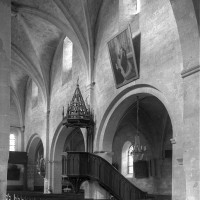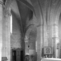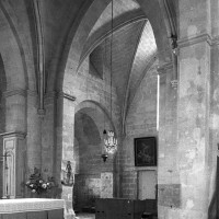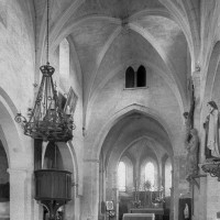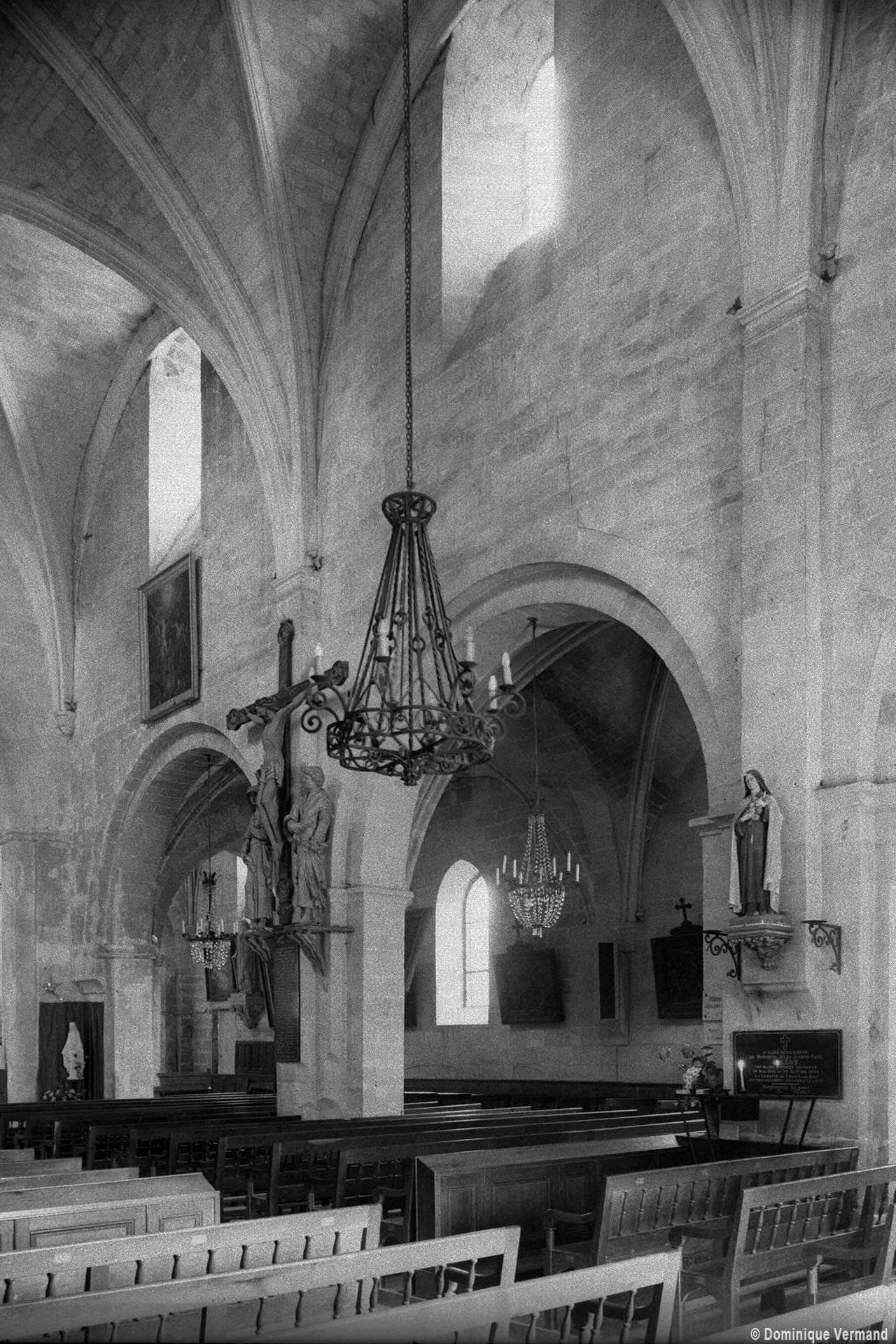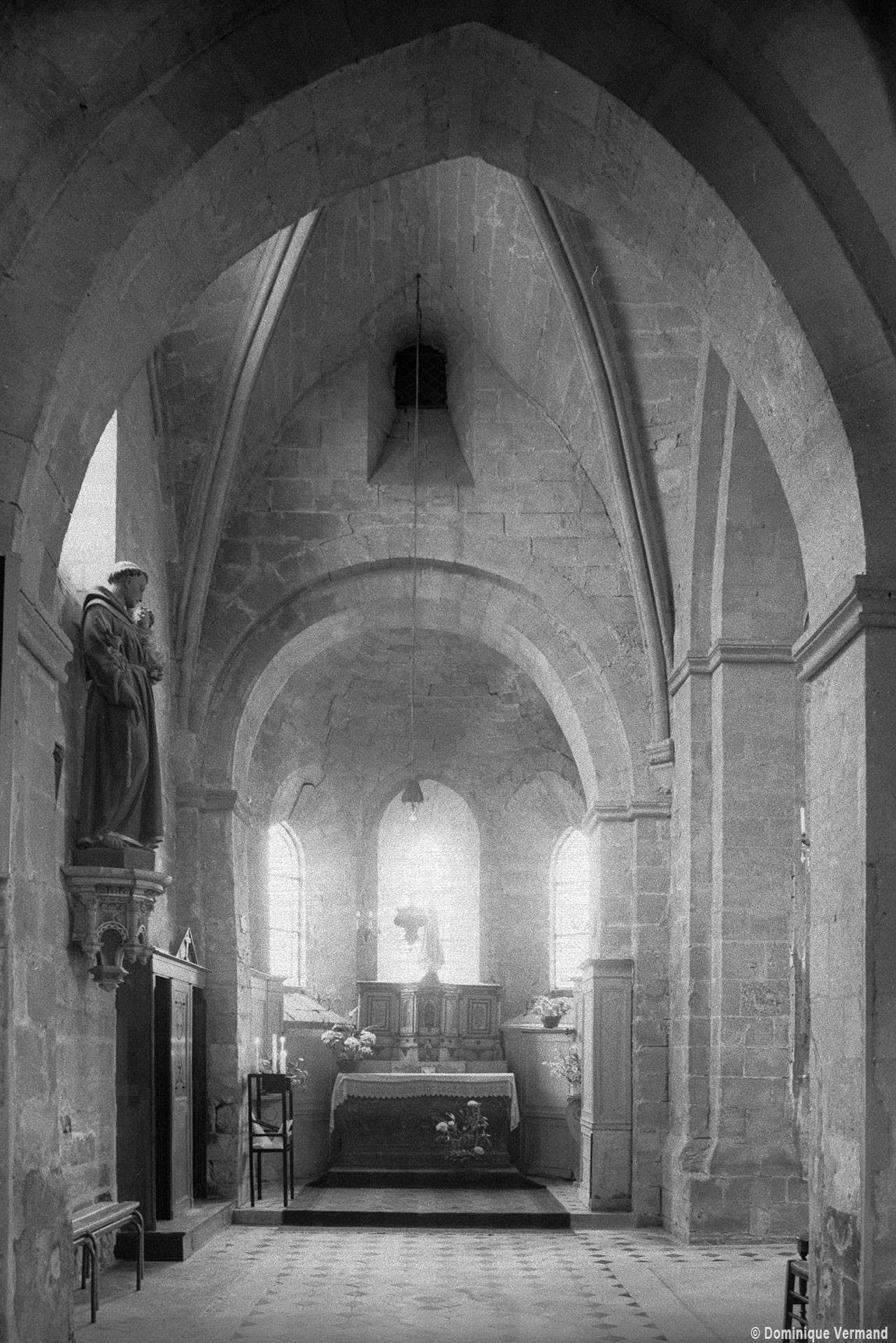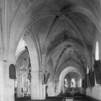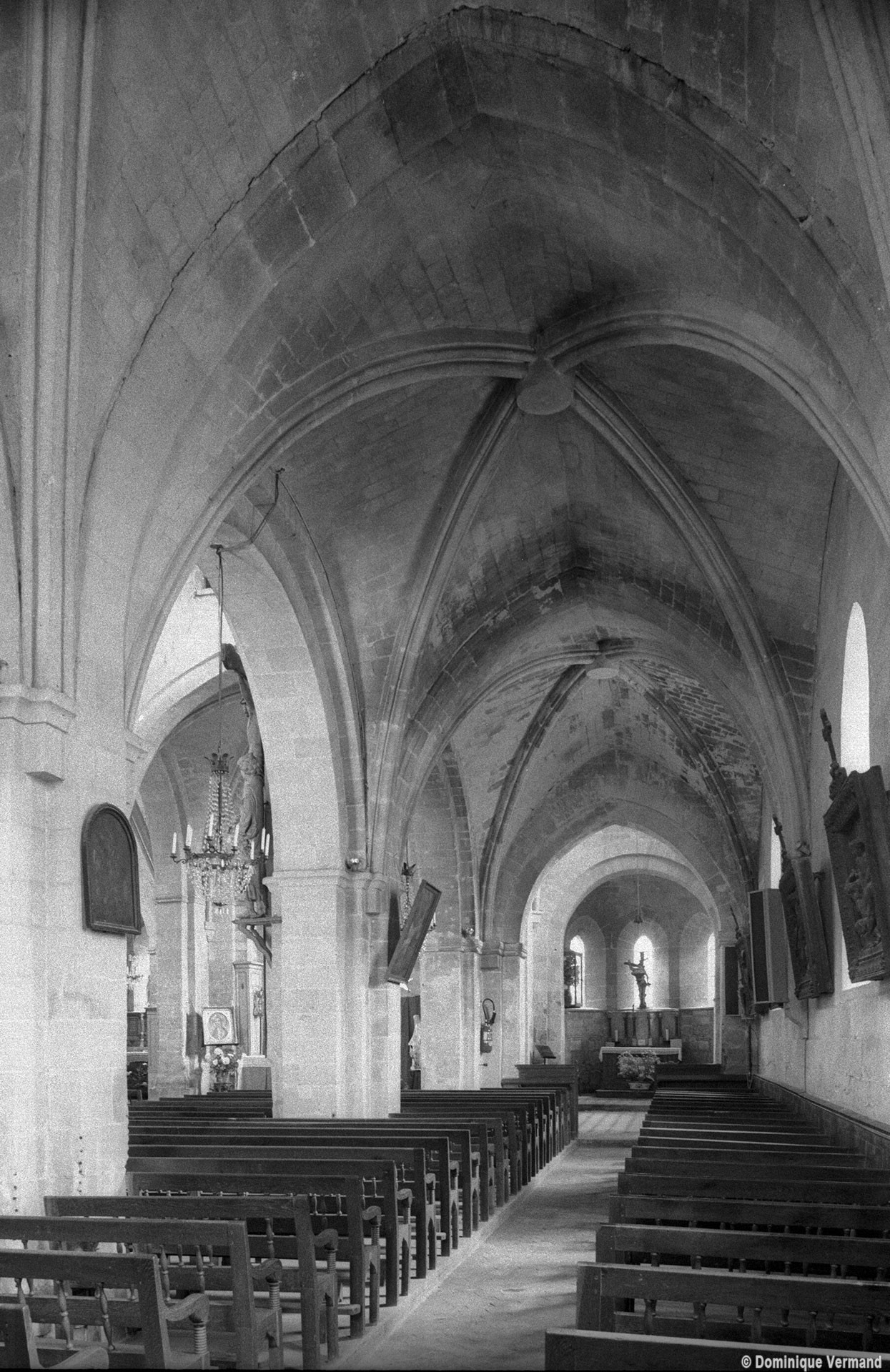 Les parties orientales (transept et choeur) ont, en revanche, été voûtées dès l’origine. Elles associent des voûtes d’ogives (transept et abside centrale) à des voûtes en cul-de-four (chapelles latérales). Dans l’abside centrale, où l’on remarque un beau maître-autel baroque, les ogives retombent sur des colonnettes baguées, un dispositif élégant qui se rencontre fréquemment dans le Soissonnais.