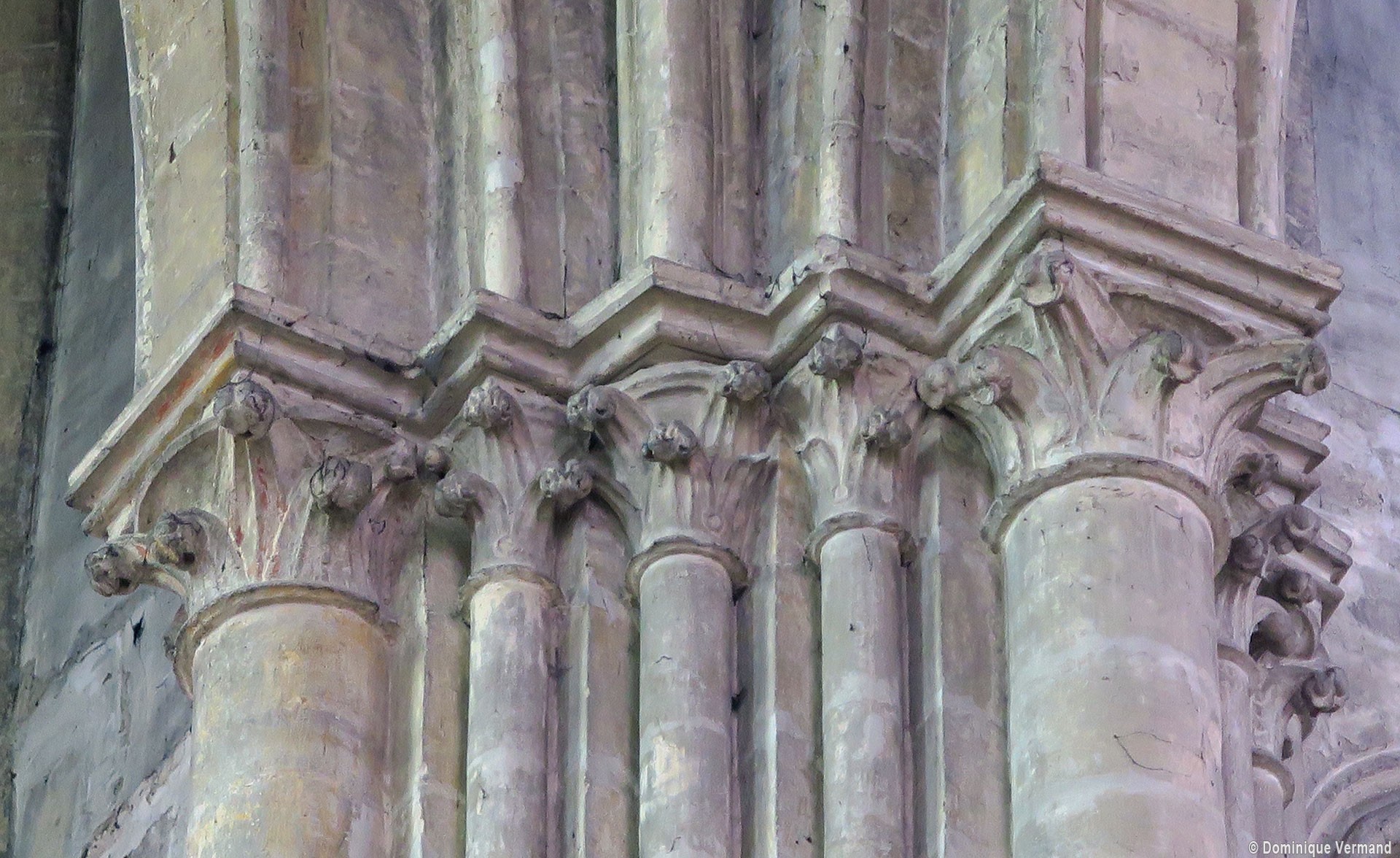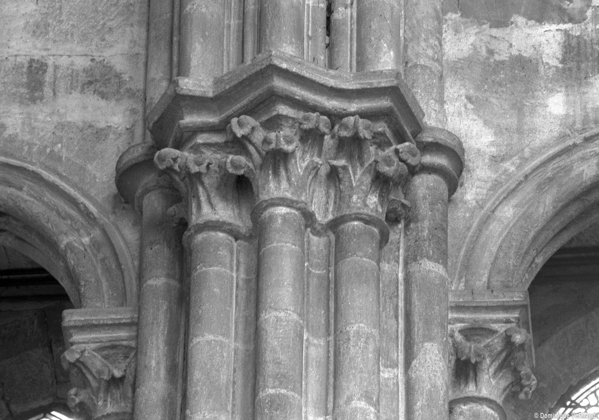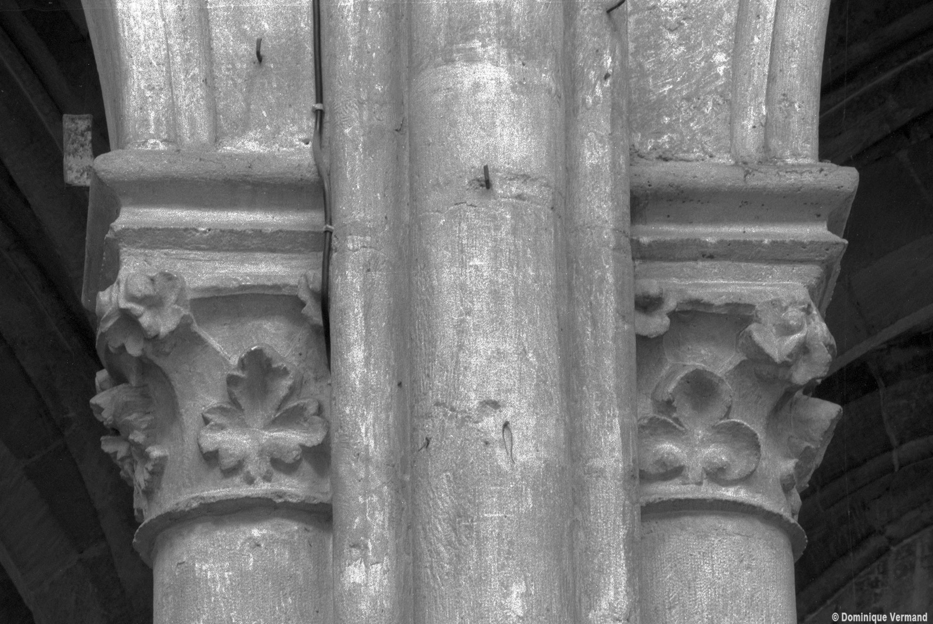 Construite d’est en ouest entre 1240 et 1270 environ, la nef ne reçut ses voûtes que sous Louis XI, en 1476-1477. Malgré des qualités indéniables, les boiseries du 18ème siècle qui habillent les piliers ne permettent plus d’apprécier à sa juste valeur la belle architecture de cette nef, à la fois sobre et raffinée. Visibles seulement en partie haute, les piliers sont remarquables de minceur, le noyau central ayant pratiquement disparu au profit des demi-colonnes associées à la retombée des arcades et des voûtes. On observera tout particulièrement l’unique chapiteau à tailloir en étoile qui, vers le bas-côté, reçoit ogives, doubleau et formerets, tous de même importance et de profil identique. A la même époque, l’extraordinaire église abbatiale de Saint-Martin-aux-Bois, au nord-ouest de Compiègne, en proposera une variante encore plus aboutie et raffinée. Au-dessus des grandes arcades, les parties hautes sont traitées avec une grande sobriété : étage intermédiaire ajouré simplement de deux lancettes donnant sur les combles et étage supérieur – de la fin du 15ème siècle – assez court et occupé tout entier par une fenêtre sans réseau.