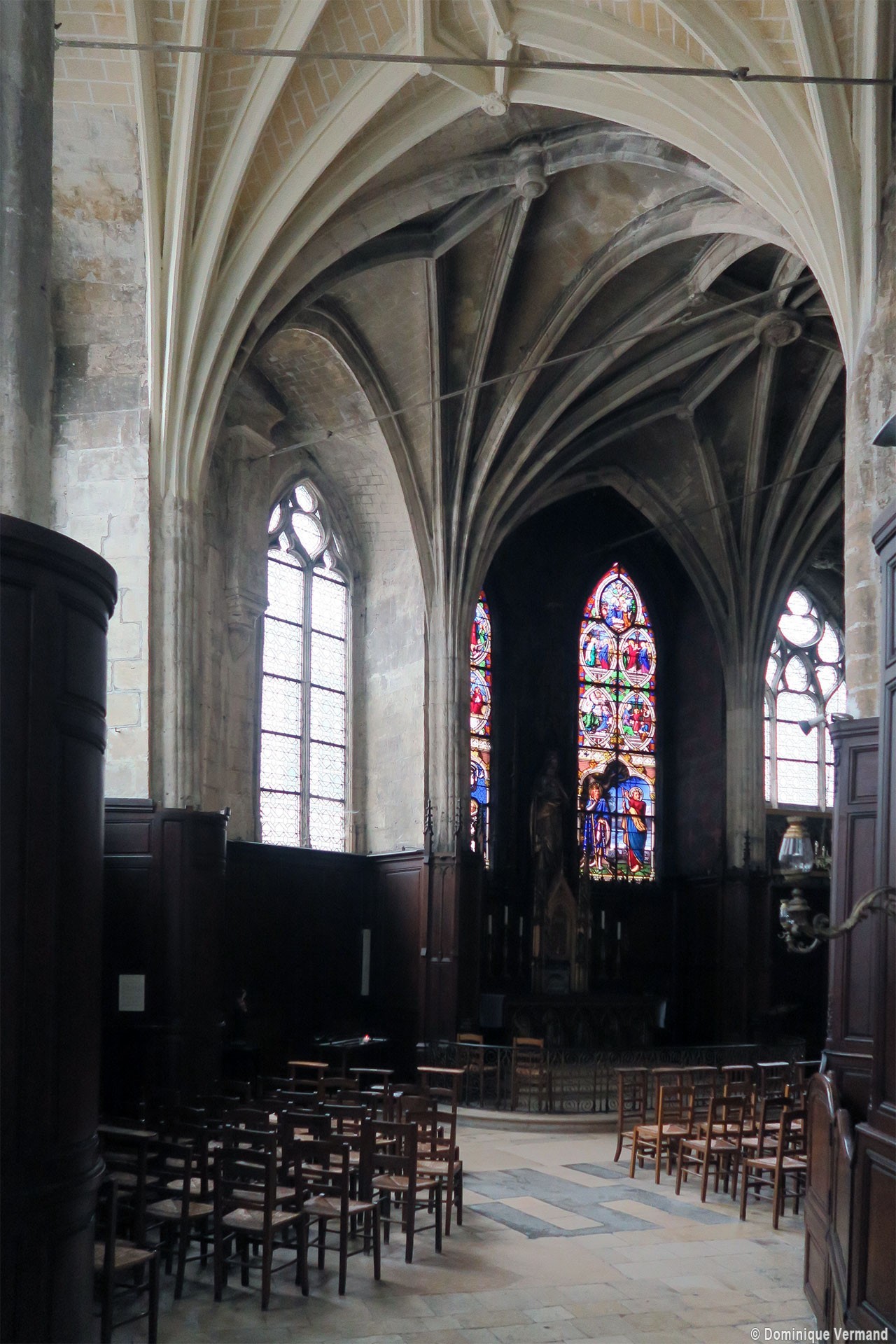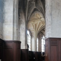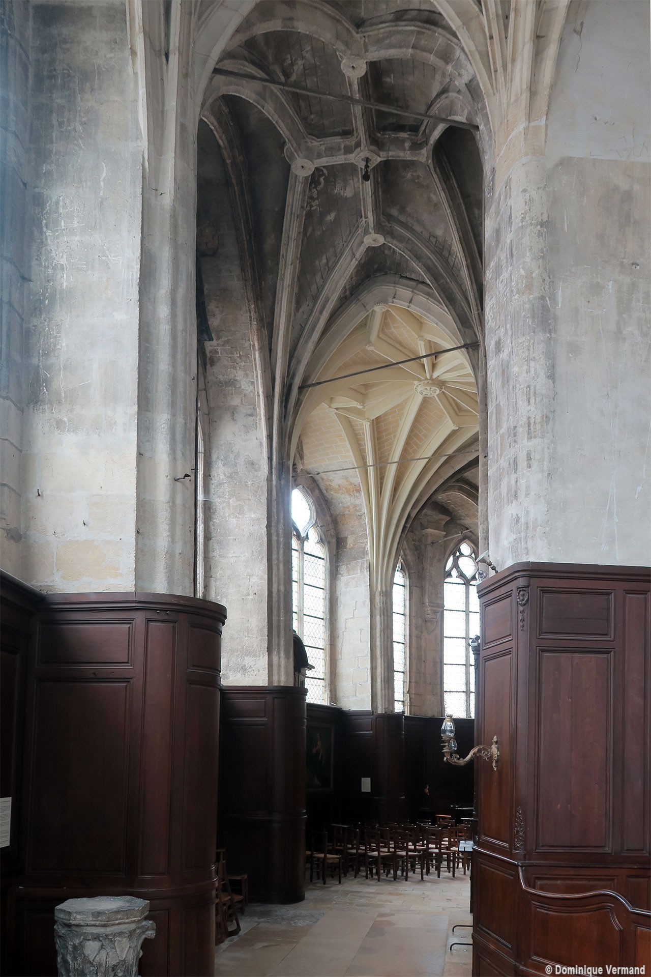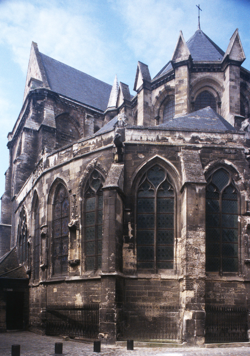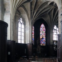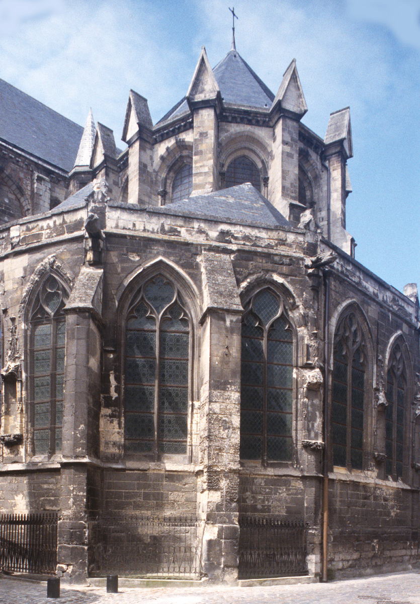 Avant même son achèvement tardif, l’église subissait une modification progressive de son plan initial : construction, du 14ème au 16ème siècles, de chapelles entre les contreforts de la nef; reconstruction d’une nouvelle façade avec tour au 15ème siècle et, enfin, édification du déambulatoire dans le second quart du 16ème siècle. De plan très irrégulier, ce dernier est couvert de voûtes dont les ogives adoptent un tracé plus ou moins compliqué de liernes et de tiercerons (ogives intermédiaires), caractéristique de la fin du gothique.
