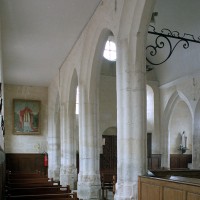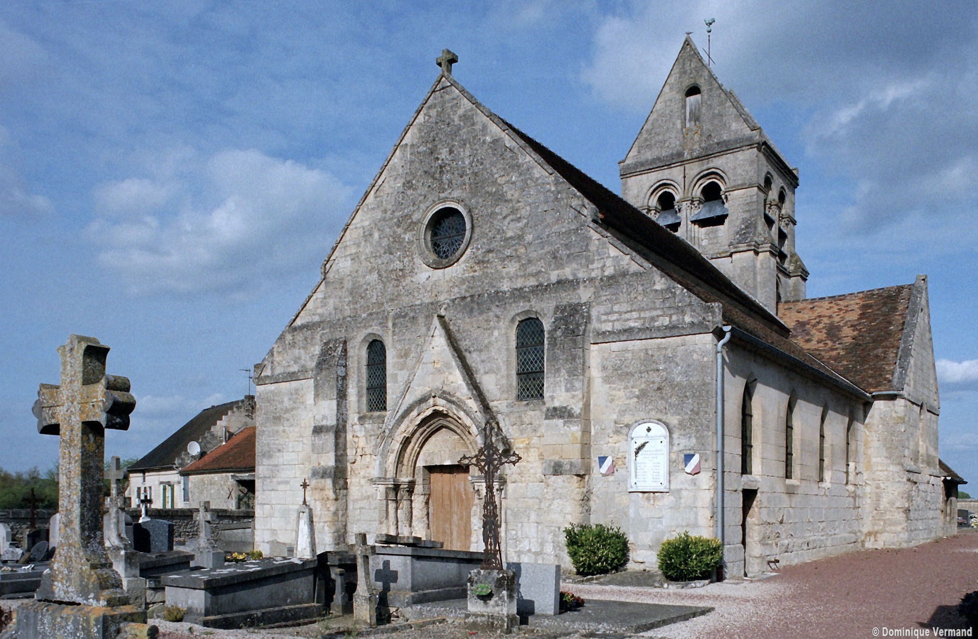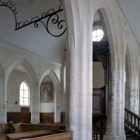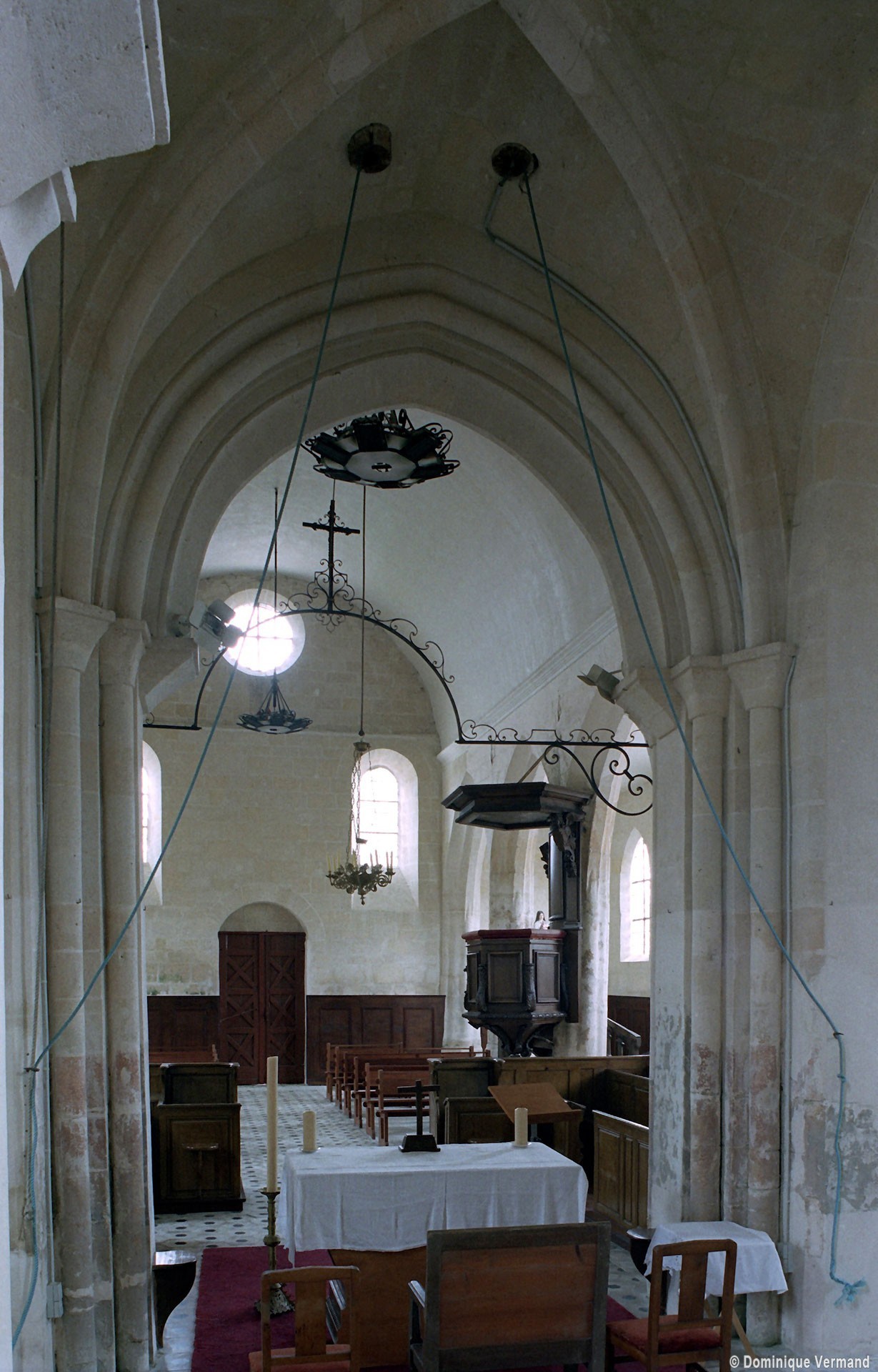 Située à l’écart du village, l’église Notre-Dame a été bâtie dans les années 1150 et, comme souvent, remaniée au 16ème siècle. Le plan primitif comprenait une nef avec bas-côtés et un chœur de deux travées terminé par un chevet plat, le clocher s’élevant sur la première travée. Le 16ème siècle y ajoutera deux croisillons et laissera la nef profondément transformée, d’élégantes arcades ouvrant largement sur les bas-côtés se substituant aux arcades primitives, beaucoup moins hautes.