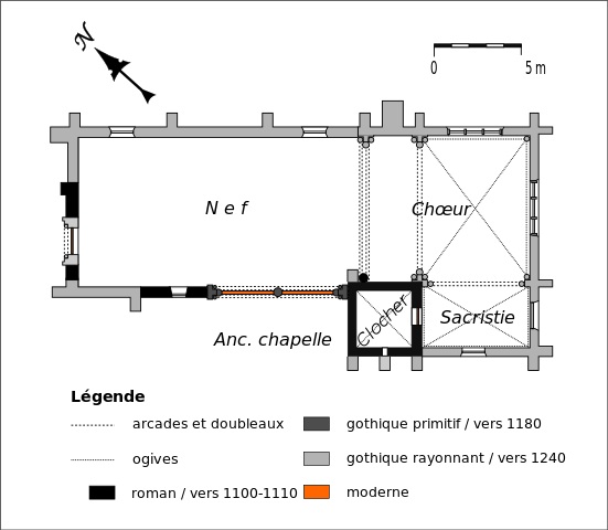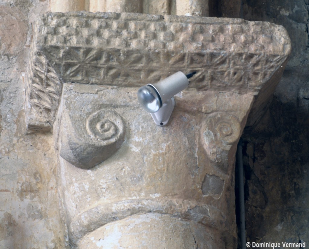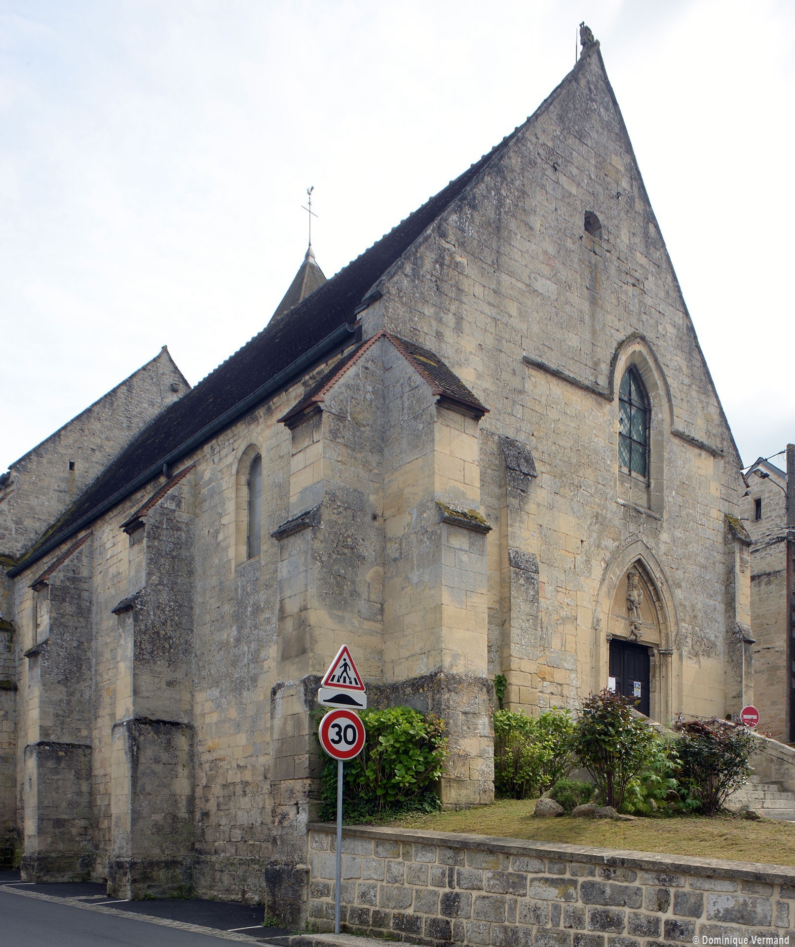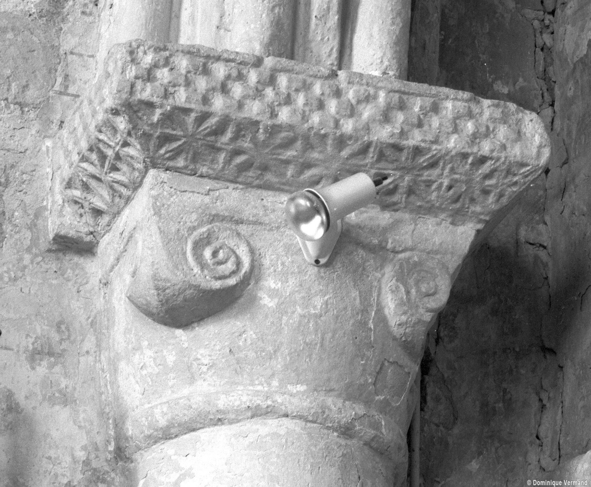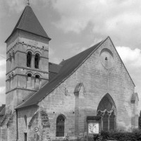 Accroché au raide versant sud de la vallée du Thérain, le petit bourg, autrefois fortifié, de Cramoisy a conservé une intéressante église des 12e et 13e siècles. L’édifice construit au tout début du 12e siècle comprenait une nef unique (il en reste un contrefort en façade) et un chœur plus étroit sur lequel venait s’appuyer, au sud, le clocher. Les reconstructions gothiques n’ont laissé subsister que ce dernier. C’est une tour de deux étages de baies géminées en plein cintre, qu’aucun contrefort ne vient épauler aux angles. Associant billettes, moulure biseautée et dents de scie, son répertoire décoratif la situe bien à la charnière des 11e et 12e siècles. Au-dessus de la corniche à modillons, on remarque une surélévation tardive, peut-être à usage de tour de guet. A l’intérieur, un chapiteau à grosses volutes d’angle et tailloir à décor de billettes et d’étoiles recevait à l’origine l’arc triomphal du chœur roman.