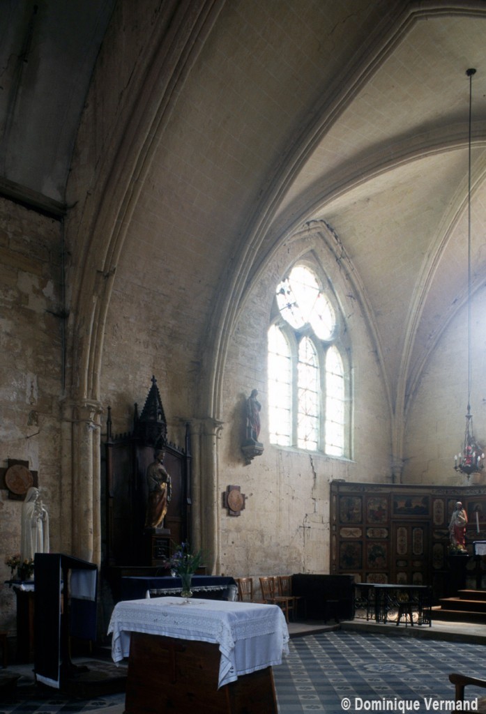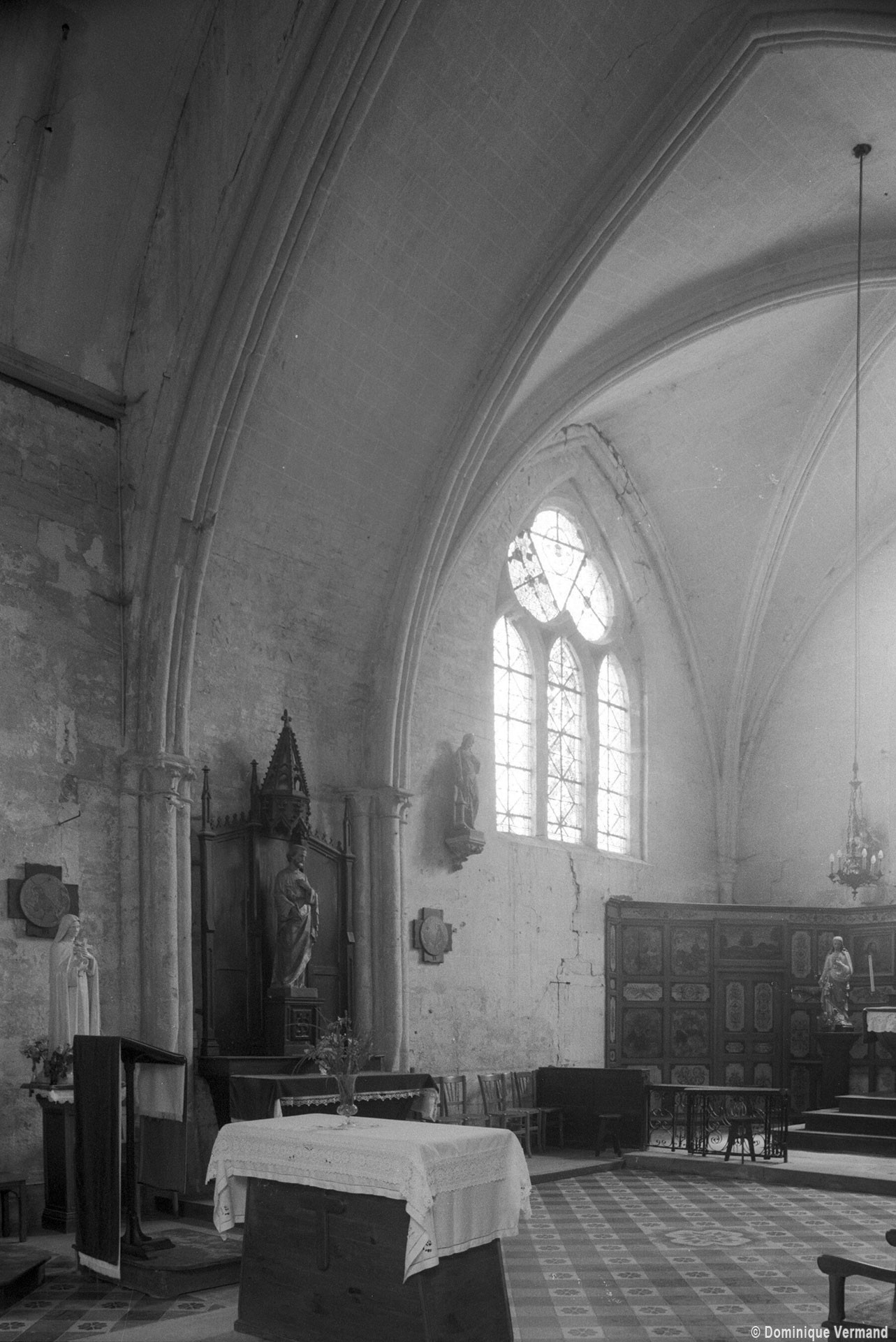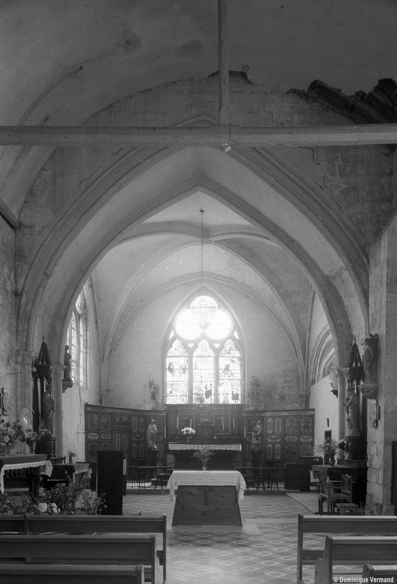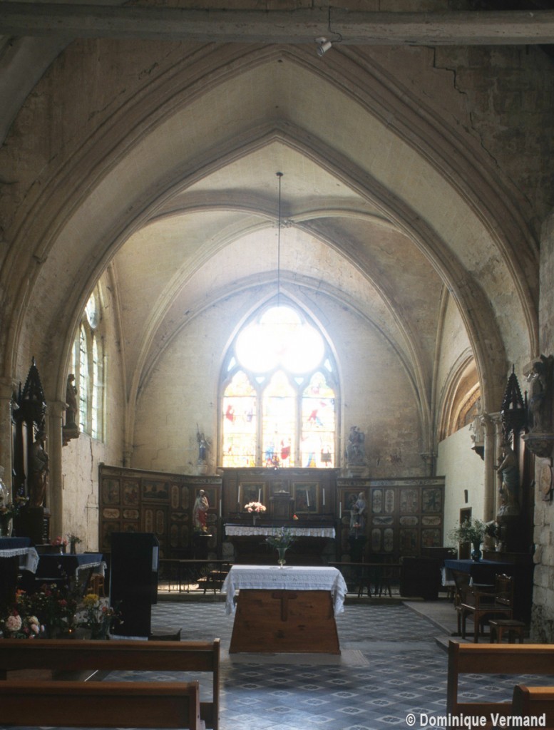 Vers 1250, l’église subit une importante reconstruction. La nef est élargie vers le nord malgré l’importante déclivité existant de ce côté et un nouveau chœur à chevet plat la prolonge, flanqué au sud d’une chapelle venant s’appuyer sur le clocher. Seul voûté avec la chapelle, le chœur comporte deux travées. La première, très étroite, est couverte d’une voûte en berceau qui peut étonner à cette époque mais dont le rôle est en fait d’épauler le clocher vers le nord. Une voûte d’ogives, jamais réalisée, avait d’ailleurs été prévue comme le montrent les chapiteaux restés en attente. La fenêtre du chevet, dont le réseau composé de trois lancettes surmontées d’un trilobe – il en existe une seconde au nord – se retrouve notamment à l’église voisine de Thiverny mais aussi, parmi d’autres exemples, à Cambronne-les-Clermont et Saint-Martin-aux-Bois. Elle a conservé un beau vitrail du 16e siècle.