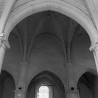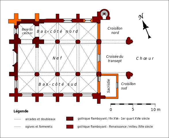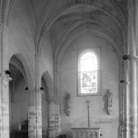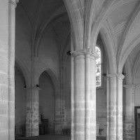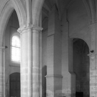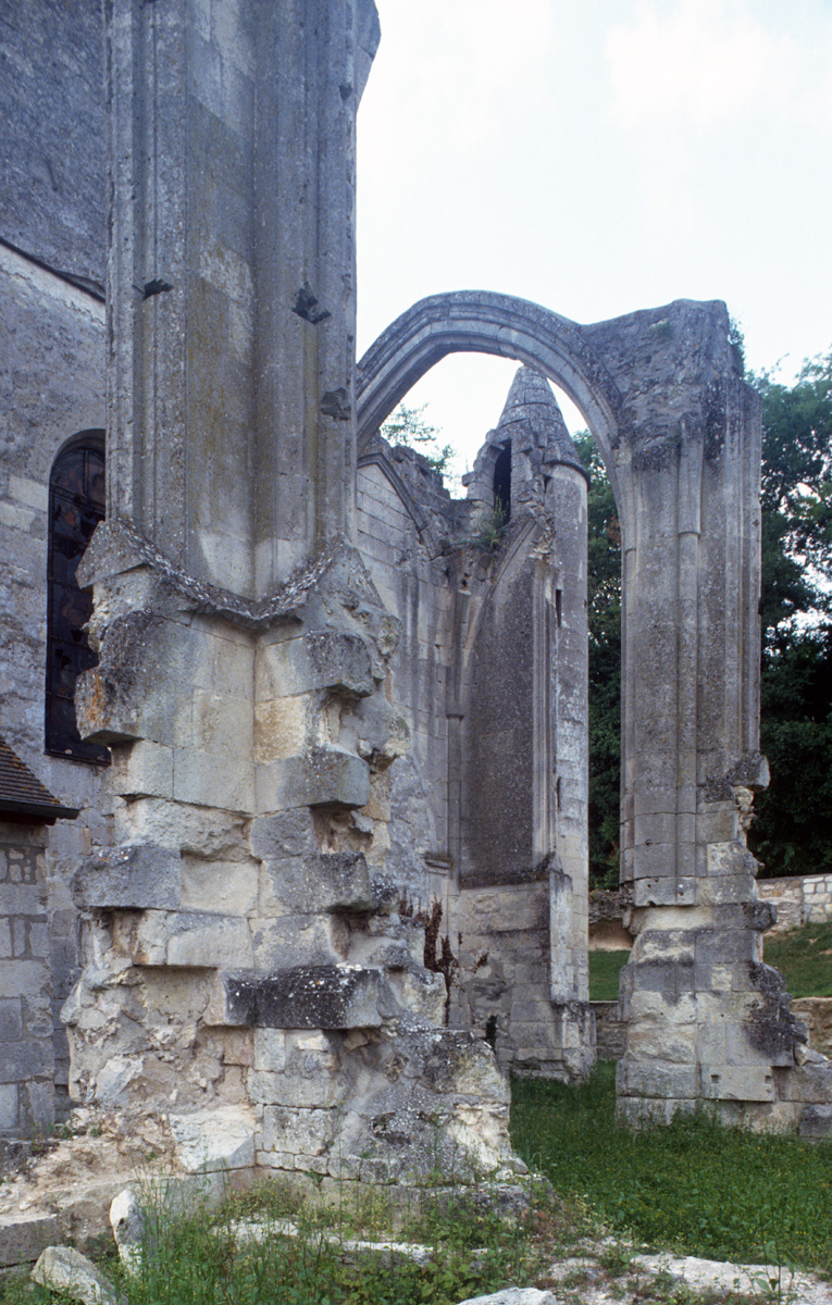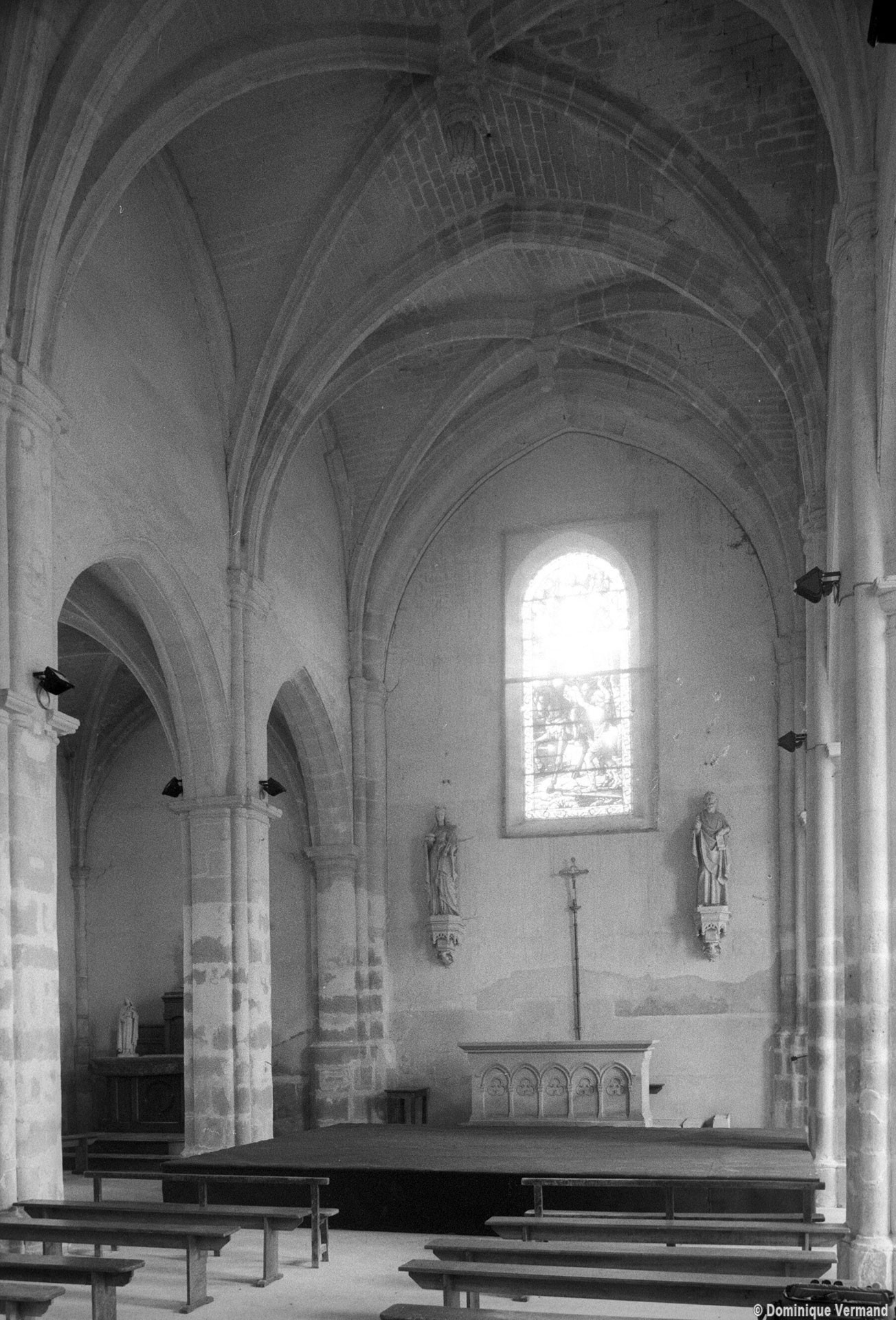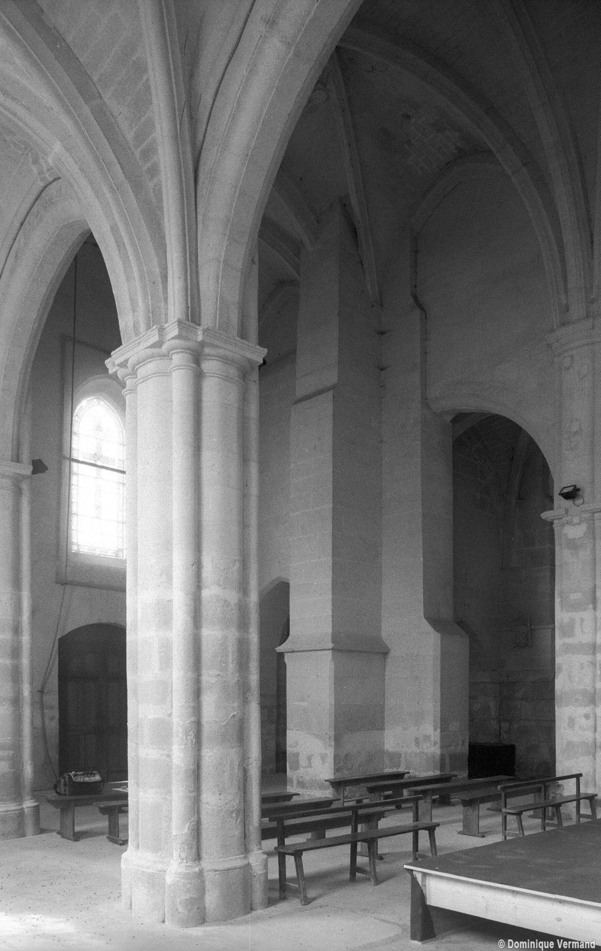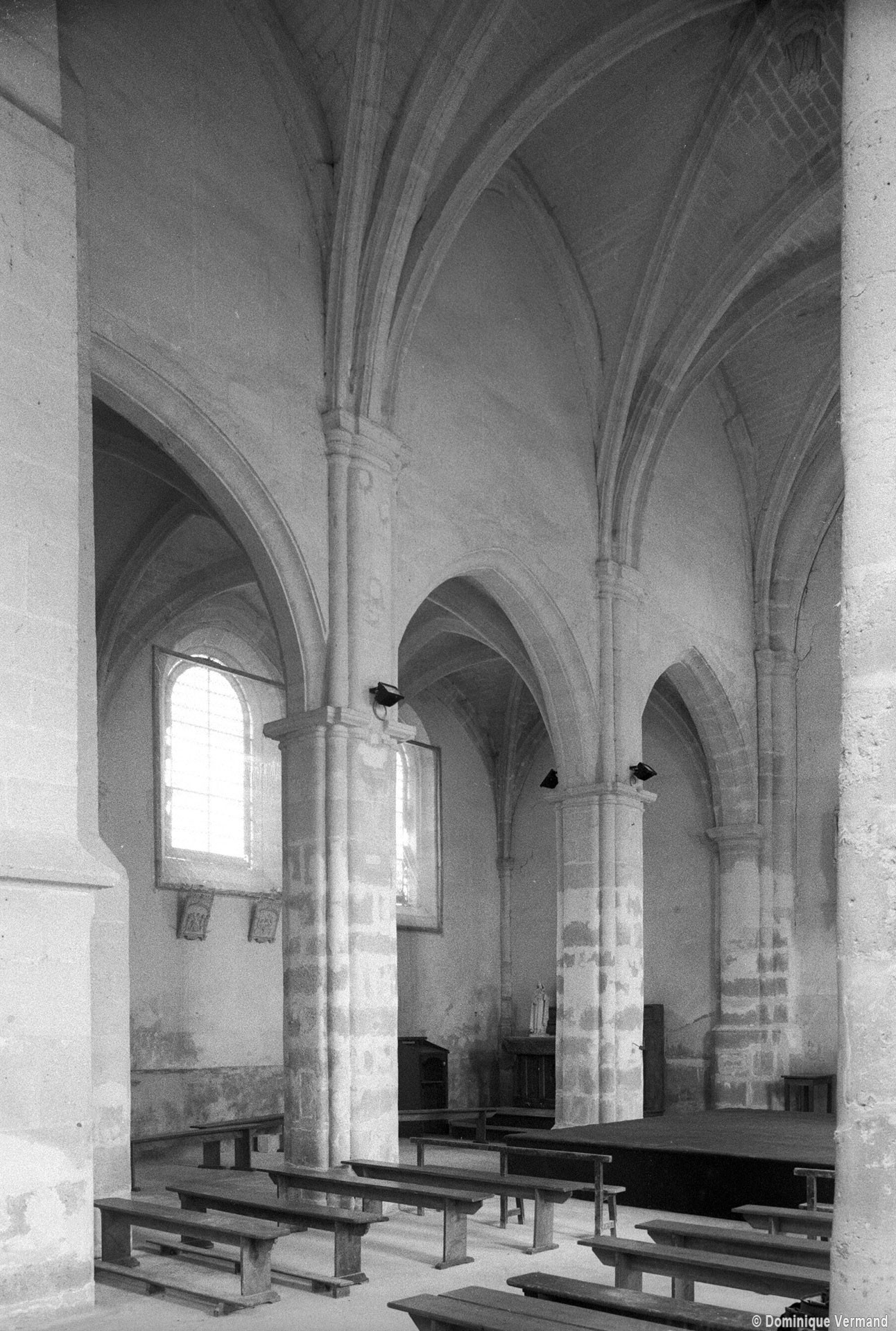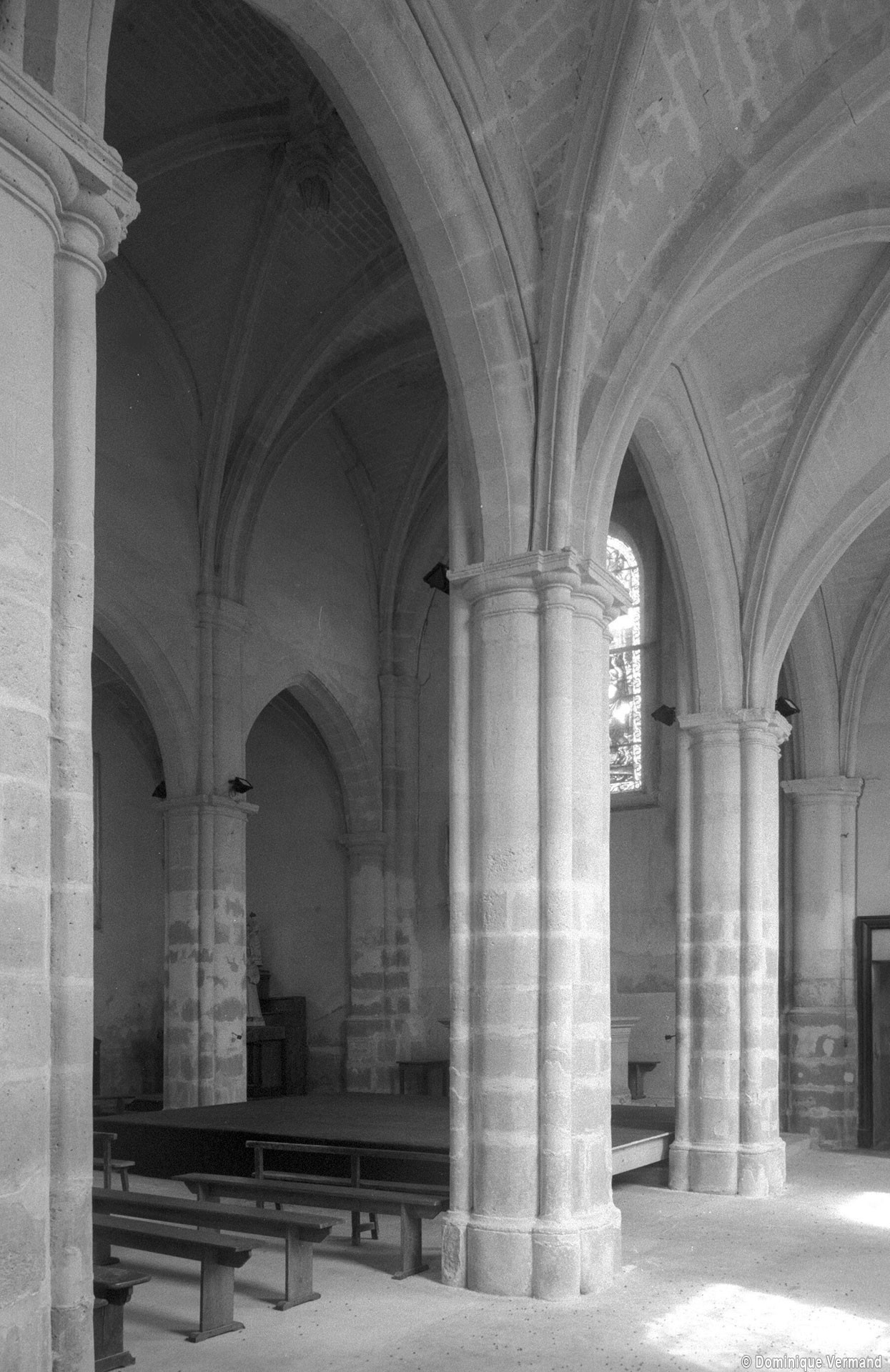 Bien que privée, depuis la Révolution, de son choeur et de son transept, dont les ruines demeurent néanmoins parlantes, l’église Saint-Martin reste un intéressant édifice entièrement reconstruit après les désastres de la Guerre de Cent Ans. Comme dans beaucoup d’églises de taille relativement modeste bâties durant cette période, qui est celle de la fin du gothique, le vaisseau central est aveugle et la lumière ne pénètre que par les fenêtres des bas-côtés et de la façade. Les grandes arcades sont reçues sur des piles octogonales dont quatre pans sont pourvus de colonnettes en correspondance avec les ogives des voûtes. Ces piles sont très proches de celles du choeur de Saint-Denis de Crépy-en-Valois et permettent donc d’assigner à Saint-Martin une date voisine, c’est-à-dire le milieu du 16ème siècle.