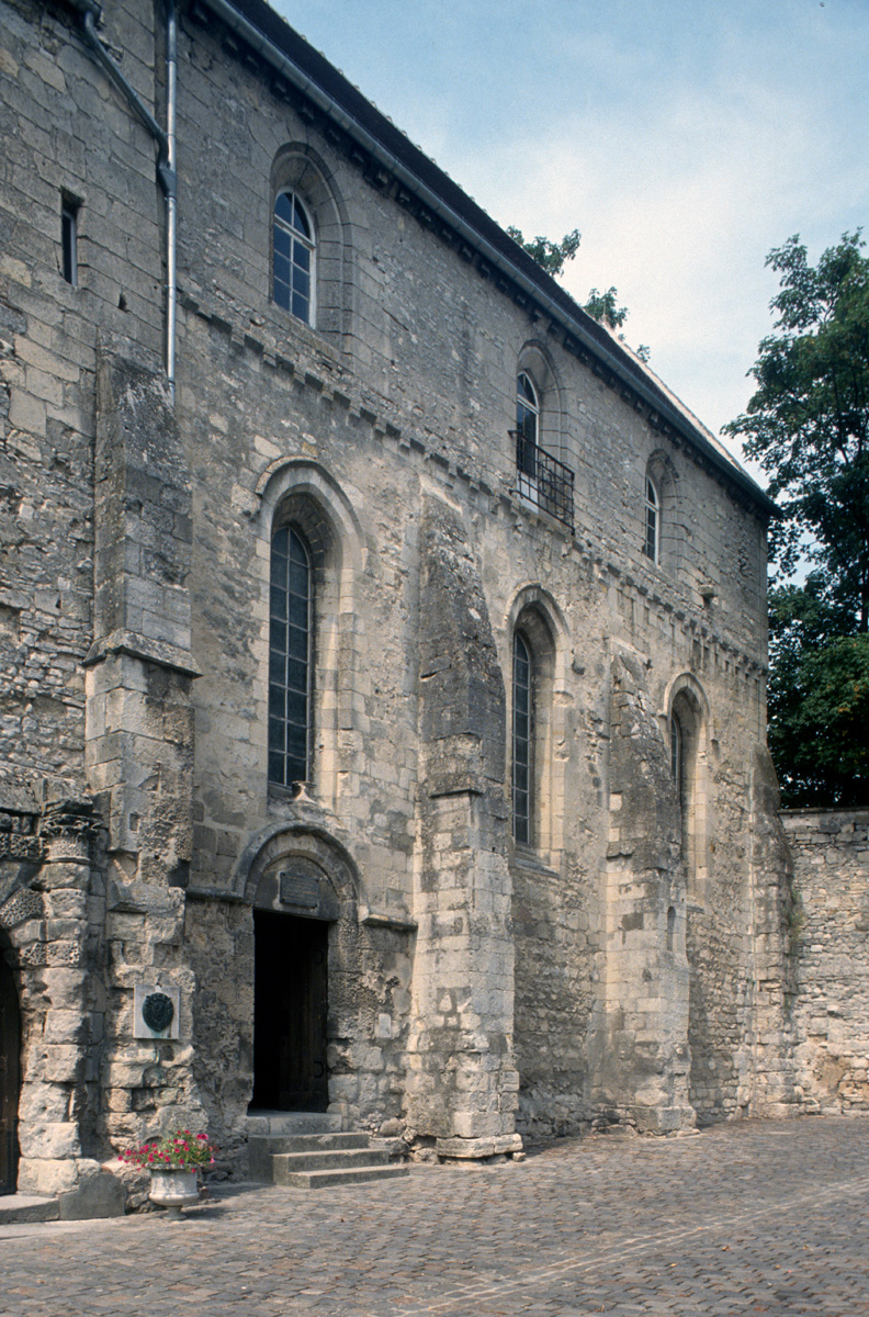 La chapelle supérieure, dédiée à Sainte-Marie, est plus basse et charpentée. Elle est contemporaine de la construction du château et en communication directe avec la grande salle seigneuriale du dernier étage. C’est Philippe 1er qui les fit bâtir, sans doute peu après la Bataille de Bouvines (1214). L’ensemble constitue un rare et remarquable exemple d’un type d’édifice qui se réclame autant du palais princier que de la demeure féodale (1996).