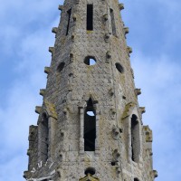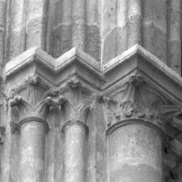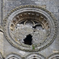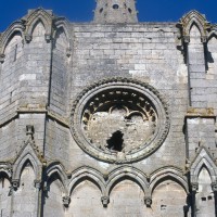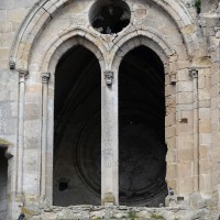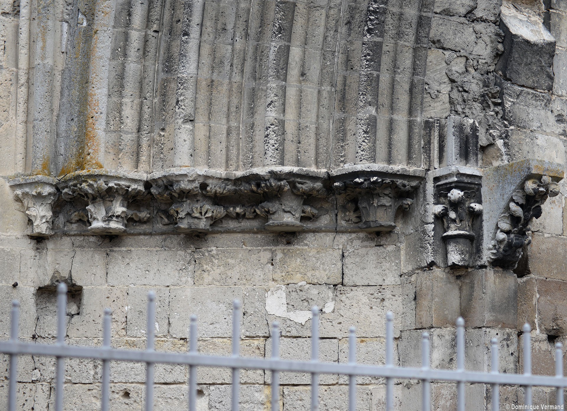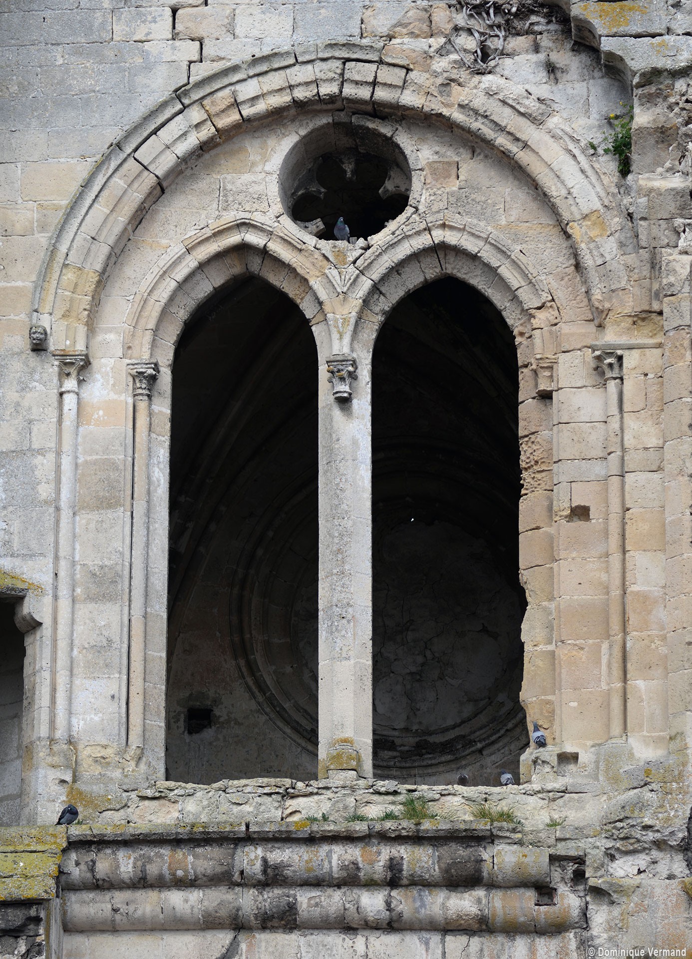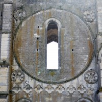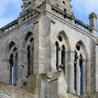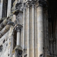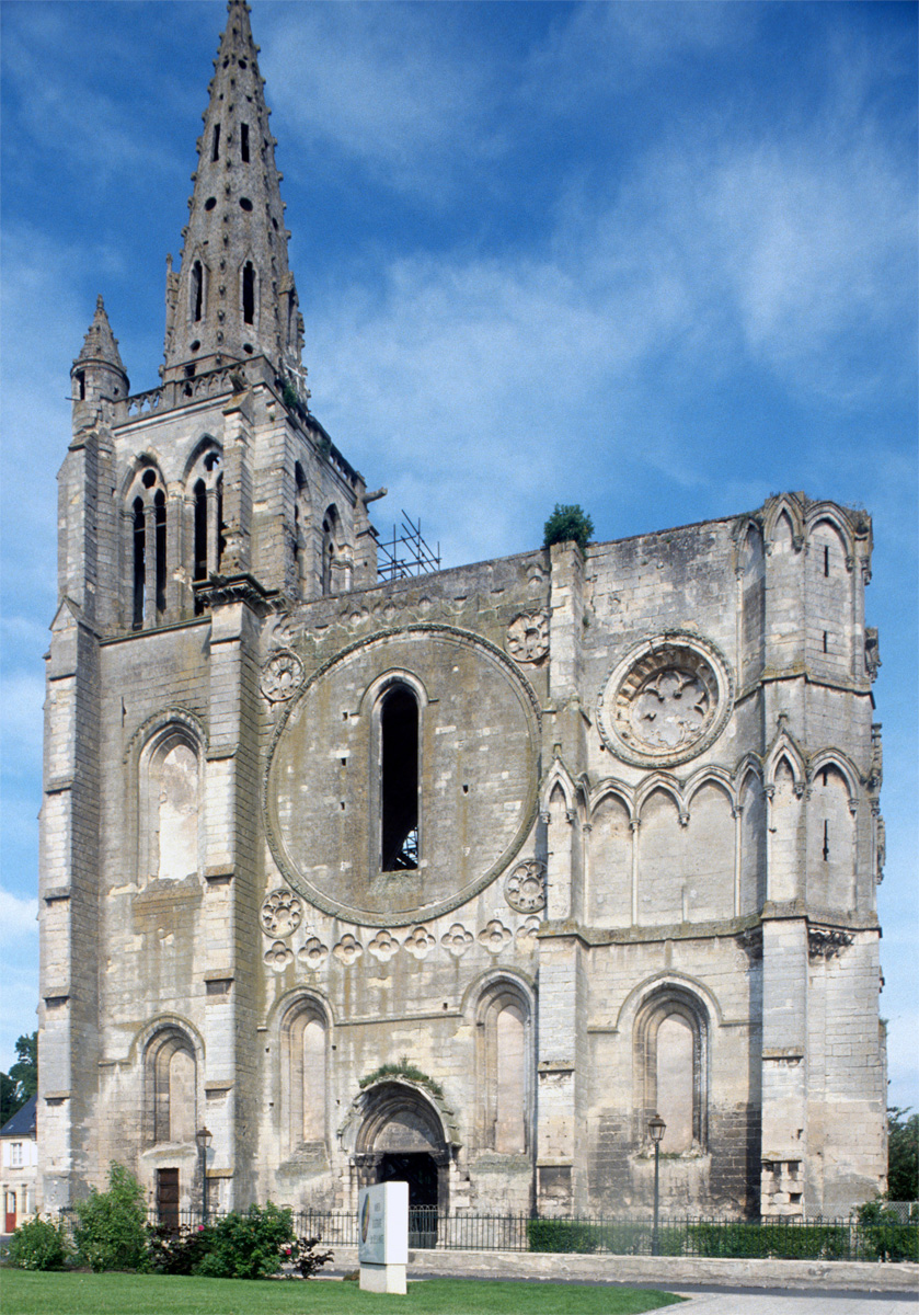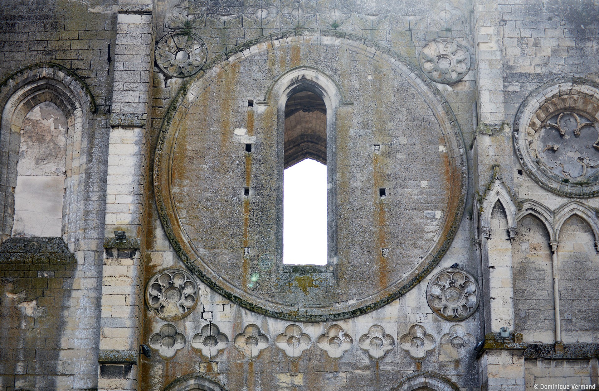 Le parti pris d’austérité qui prévaut au niveau inférieur et à la tour nord, les premiers bâtis, semble progressivement abandonné ensuite. En partie centrale, l’immense rose – malheureusement privée de son réseau – est en effet inscrite entre deux rangs de quatre feuilles tandis que des rosaces à huit lobes l’accompagnent dans les angles. Aux parties supérieures de la tour sud, bâties en dernier, un réseau d’arcatures aveugles retombant sur des colonnettes en délit et deux petites roses à six lobes habillent et ajourent les faces ouest et sud dans une recherche décorative encore plus poussée. De même, la fenêtre qui s’ouvre à l’est, formée de deux lancettes et d’une rose, appartient à un type qui, inauguré à la cathédrale de Soissons, sera repris dans tous les grands édifices du premier quart du 13ème siècle tandis que celles de la tour nord, formée d’une simple lancette, restent dans la tradition du siècle précédent.
