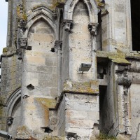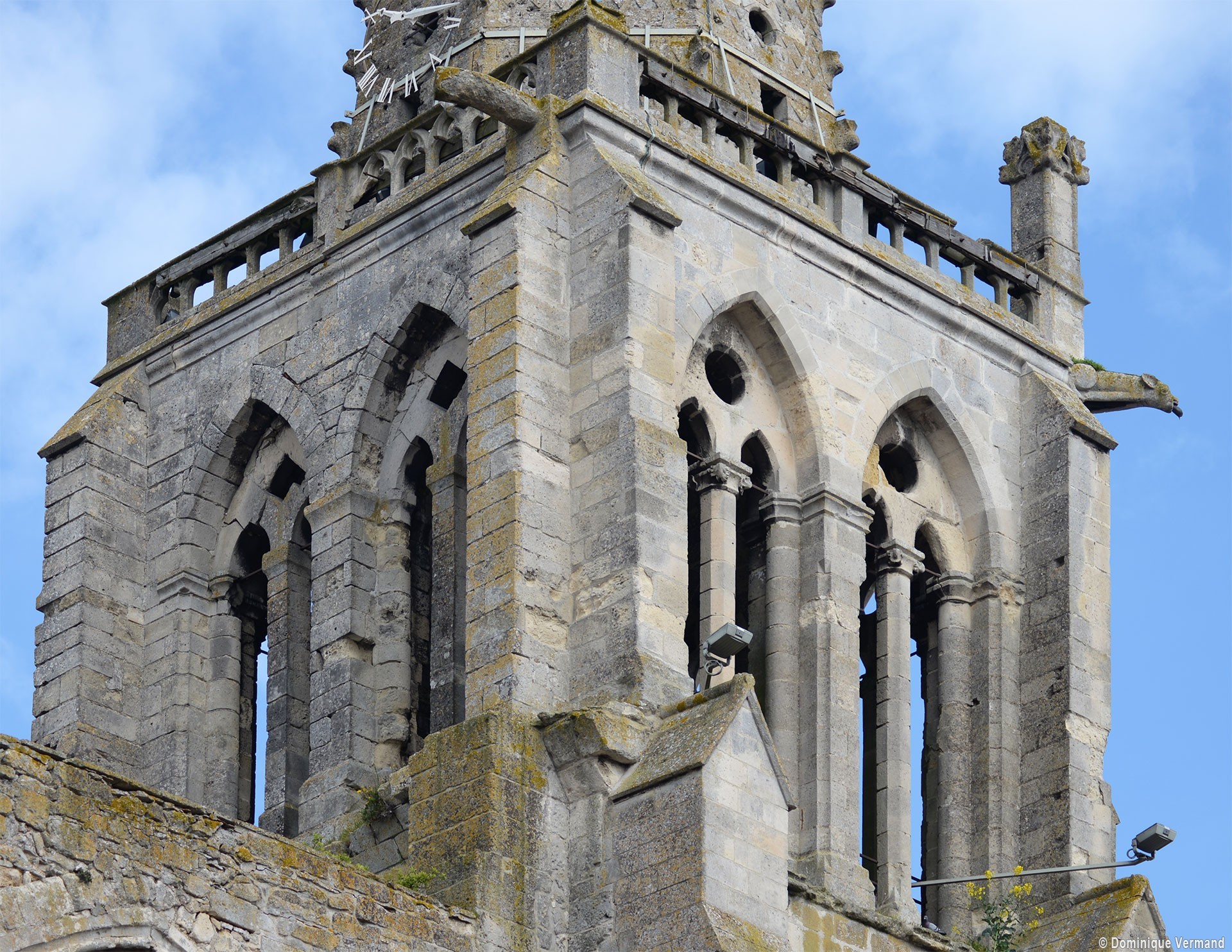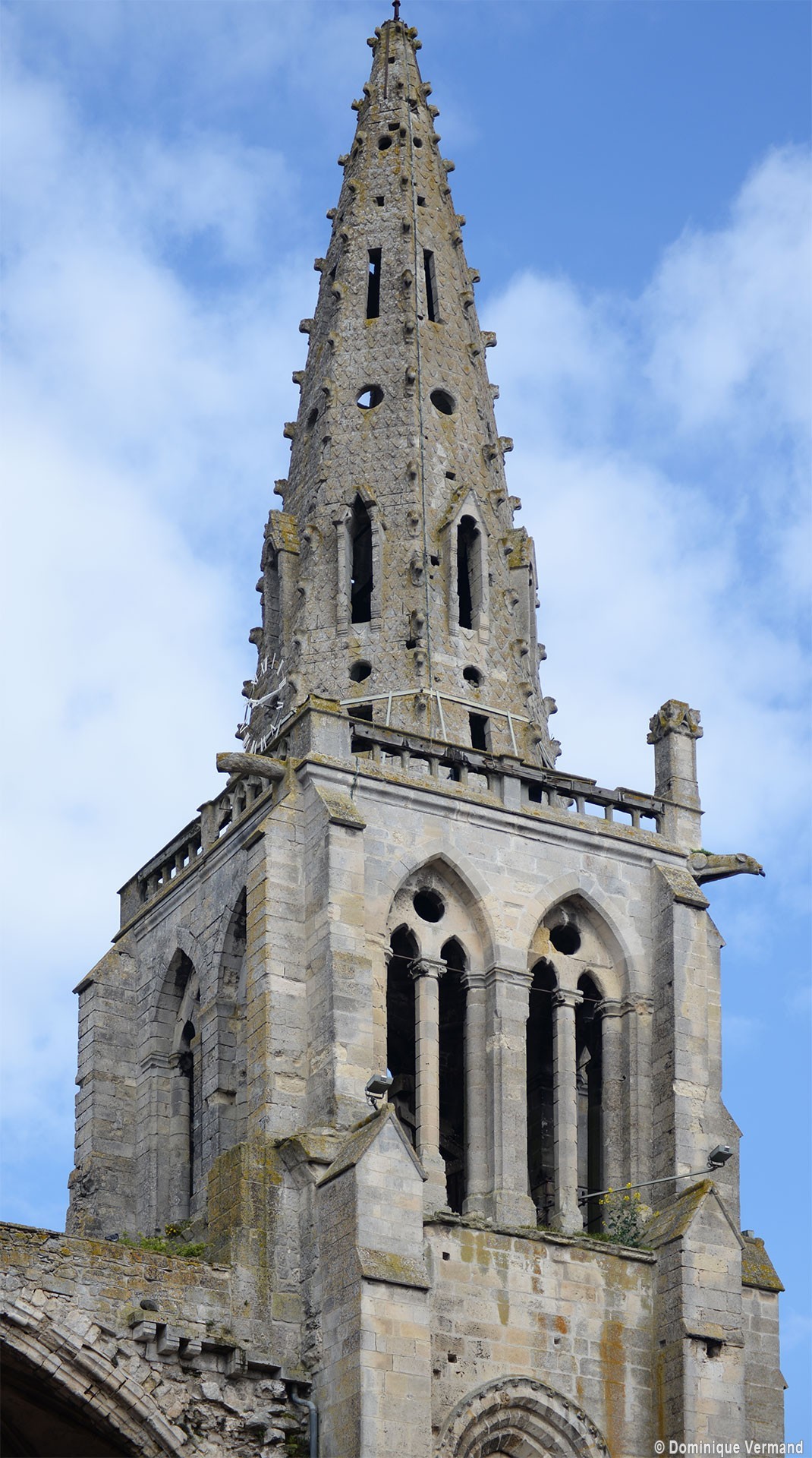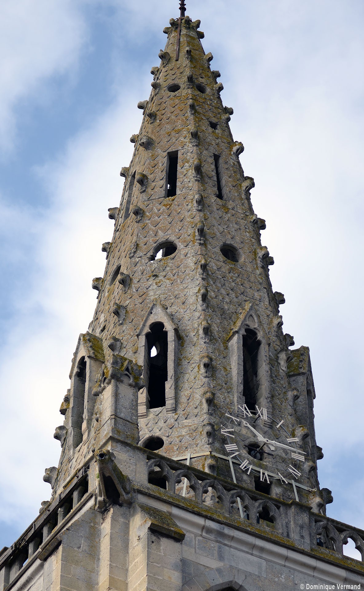 La construction de l’édifice devait connaître ensuite un long arrêt, le transept et le choeur n’étant entrepris qu’au 14ème siècle. La tour sud a perdu l’étage correspondant au beffroi et sa flèche lors du siège de Crépy par les Anglais en 1434 tandis que la flèche de la tour nord, écho lointain et modeste de celle de la cathédrale de Senlis, a été reconstruite entre 1520 et 1528. Trop grèle pour la plate-forme qui la reçoit, elle appartient à la nombreuse famille des flèches gothiques du Valois.