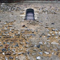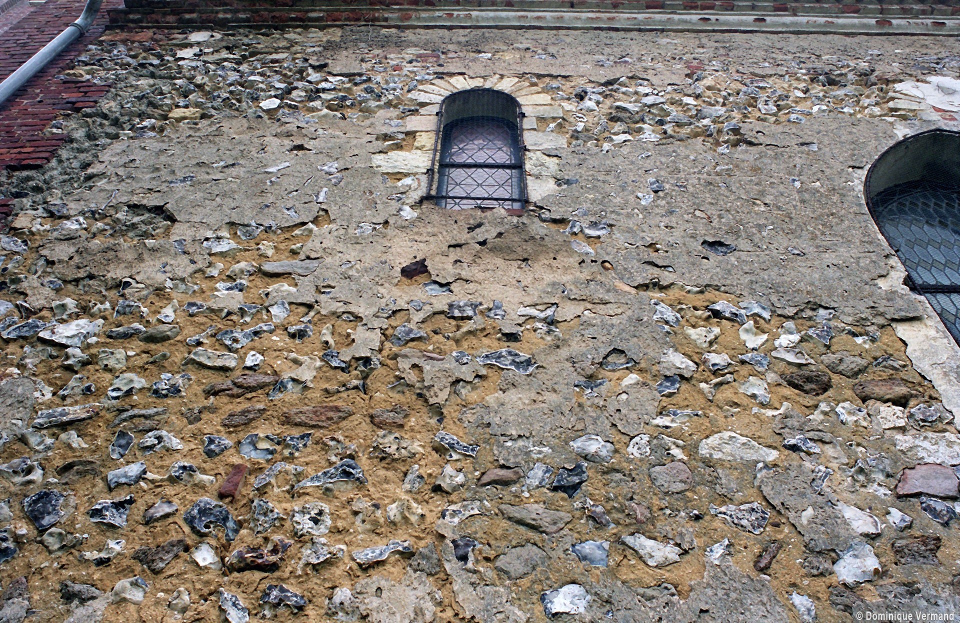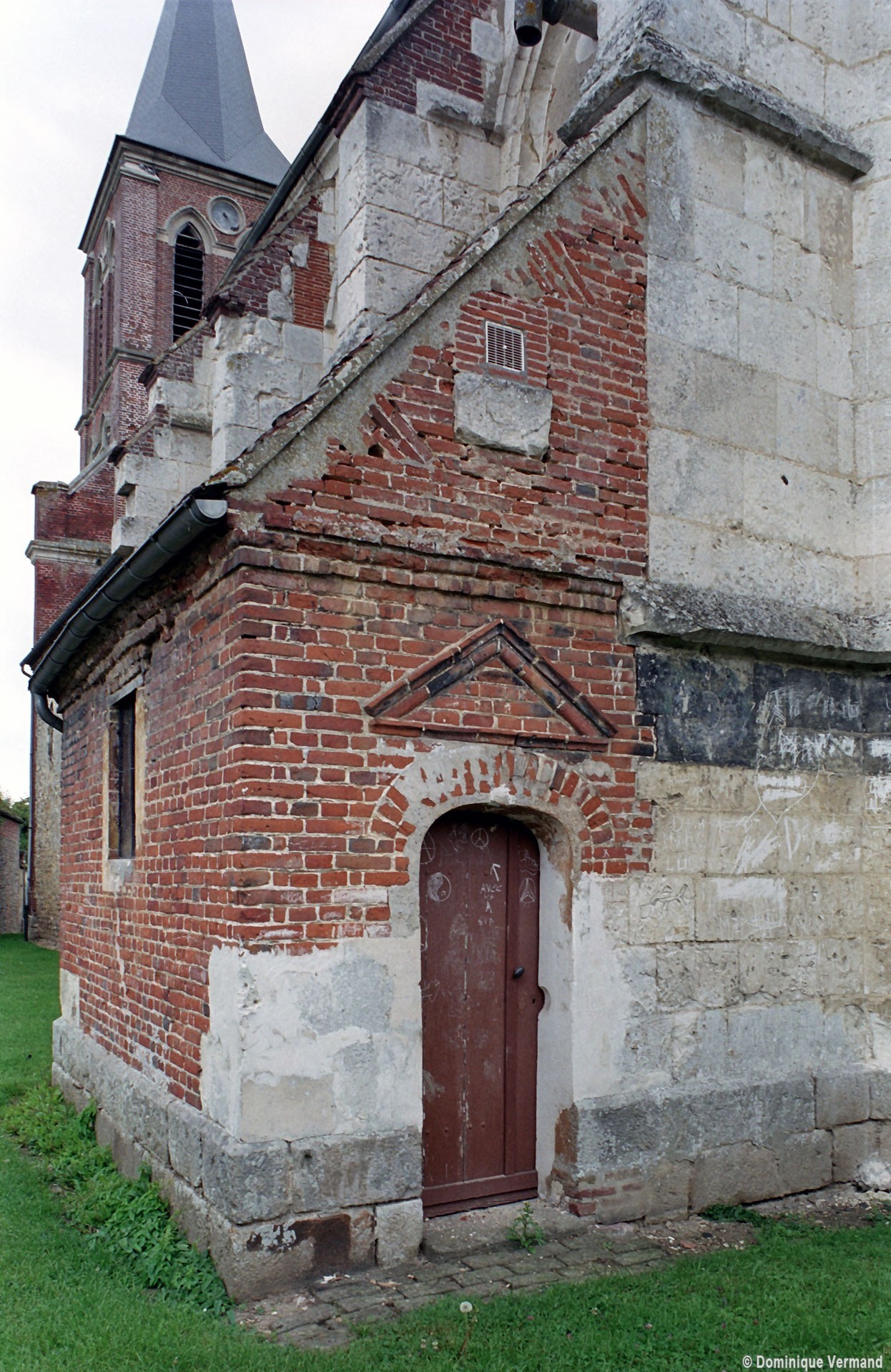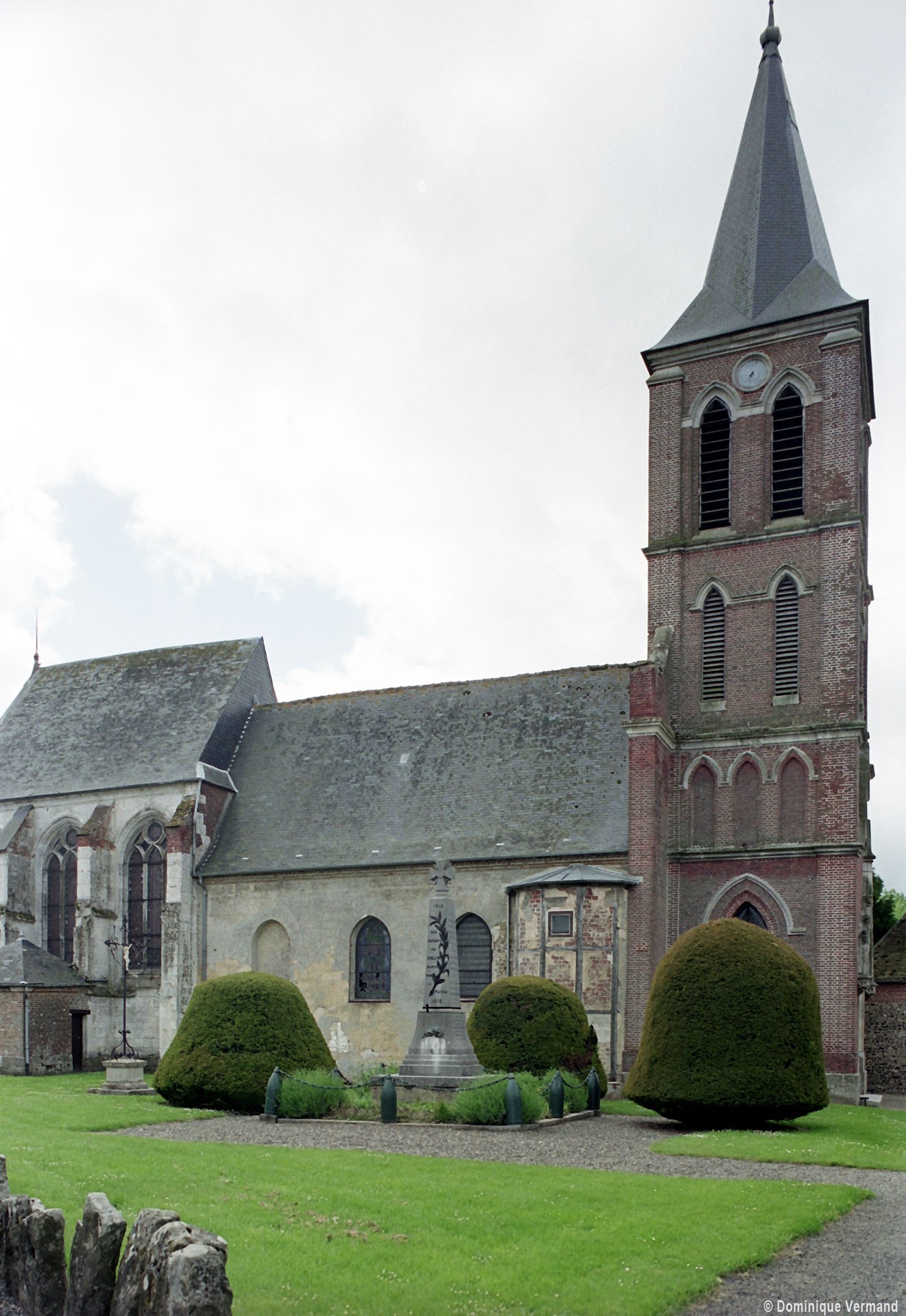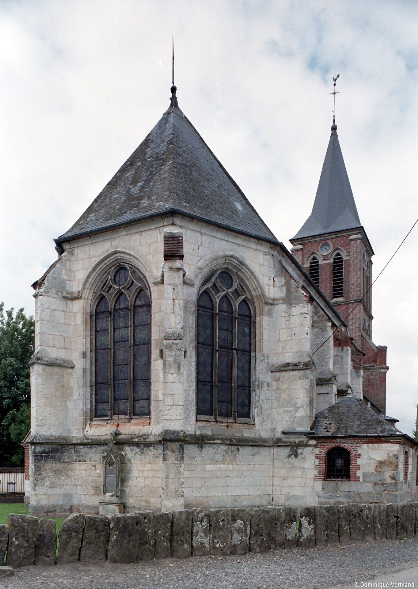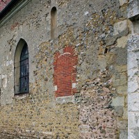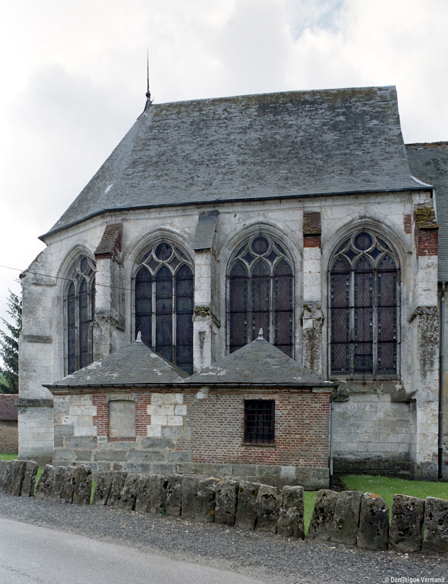 L’église Saint-Lucien est un édifice très composite puisqu’il associe un clocher en briques formant porche, du 19ème siècle, une nef du 11ème et un choeur du 16ème. Bien que défigurée par un crépi et des grandes fenêtres percées au 19ème siècle, la nef reste bien conservée dans son mur sud et présente toutes les caractéristiques des édifices ruraux construits en grand nombre dans le Beauvaisis au 11ème siècle : murs en moellons et silex, angles simplement renforcés par des pierres grossièrement taillées et assemblées en carreaux et boutisses, fenêtres dépourvues d’ébrasement extérieur et dont l’archivolte est formée de nombreux claveaux étroits.