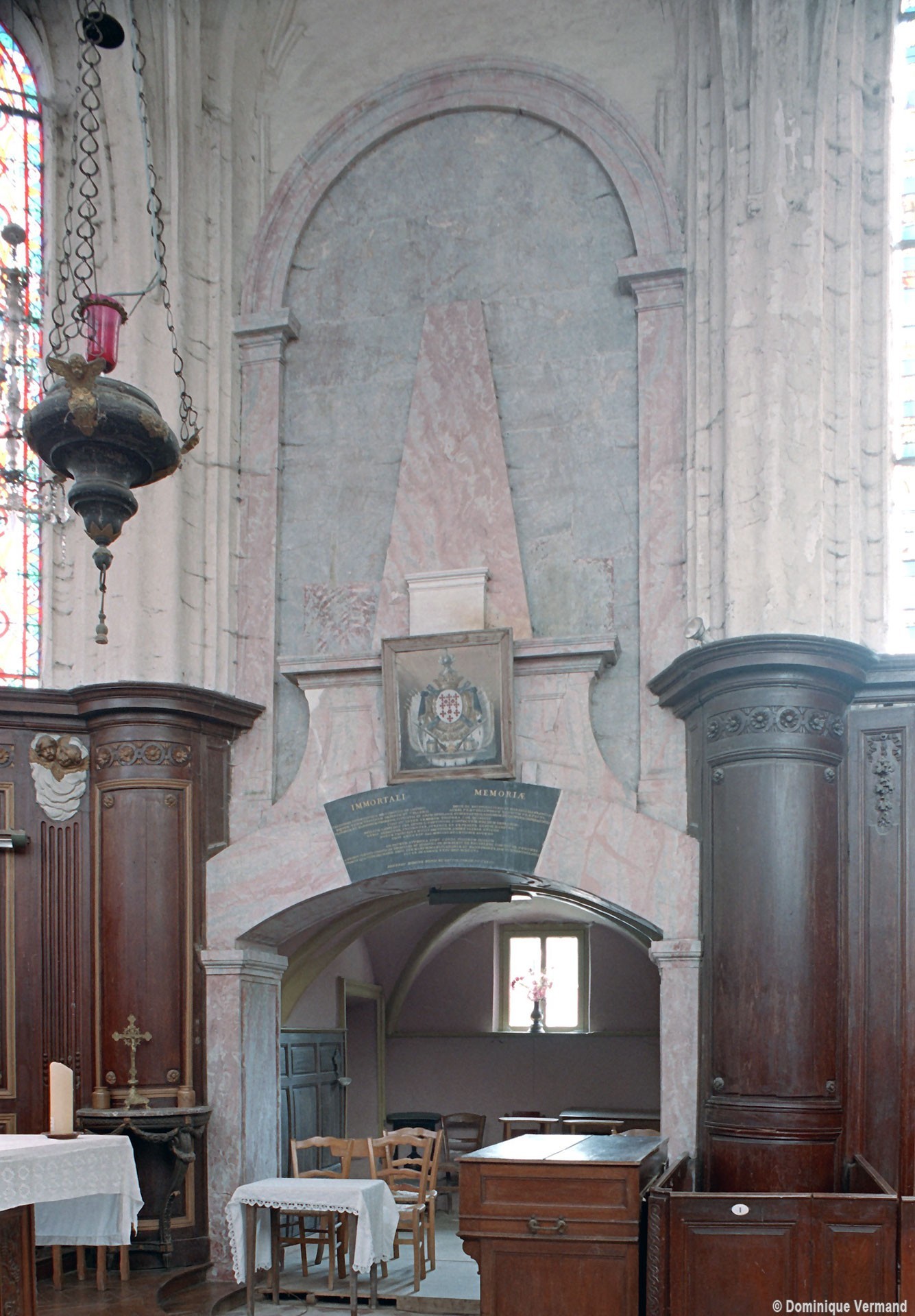 C’est au début du 17ème siècle qu’une petite construction en briques viendra prendre place au sud du choeur en utilisant des éléments préexistants. Destinée à accueillir les coeurs du Maréchal de Boufflers – éminent personnage lié au règne de Louis XIV – et de ses deux fils, elle communique avec le choeur par une large ouverture en cintre surbaissé surmontée d’une pyramide. Une haute arcade aveugle en plein cintre circonscrit l’ensemble, réalisé en marbre. Une inscription portant les dates de 1706 et 1711 et des armoiries rappellent le souvenir du maréchal. Cette chapelle communiquait autrefois avec le parc du château. Jamais achevé, ce dernier n’existe plus aujourd’hui.