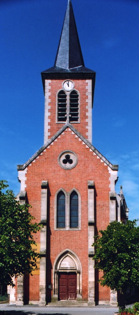 L’église Saint-Eloi a été totalement reconstruite après la Guerre 14-18 sur le modèle de l’édifice précédent, qui avait été lui-même refait au 19ème siècle. Son orientation a cependant été inversée et c’est désormais la façade qui se trouve à l’est. Assez vaste, c’est une construction en briques sans grande originalité, de style néo-gothique.