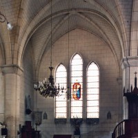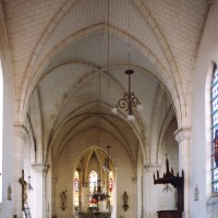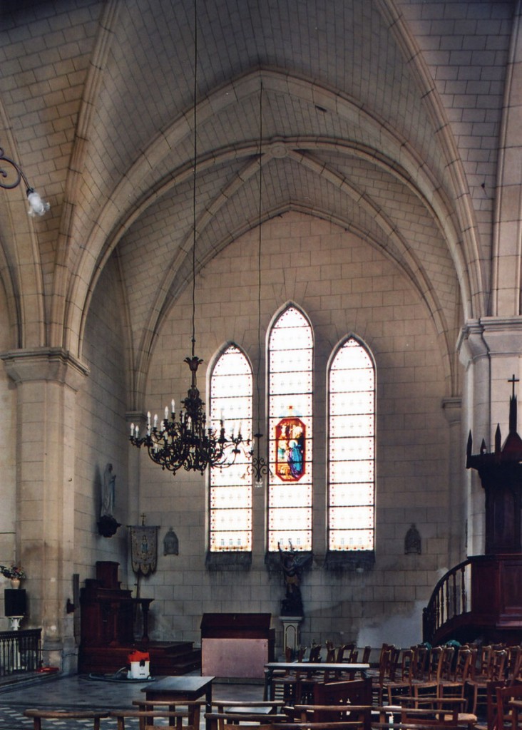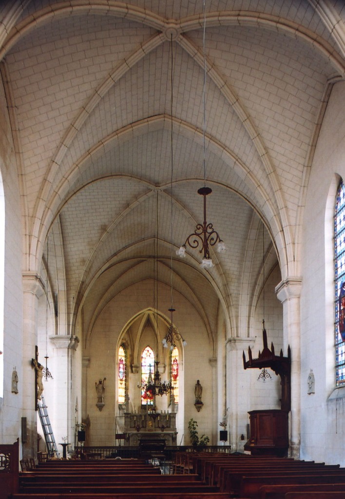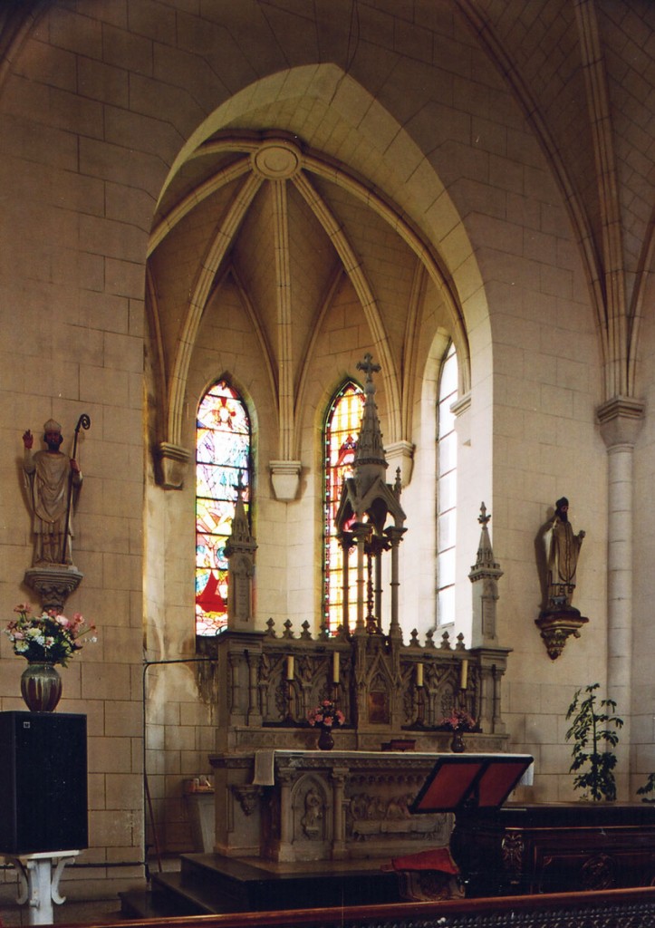 Un clocher formant porche, avec tribune, précède la nef de deux travées. Lui fait suite un transept saillant puis un choeur d’une travée droite qui se conclut par une abside plus étroite, à cinq pans. L’ensemble reçoit des voûtes d’ogives en bois recouvert de plâtre. Toutes les fenêtres sont de simples lancettes, regroupées en triplet au transept. Le maître-autel en pierre et plâtre est un bon exemple de style néo-gothique et la nef comporte des vitraux art déco dus au maître verrier Tambouret, à Amiens (2008).