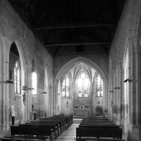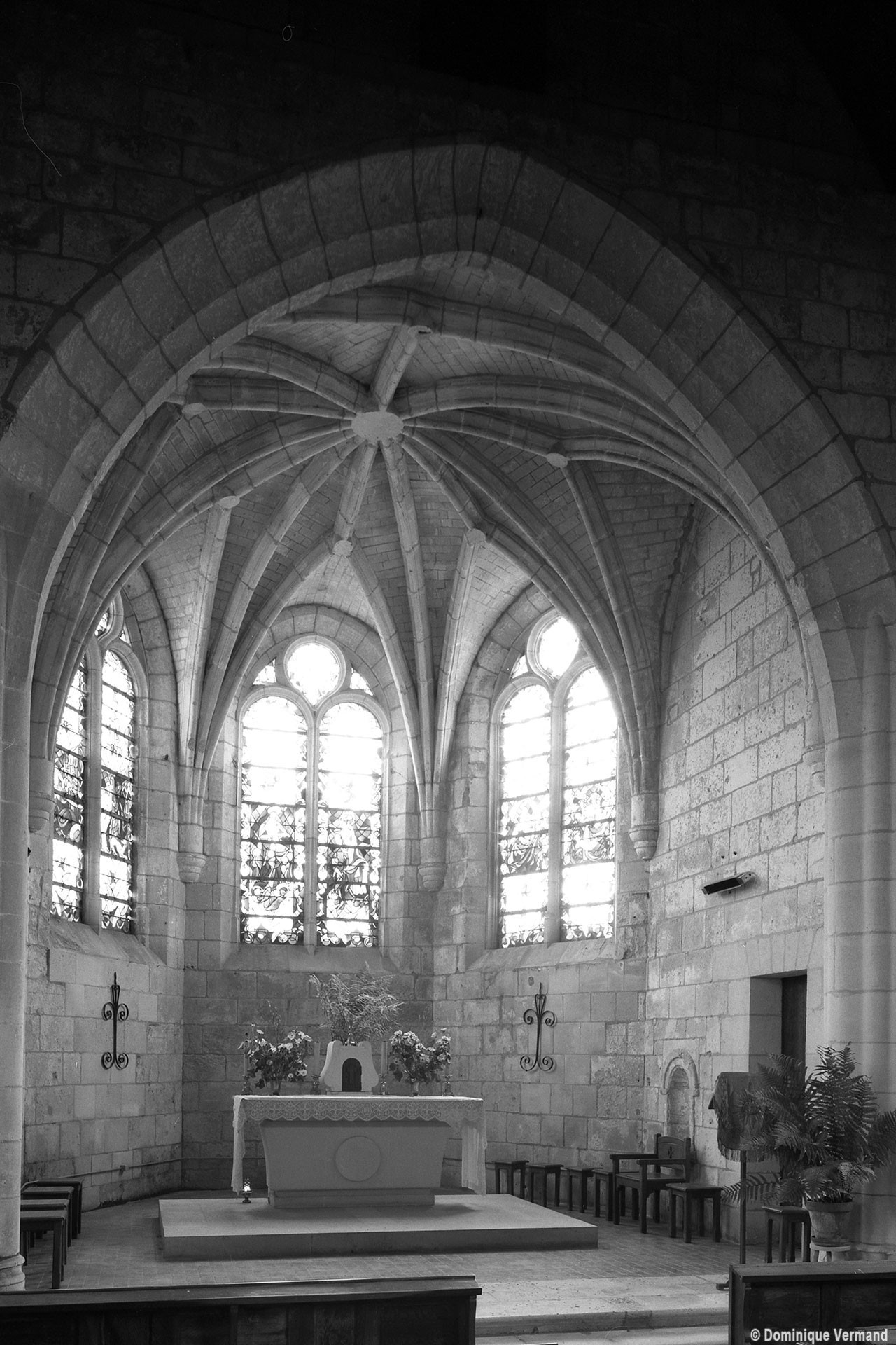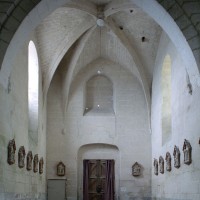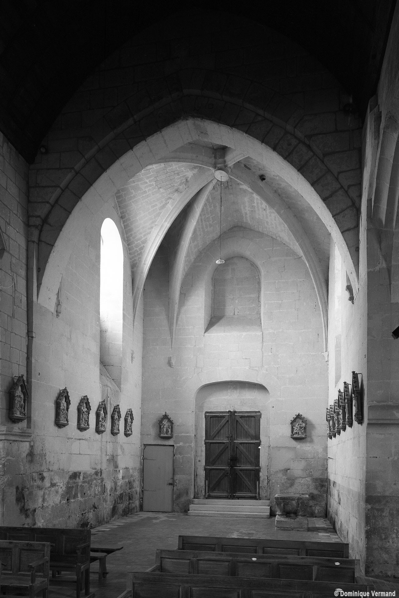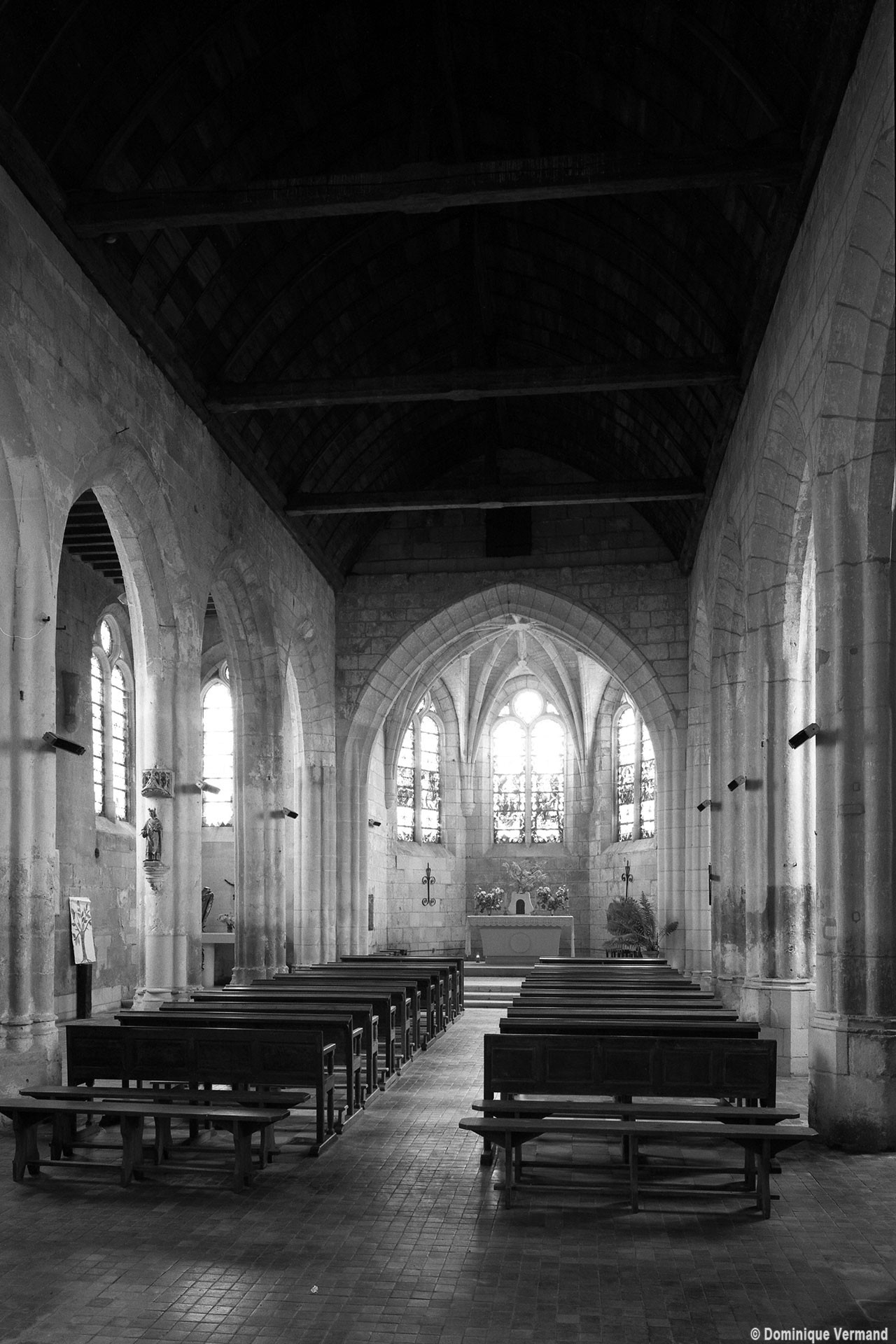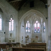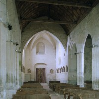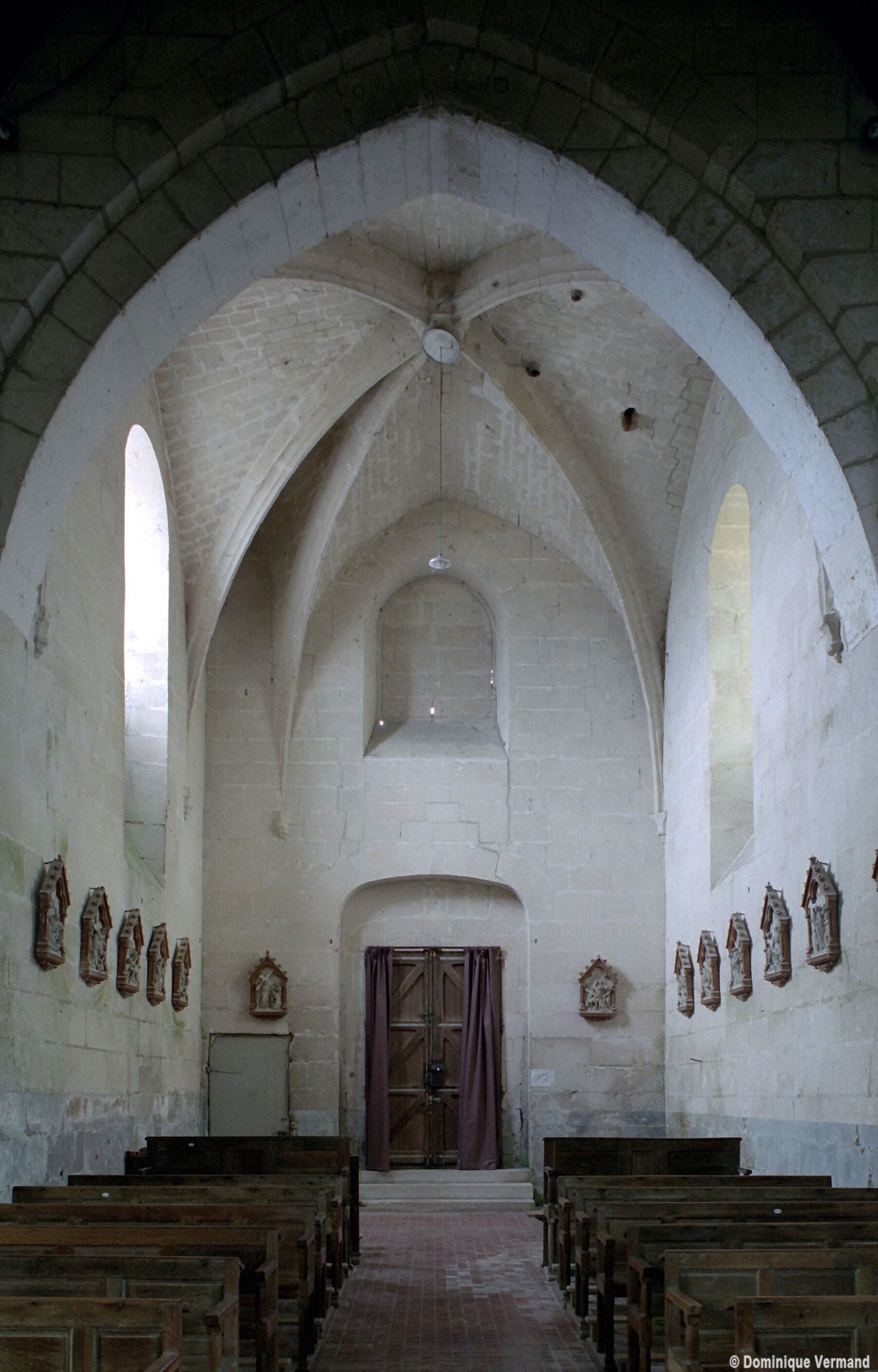 Couverte d’une charpente en carène et ouvrant largement sur les bas-côtés, la nef ne manque pas d’élégance avec ses hautes arcades à profil prismatique, reçues sur des piles ondulées sans l’intermédiaire de chapiteaux. Le bas-côté nord montre des retombées de voûtes jamais construites. L’abside est surtout remarquable pour la belle voûte qui la couvre, dont le réseau des nervures, reçues sur des cul-de-lampe, se complète de liernes et de tiercerons. On note la présence, dans le mur sud, d’une petite piscine liturgique décorée d’une coquille Saint-Jacques.
