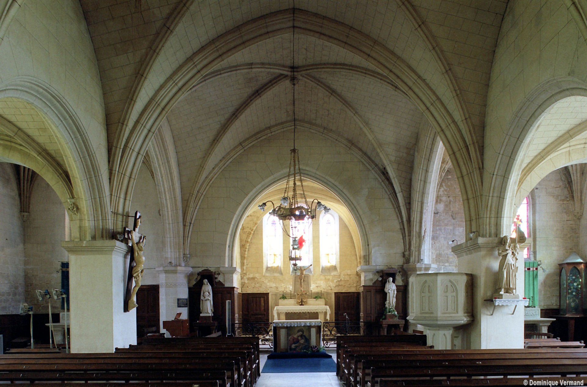 Le 19ème siècle dote l’église d’une nouvelle nef, avec bas-côtés, d’une chapelle au sud, copie de celle existant au nord, et d’un clocher en façade formant porche et terminé par une haute flèche octogonale en pierre. Bien construit, l’ensemble manque cependant d’originalité comme trop souvent au 19ème siècle. Les fenêtres des chapelles sont garnies de vitraux réalisés vers 1925 par le maître verrier Raphaël Lardeur et consacrés essentiellement à des saints (2008).