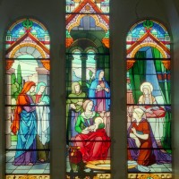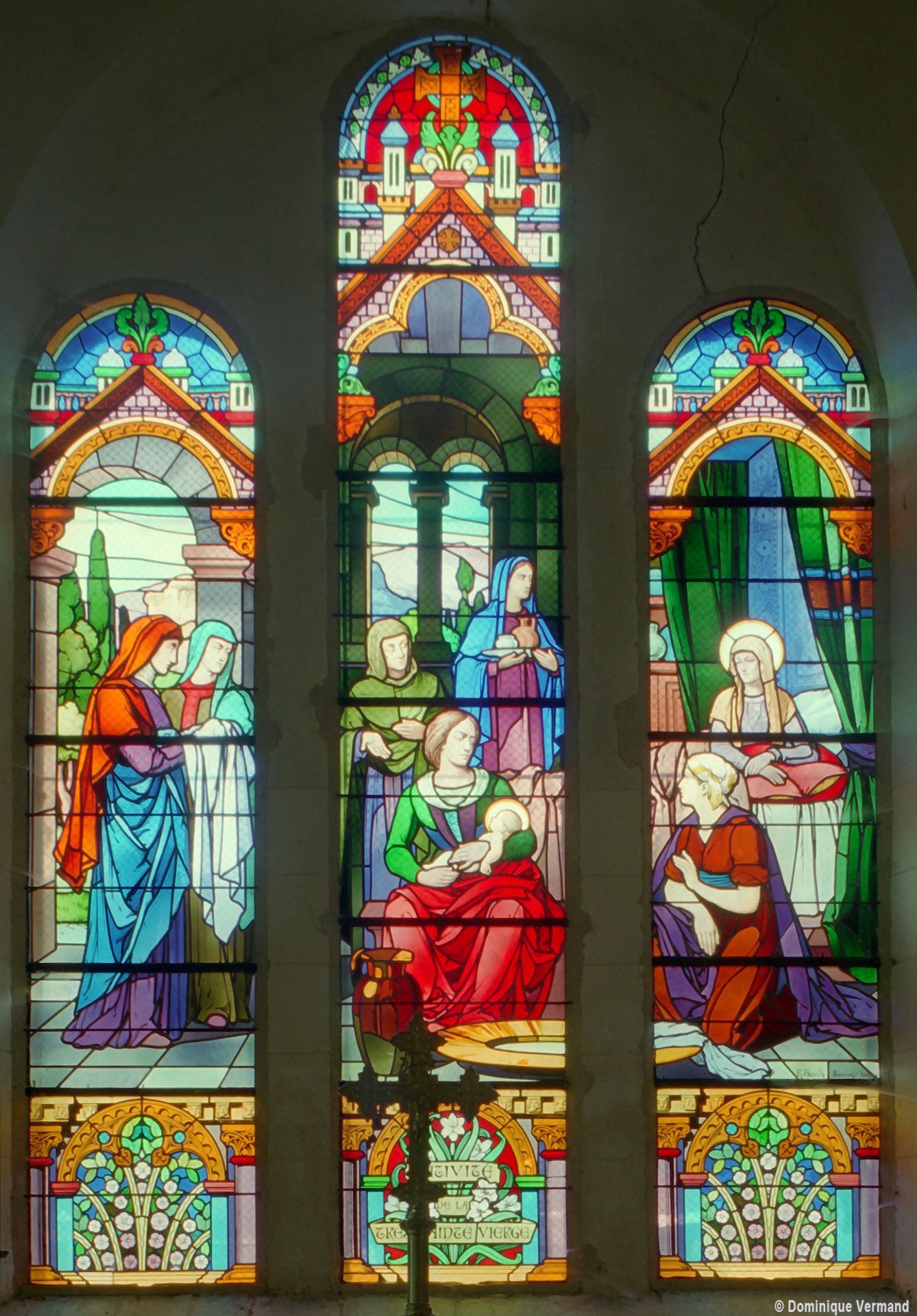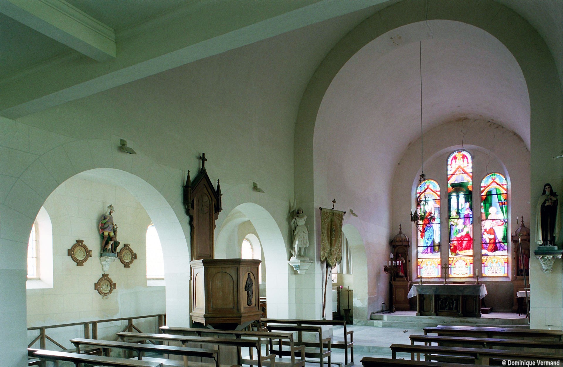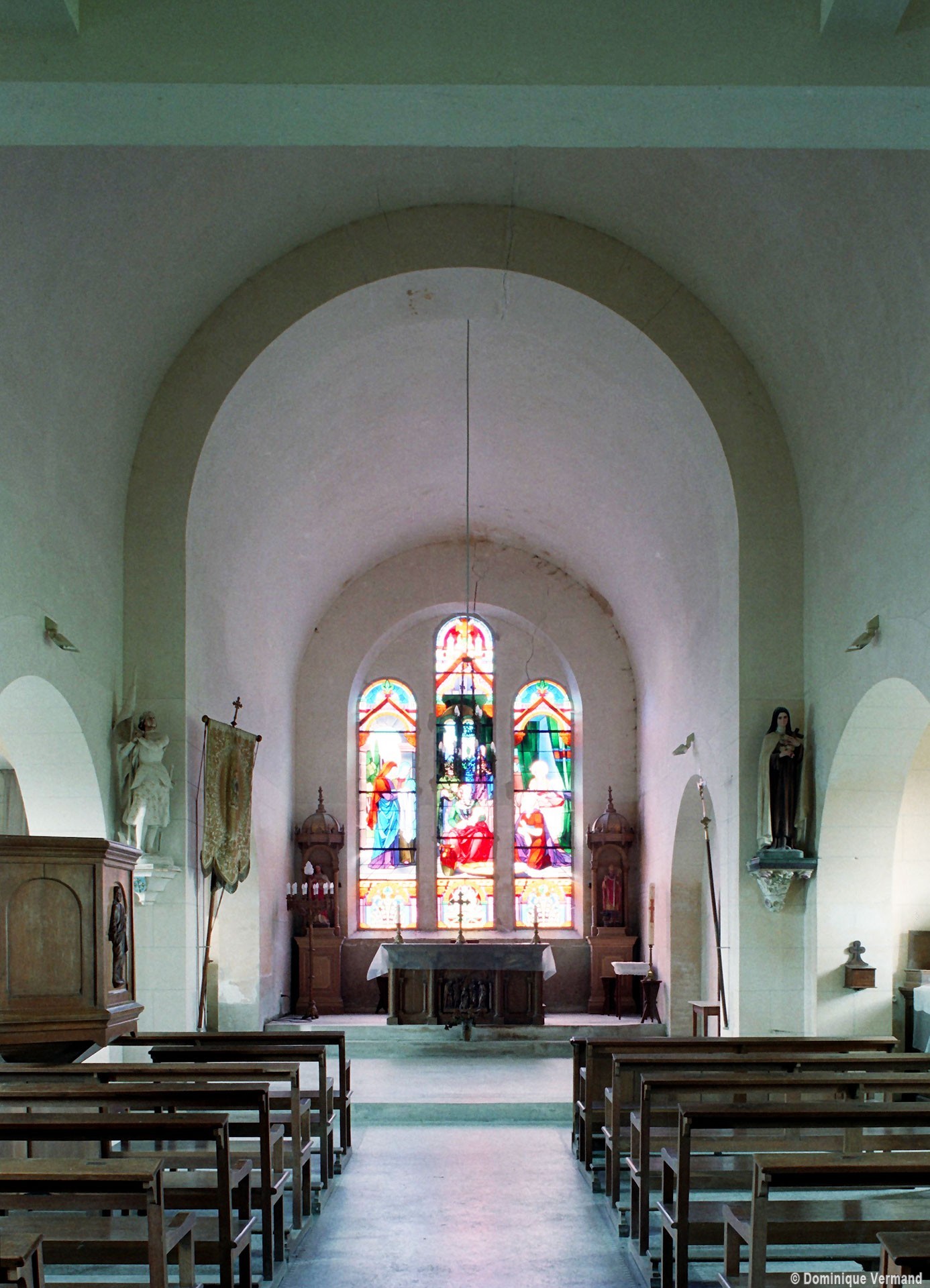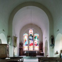La partie la plus intéressante est le choeur, dont la voûte en berceau plein cintre constitue comme un écrin pour les vitraux qui occupent le triplet du chevet. Composant une scène unique traitée avec une grande richesse de coloris, ils représentent la Naissance de la Vierge et ont été réalisés en 1929 par le maître verrier beauvaisien Houille. L’église possède une belle Vierge à l’Enfant, restaurée, du 16ème siècle (2008).