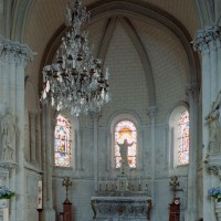 Le choeur était couvert d’une voûte en berceau brisé sur la travée droite -elle a été refaite à l’identique au 19ème siècle – et d’un cul-de-four sur l’abside (il est aujourd’hui renforcé par des ogives). A l’extérieur, les cinq fenêtres du choeur – trois sont authentiques – sont pourvues de colonnettes et leur archivolte est richement moulurée.