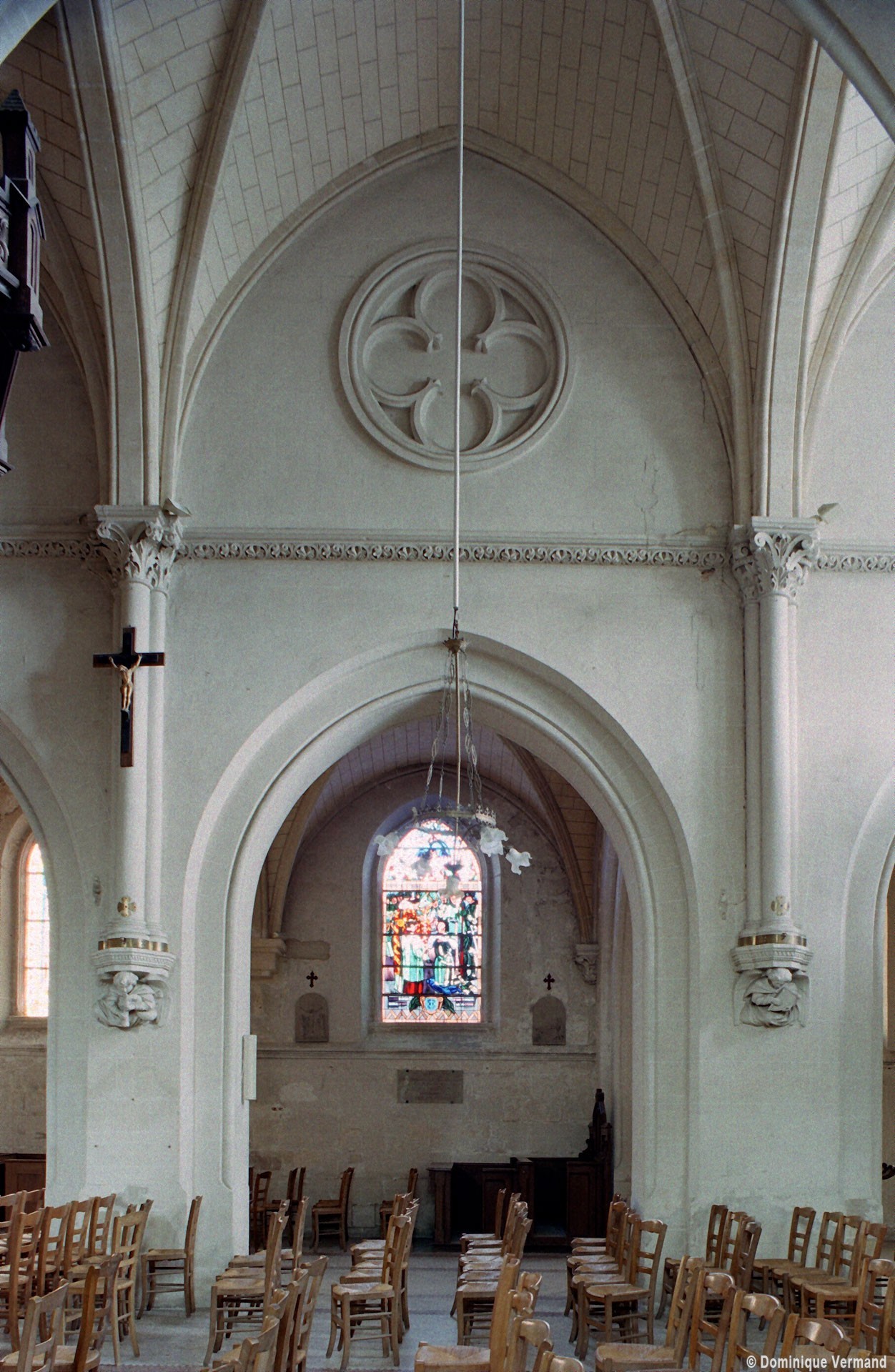 Comme le montrent les relevés de Woillez, il est tentant de penser que la nef était autrefois couverte d’une voûte en berceau de pierre renforcée par des arcs-doubleaux et épaulée, dans les bas-côtés, par des arcs diaphragmes. S’il était avéré, ce parti serait alors tout à fait exceptionnel dans l’Oise où ce type de voûte était réservé pour couvrir de petits espaces, notamment les choeurs. Aucune fenêtre n’éclairait de fait latéralement la nef et c’est la raison pour laquelle la façade comporte, selon une disposition très originale, deux rangées superposées de fenêtres en plein cintre pour pallier à l’absence de celles-ci dans les murs gouttereaux.