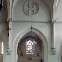 Eglise paroissiale dépendant du prieuré, Notre-Dame en a perpétué le souvenir en reprenant la dédicace de l’édifice disparu. Rescapée de la Guerre 14-18, Notre-Dame avait malheureusement été victime auparavant d’un autre type de destruction sous la forme d’une restauration tellement radicale que l’édifice en a perdu – du moins à l’intérieur – tout caractère d’authenticité. Achevée en 1876 dans un style néo-gothique sans aucun rapport avec l’état antérieur, cette « restauration » est d’autant plus regrettable que l’édifice était d’un grand intérêt.