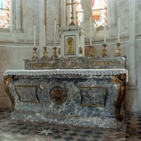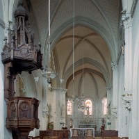 L’église conserve un magnifique maître-autel en marbre, du 18ème siècle, ainsi qu’un ensemble mobilier – autels secondaires, chaire à prêcher, tribune – néo-gothique.