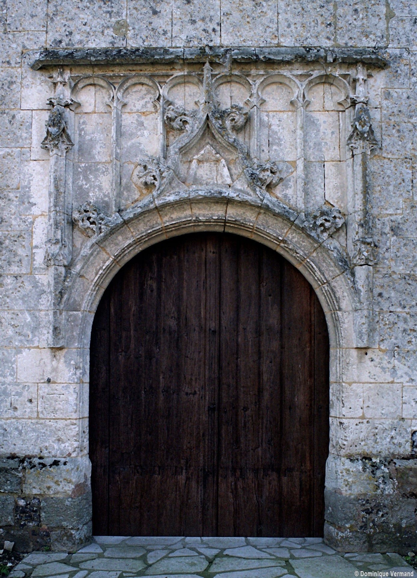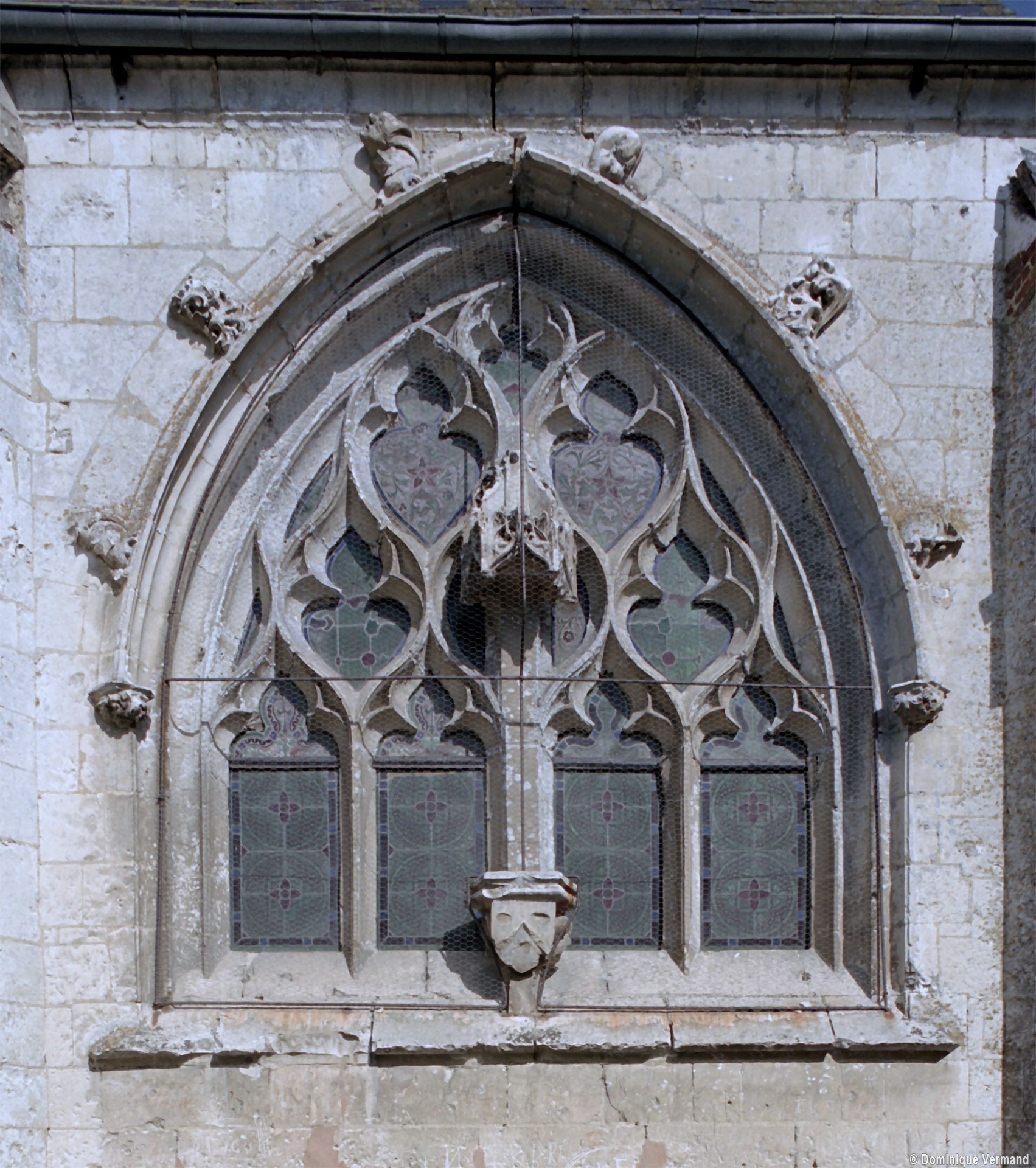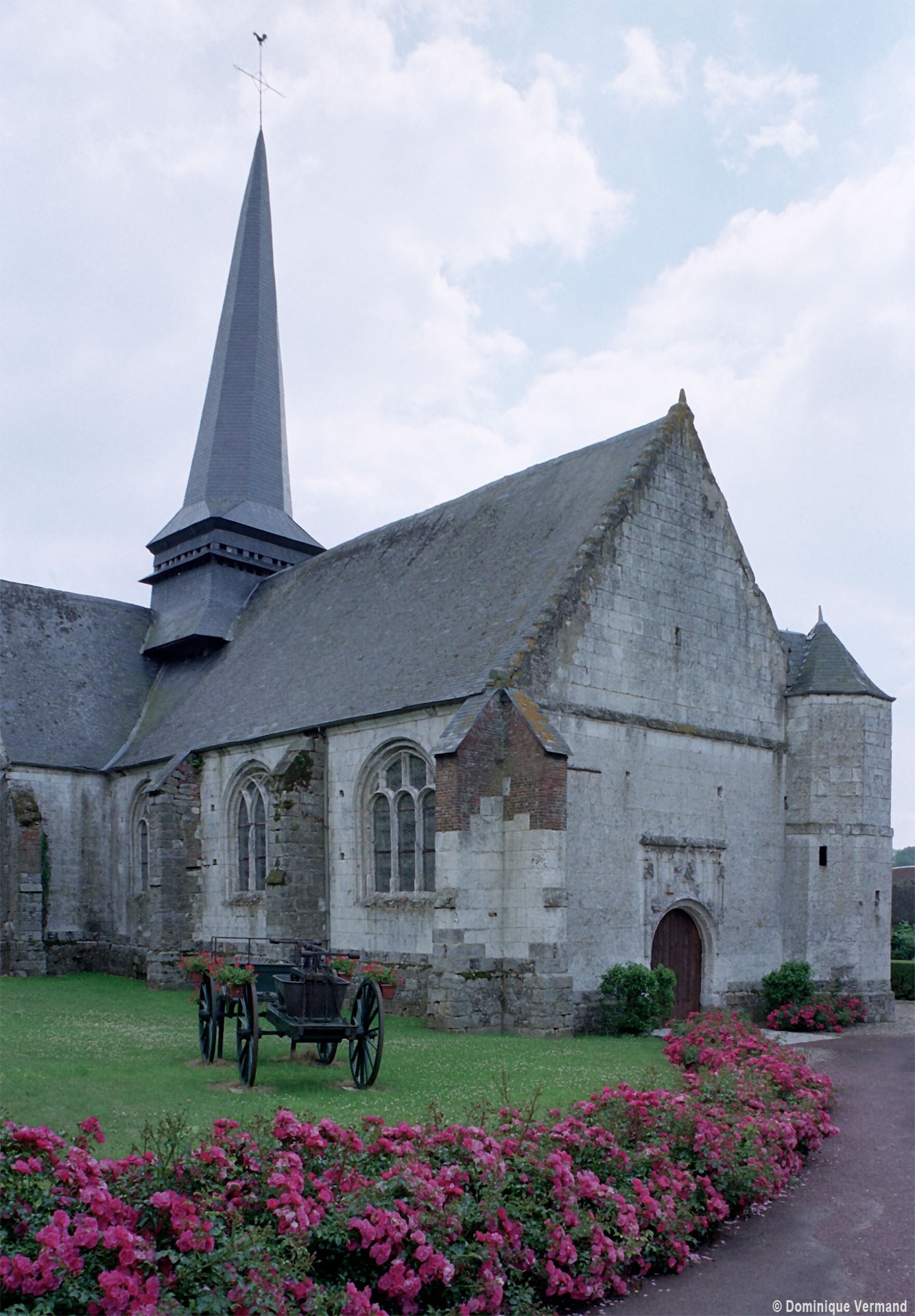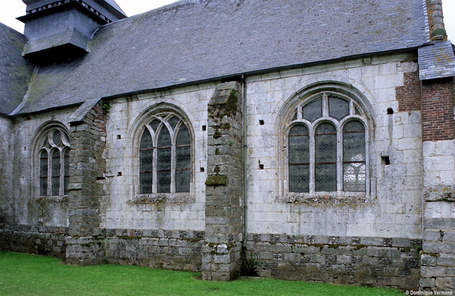 L’église est construite en blocs de pierre crayeuse bien appareillés – mais comportant souvent des rognons de silex – sur un soubassement constitué par un damier de grès et de silex. Par leur tracé en plein cintre et le dessin de leur remplage, les fenêtres de la nef appartiennent déjà à la Renaissance alors que les deux portails restent encore imprégnés du style gothique flamboyant. Celui de l’ouest est surmonté d’un arc en accolade décoré de feuilles de choux et le portail méridional était encadré par deux statues aujourd’hui disparues. Dans les deux cas, un réseau d’arcatures aveugles les couronnent. Mais l’élément le plus spectaculaire est la fenêtre du chevet, dont le réseau en courbes et contre-courbes est d’une grande virtuosité. Six petits éléments sculptés sont comme accrochés à son archivolte tandis que le meneau central, pourvu d’un piédestal et d’un dais, accueillait autrefois une statue.
