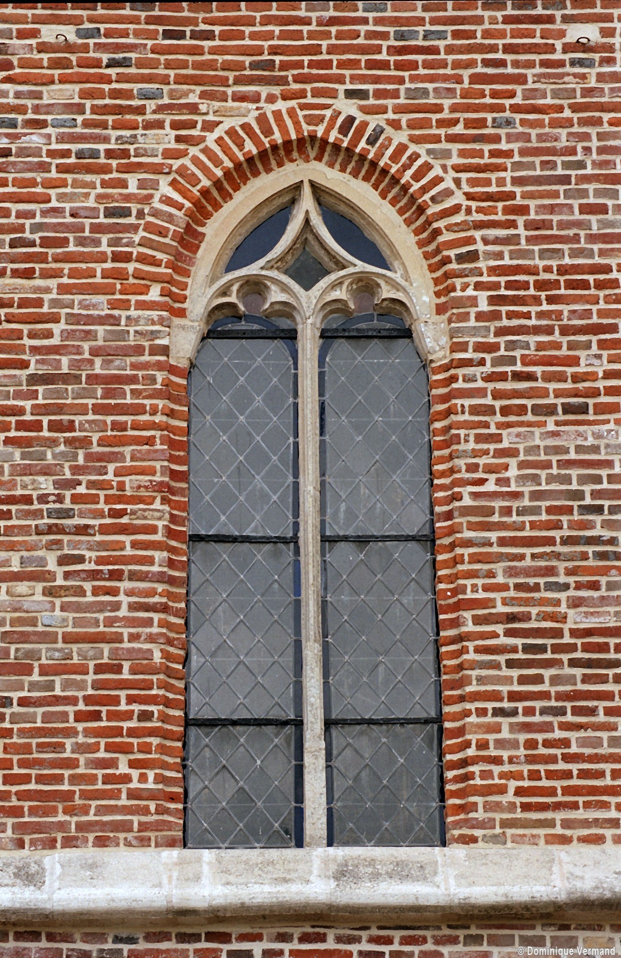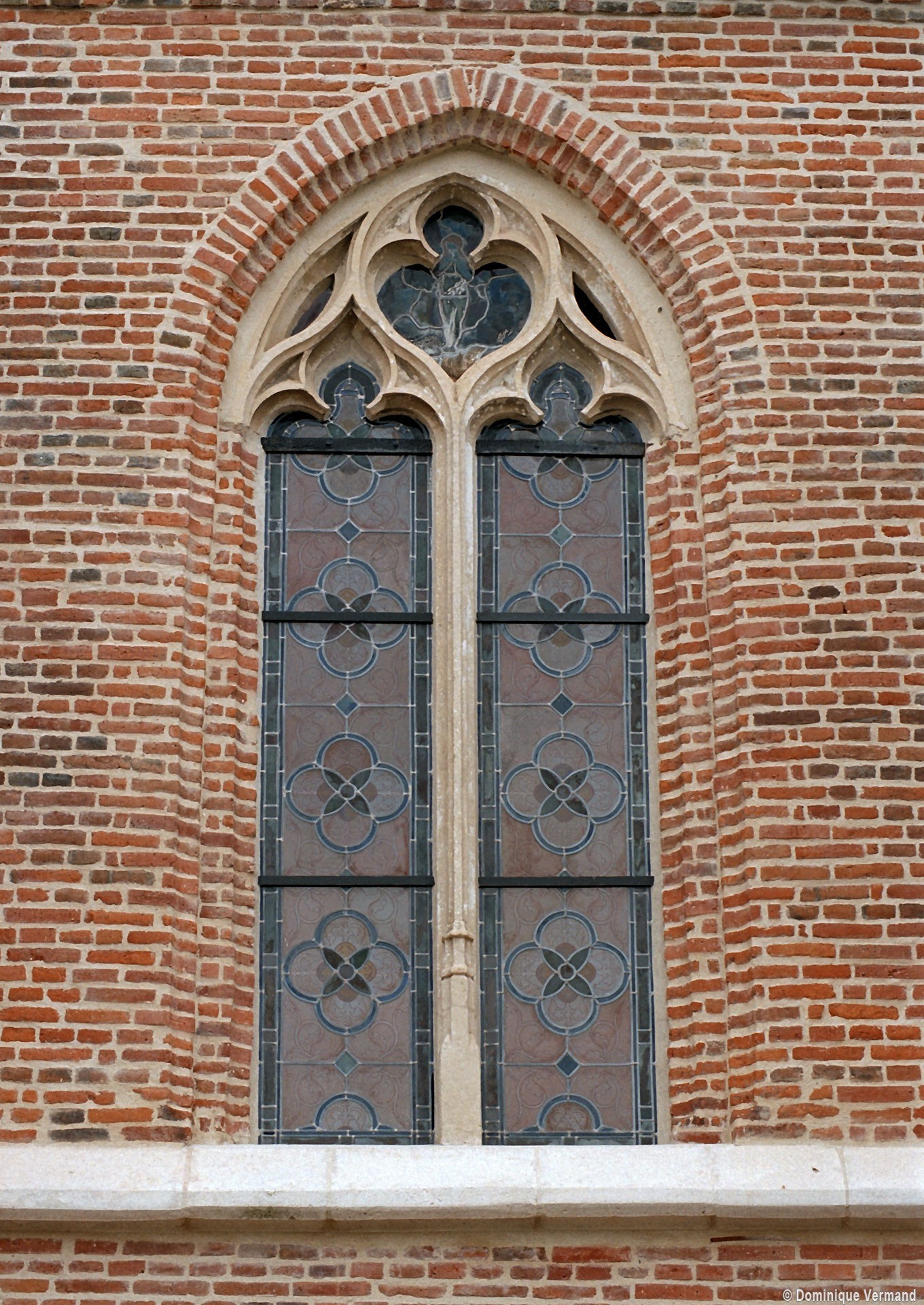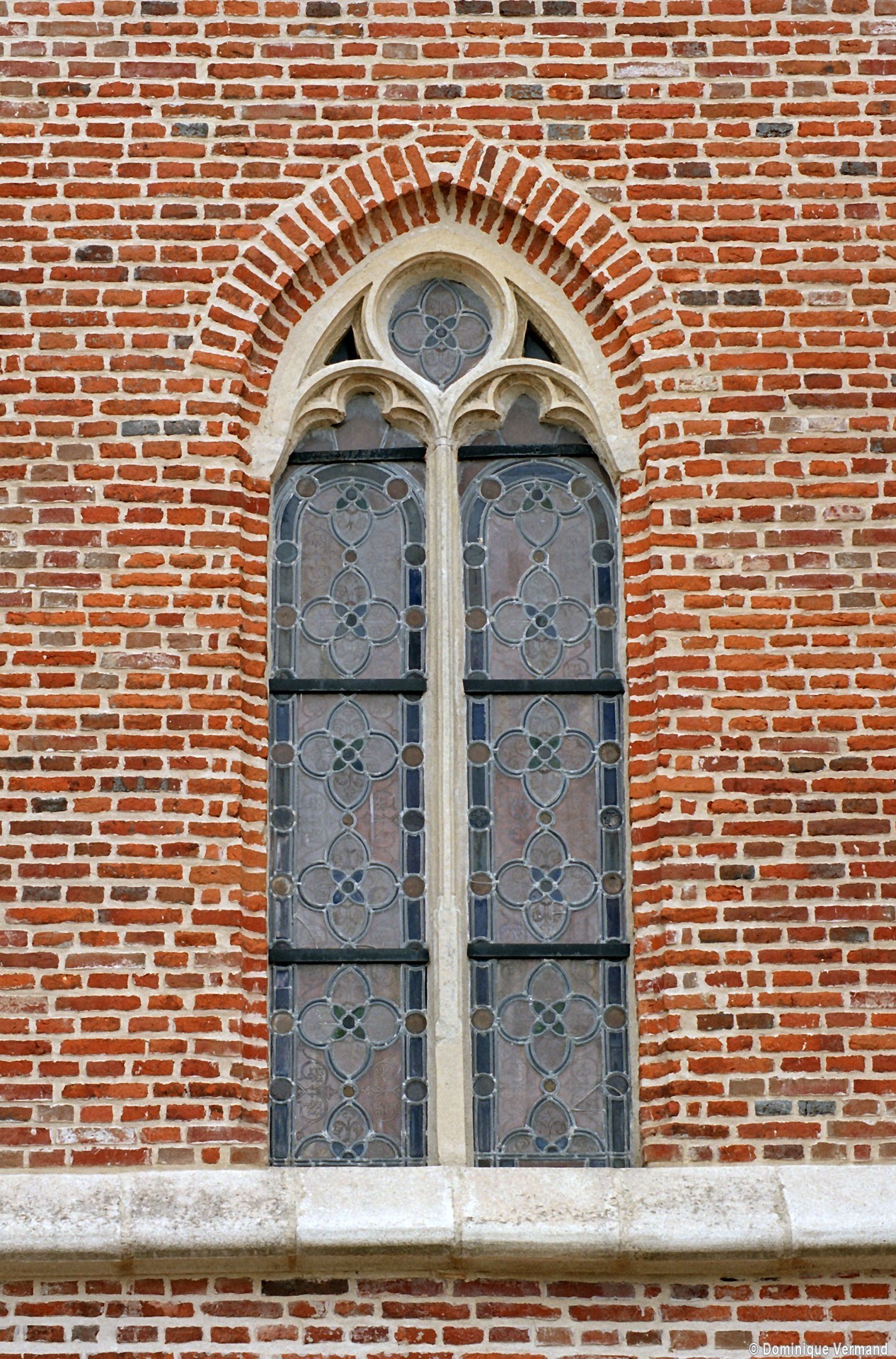 L’église est remarquable pour ses nombreuses fenêtres à meneaux. De tailles différentes, elles associent piédroits en briques et meneaux en pierre. Leur réseau reste caractéristique de la période flamboyante, avec soufflets et mouchettes. Comme souvent, l’accent est mis sur le fenêtre centrale de l’abside, plus large et divisée en trois lancettes. L’édifice est couvert d’une magnifique charpente en carène de la même époque avec eugoulants (monstres avalant les entraits) et blochets sculptés de personnages. La voûte est décorée de petits éléments sculptés représentant des anges, soleils, étoiles, croissants de lune, colombes, pélicans, épis de blé, grappes de raisin…