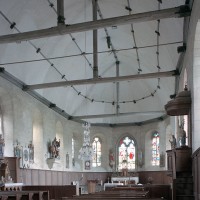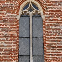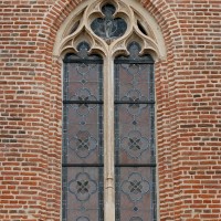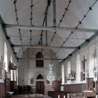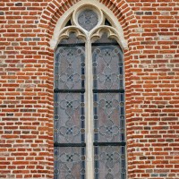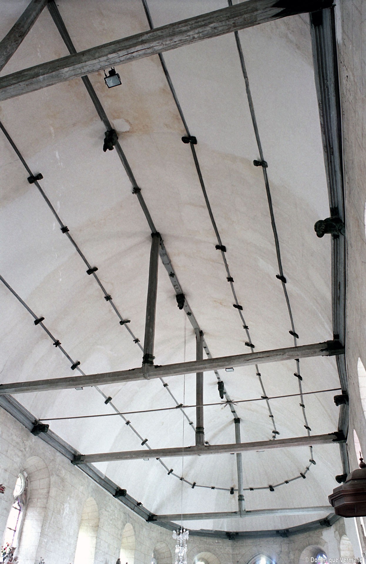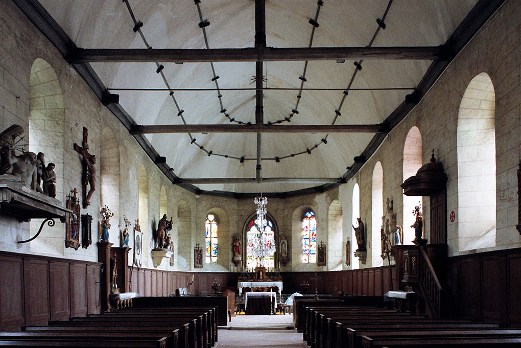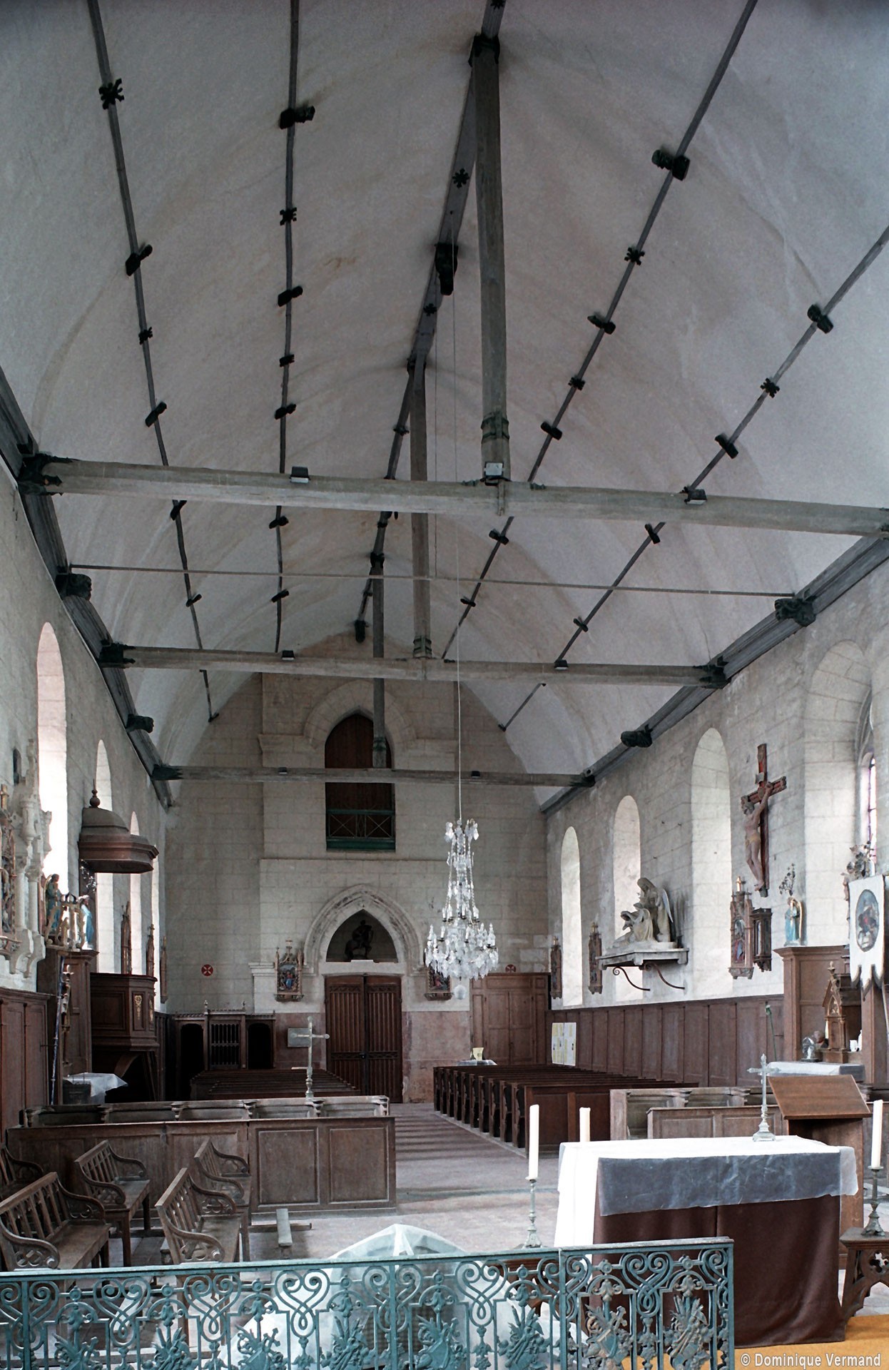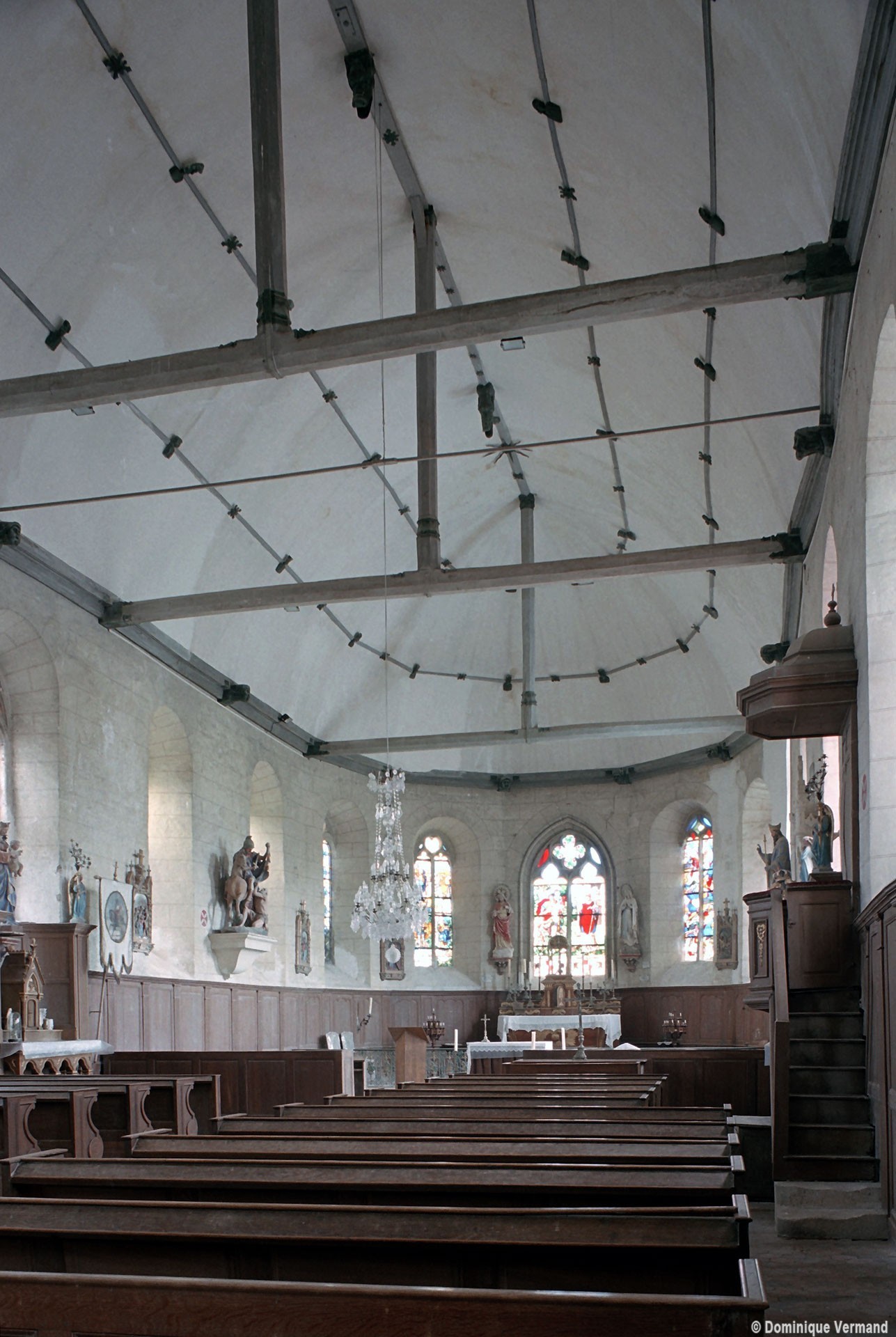L’église est remarquable pour ses nombreuses fenêtres à meneaux. De tailles différentes, elles associent piédroits en briques et meneaux en pierre. Leur réseau reste caractéristique de la période flamboyante, avec soufflets et mouchettes. Comme souvent, l’accent est mis sur le fenêtre centrale de l’abside, plus large et divisée en trois lancettes. L’édifice est couvert d’une magnifique charpente en carène de la même époque avec eugoulants (monstres avalant les entraits) et blochets sculptés de personnages. La voûte est décorée de petits éléments sculptés représentant des anges, soleils, étoiles, croissants de lune, colombes, pélicans, épis de blé, grappes de raisin…