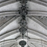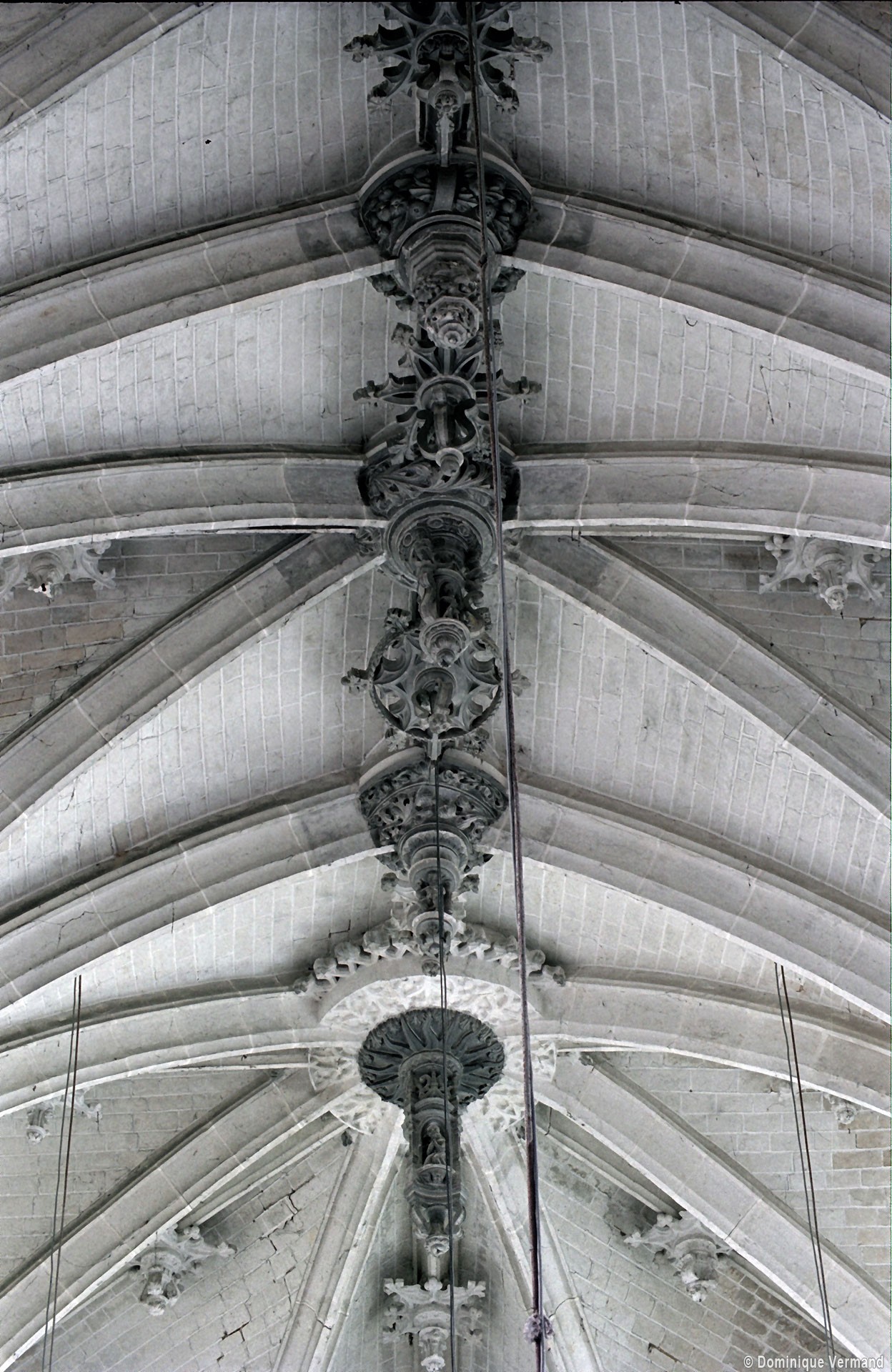 Avec celles de Paillart, d’Hardivillers, de Reuil-sur-Brêche…les voûtes comptent parmi les plus belles de la région. La croisée d’ogives traditionnelle est complétée par des liernes (nervures transversales), un procédé courant à la fin du gothique où l’on complique volontiers, parfois jusqu’à l’extrême, le dessin des voûtes. Ce qui fait la richesse de celles d’Esquennoy ce sont les dix-neuf clefs pendantes de tailles variées qui émaillent son réseau. Leur décor raffiné appartient déjà au style de la Renaissance. Plus importante, la clef de l’abside est décorée de personnages abrités dans des niches.