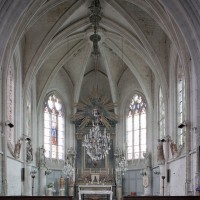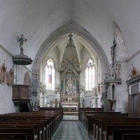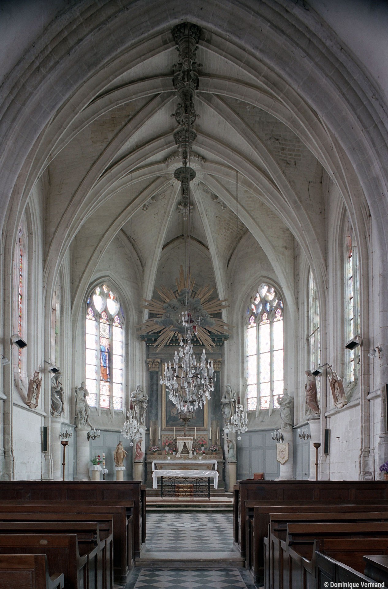 Saint-Pierre se signale de loin par son imposante tour qui domine un très beau chœur de la fin du gothique et une modeste nef unique reconstruite en 1834 comme l’indique une date inscrite sur le pignon ouest. Le chœur est composé de deux travées droites et d’une abside à cinq pans.