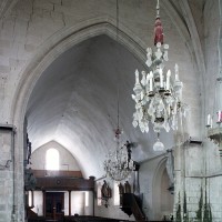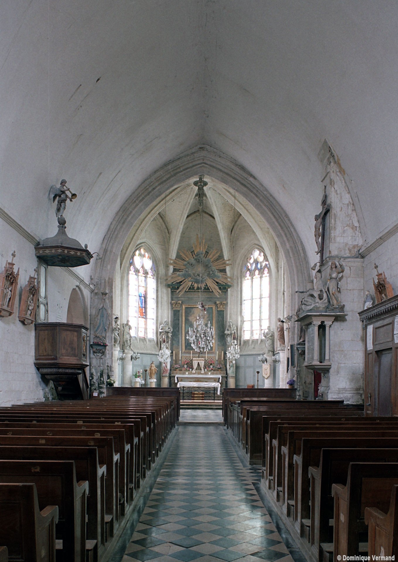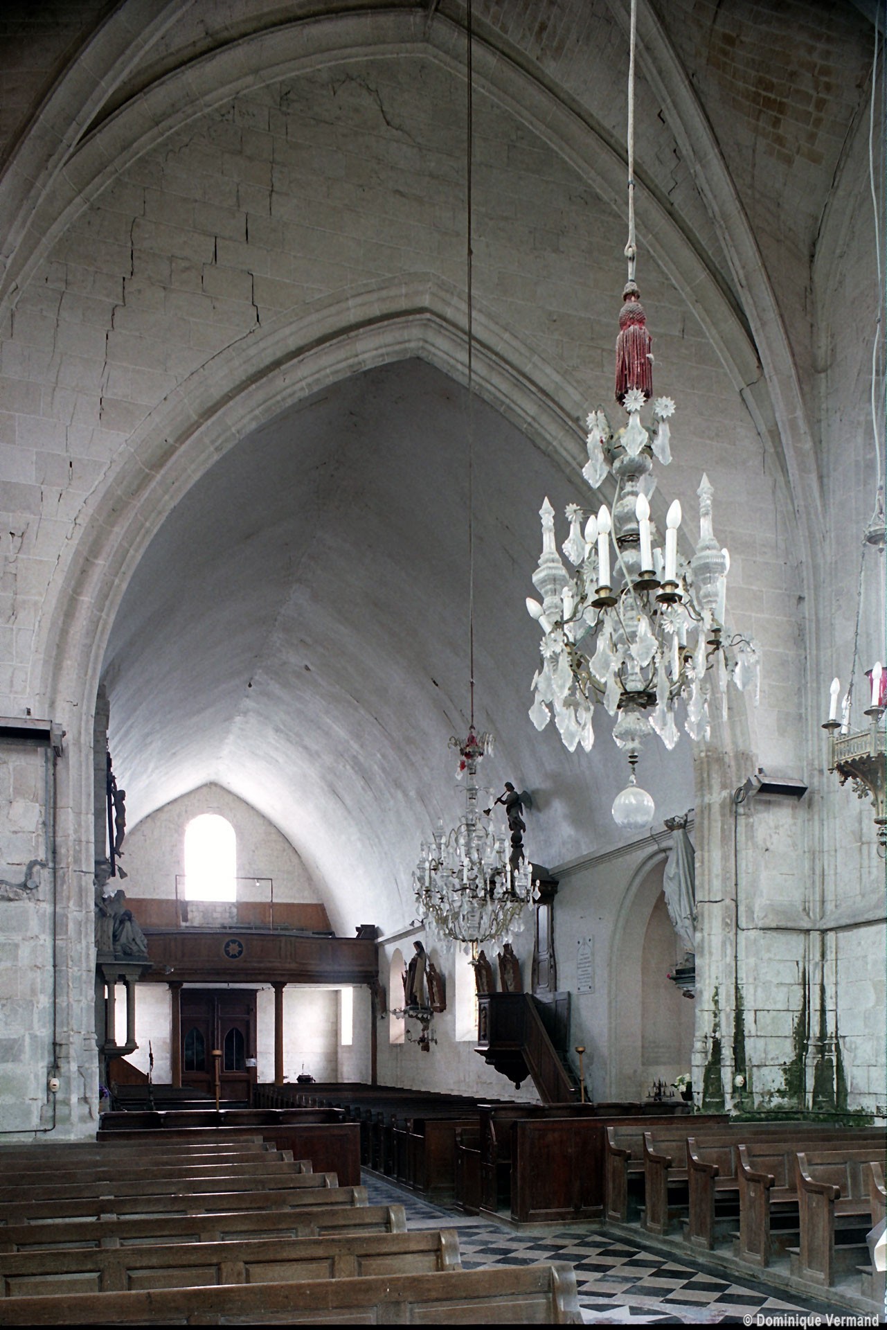 A l’angle nord-ouest de la tour, une amorce de fenêtre montre que la reconstruction d’une nef de même élévation que le chœur avait été envisagée. Des traces de boulets rappellent les combats que se sont livrés ici Huguenots et Ligueurs en 1589. A l’extrémité de la nef, deux petites chapelles ont été bâties en 1874 par Sellier-Delaforge en commémoration de la bénédiction de leur usine. Elles comportent des vitraux de la même époque et constitue un bon exemple de mécénat religieux, comme il s’en pratiquait beaucoup à l’époque.