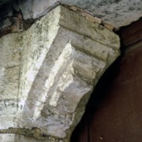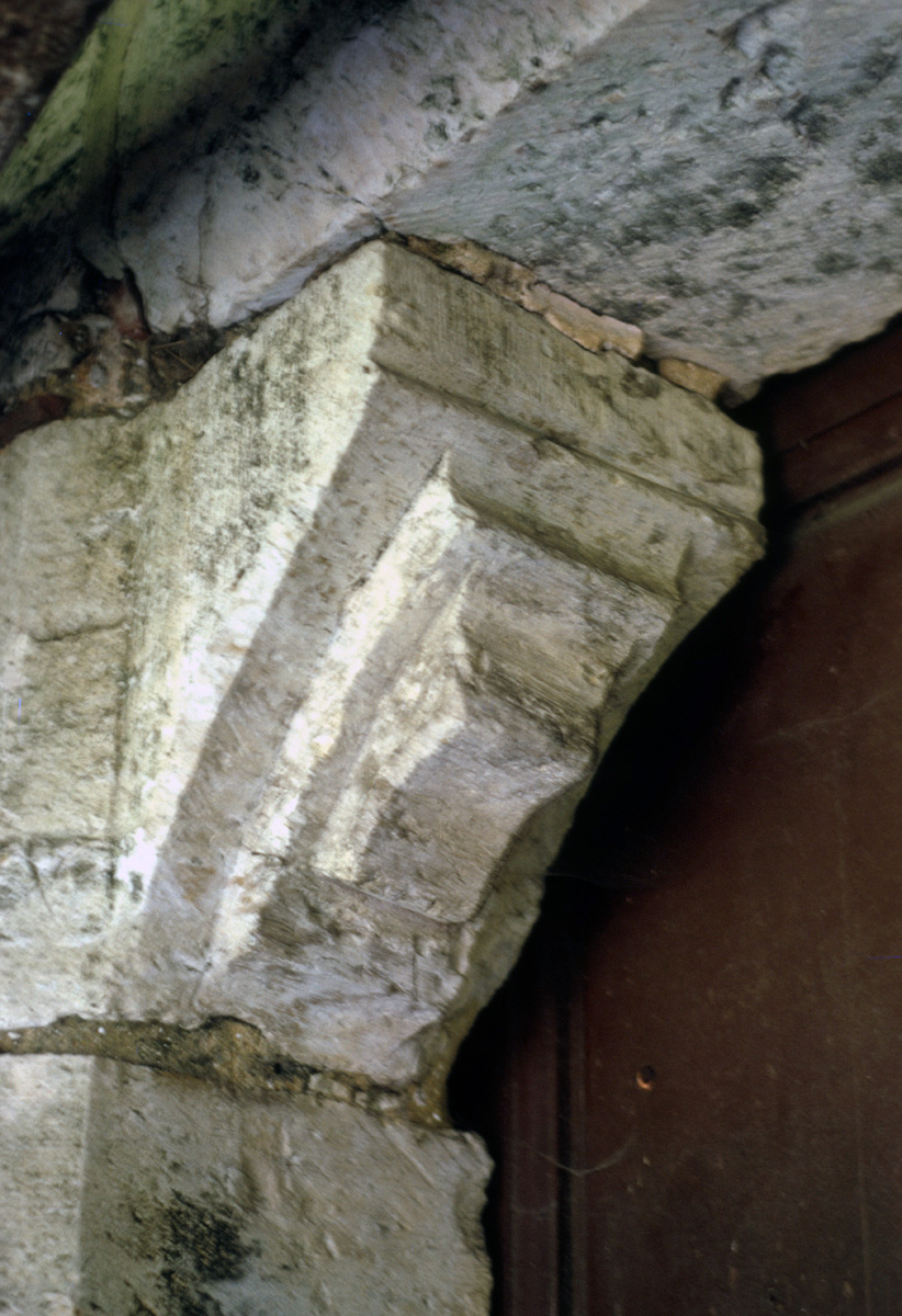 L’autre porte, plus simple, est percée au nord, juste avant le chœur. Son épais linteau est formé par deux blocs réunis par une clef et l’arc qui lui est associé n’est appareillé que dans sa partie supérieure, ses retombées latérales n’étant simplement que gravées dans le linteau.