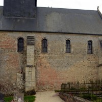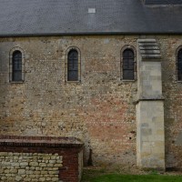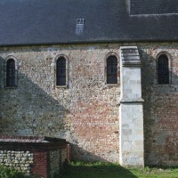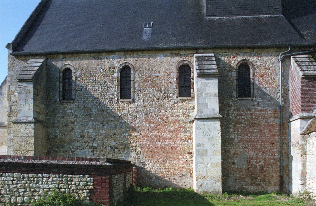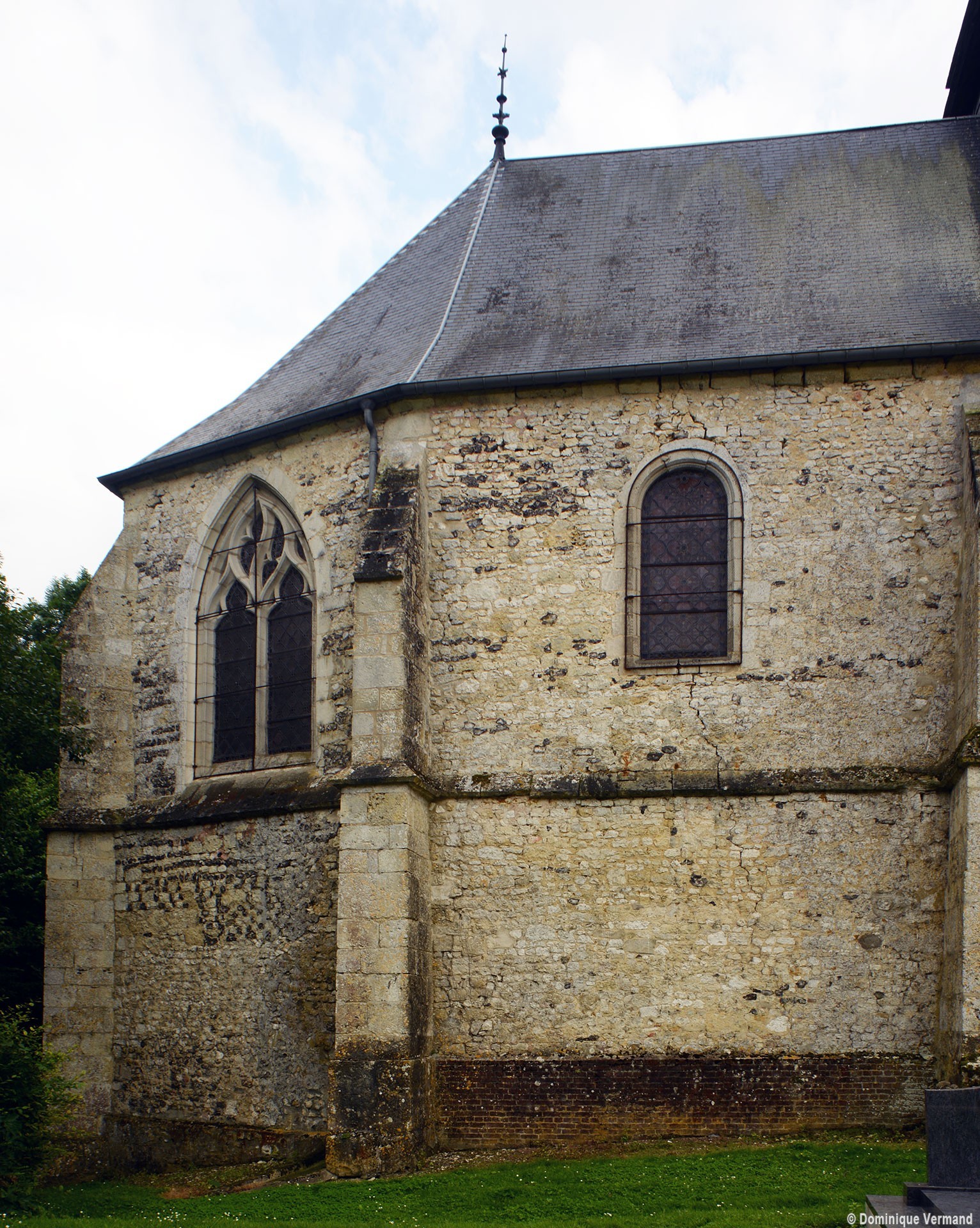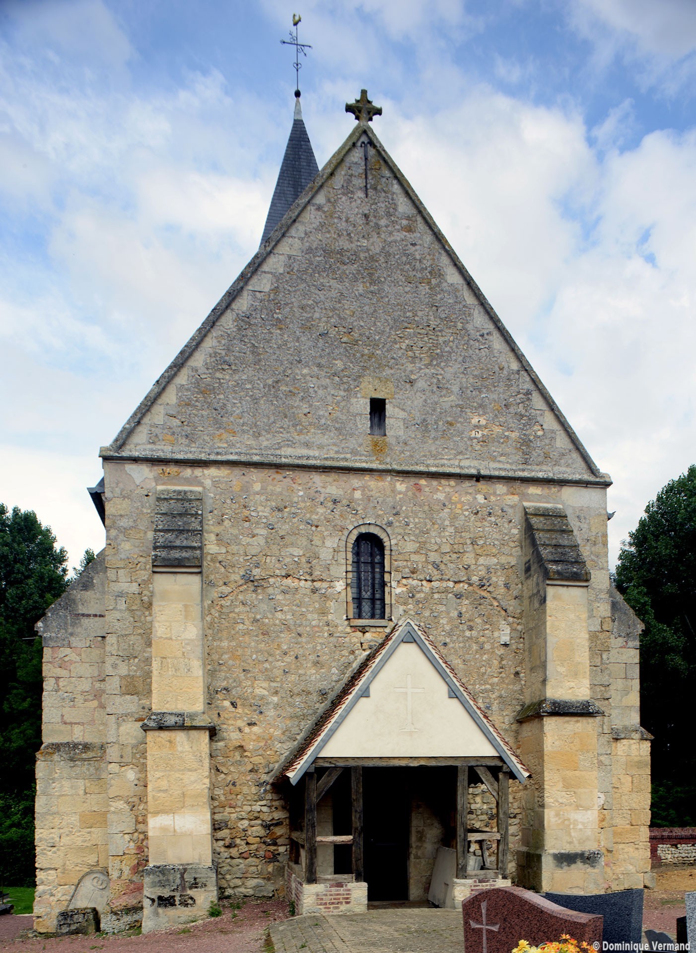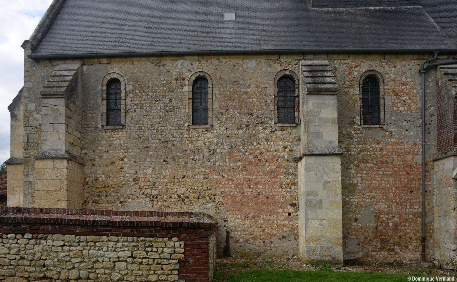 La nef, bien conservée, est l’un des meilleurs et des plus anciens exemples parmi les nefs rurales du Beauvaisis. Les hauts murs gouttereaux sont construits en petites pierres plus ou moins carrées disposées en assises régulières. Les quatre fenêtres qui s’ouvrent dans chacun des deux murs, comme celle de la façade, sont percées très haut. Elles ne sont pas ébrasées vers l’extérieur et leur archivolte est constituée d’un grand nombre de claveaux très étroits. Il n’y avait pas de contreforts à l’origine (les six qui se voient aujourd’hui n’ont été montés que lors de la construction du chœur) et les angles étaient simplement renforcés par les pierres de taille disposées en carreaux et boutisses (alternativement dans un sens puis dans l’autre) que l’on voit toujours aux angles sud-ouest et nord-ouest de la nef.