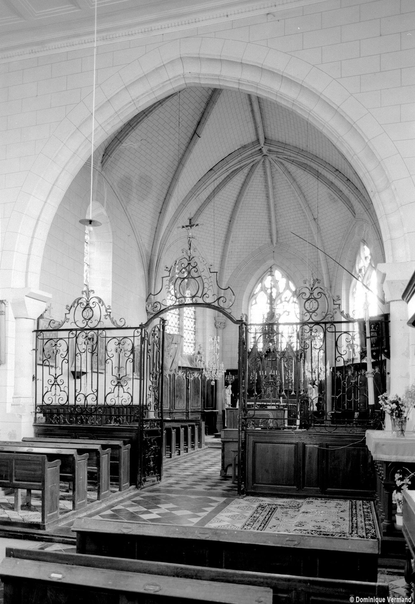 Bâti durant la première moitié du 16ème siècle, le chœur est une construction simple et très soignée de style gothique flamboyant. Retombant sur des demi-colonnes par l’intermédiaire de chapiteaux à décor floral stylisé, ses voûtes – à la travée droite comme à l’abside – sont très bombées et renforcées par des liernes. Fréquentes dans l’architecture gothique tardive, ces nervures supplémentaires relient les clefs de la voûte au sommet des arcs qui l’encadre. Si, curieusement, la travée droite n’est percée que de deux modestes fenêtres en plein cintre, l’abside a conservé intactes ses grandes fenêtres à réseau flamboyant.