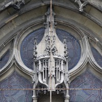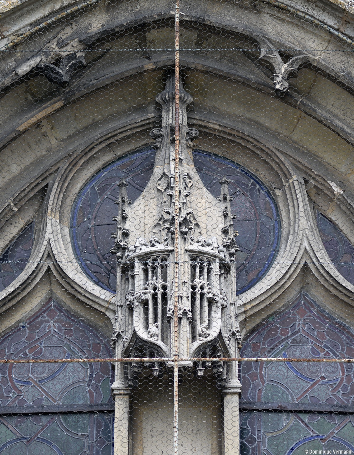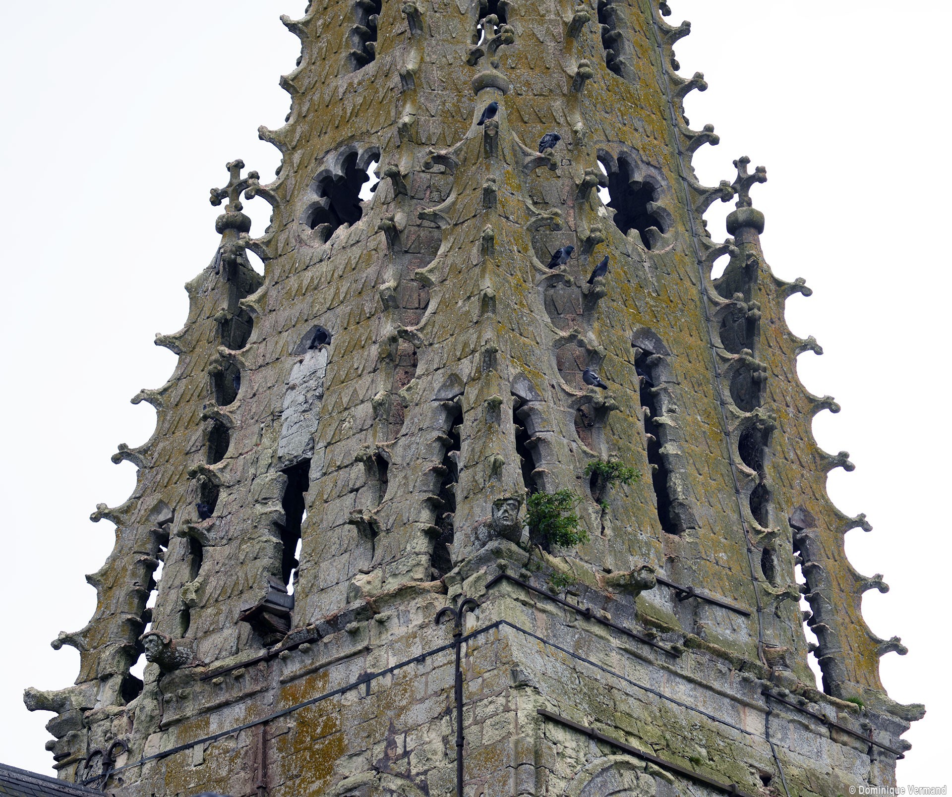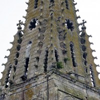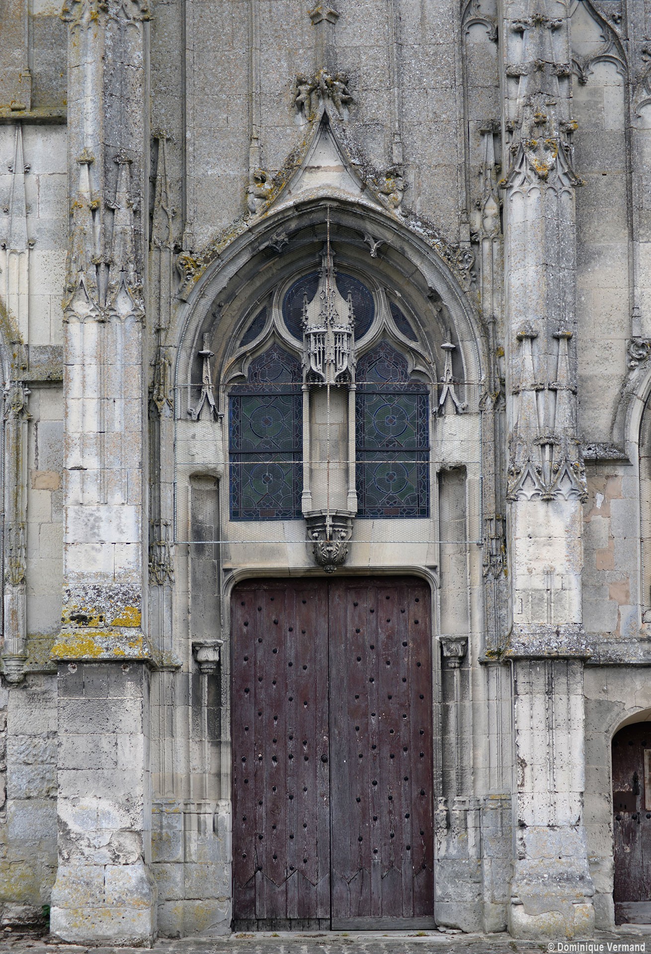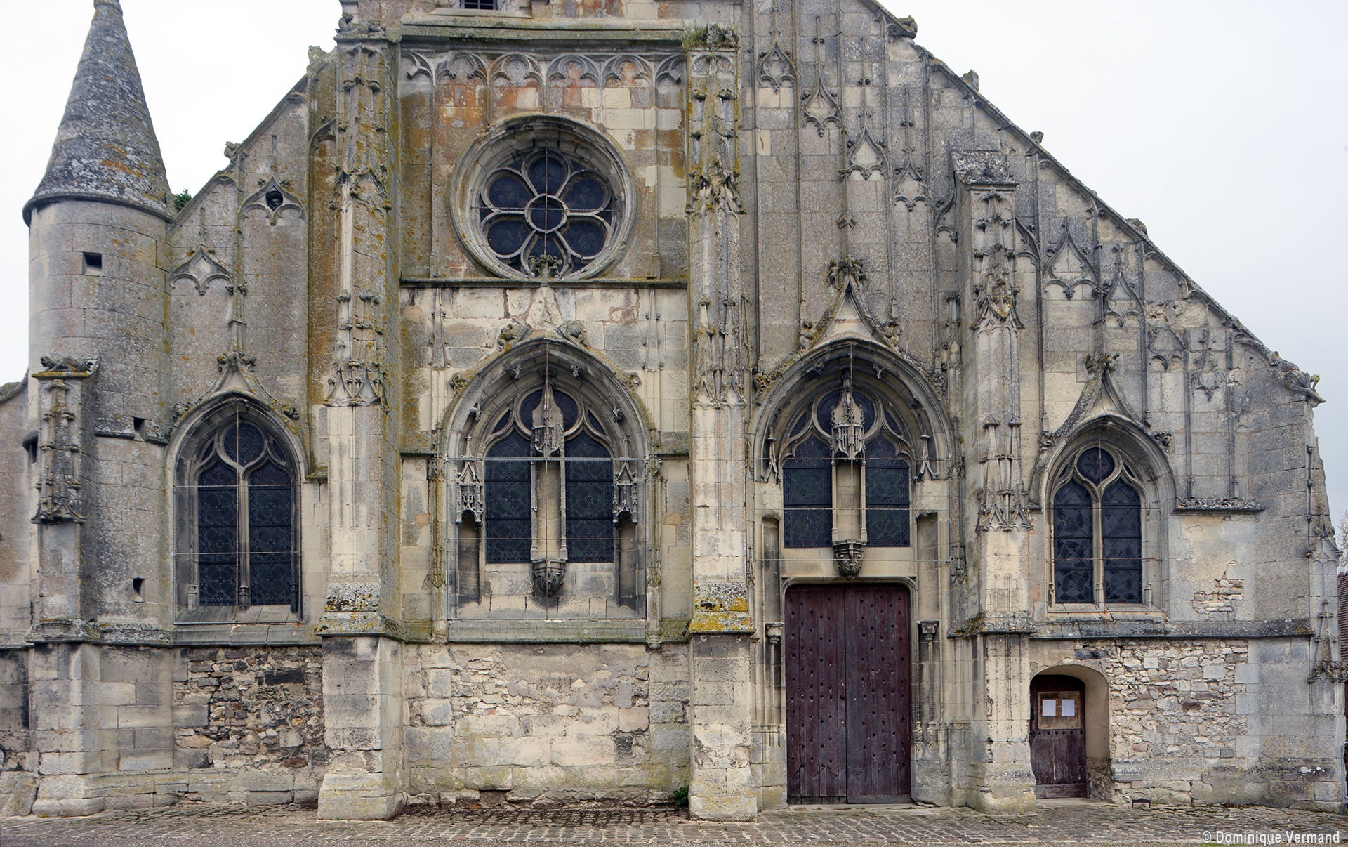 C’est également de cette époque que date la belle flèche octogonale en pierre ajourée d’ouvertures rectangulaires ou polylobées et aux arêtes garnies de crochets. Des petites pyramides occupent les angles de la tour selon un schéma classique que l’on retrouve non loin de là à Baron, Montagny-Sainte-Félicité, Versigny et Plailly, ces deux dernières bâties sans doute par le même atelier.