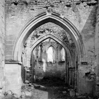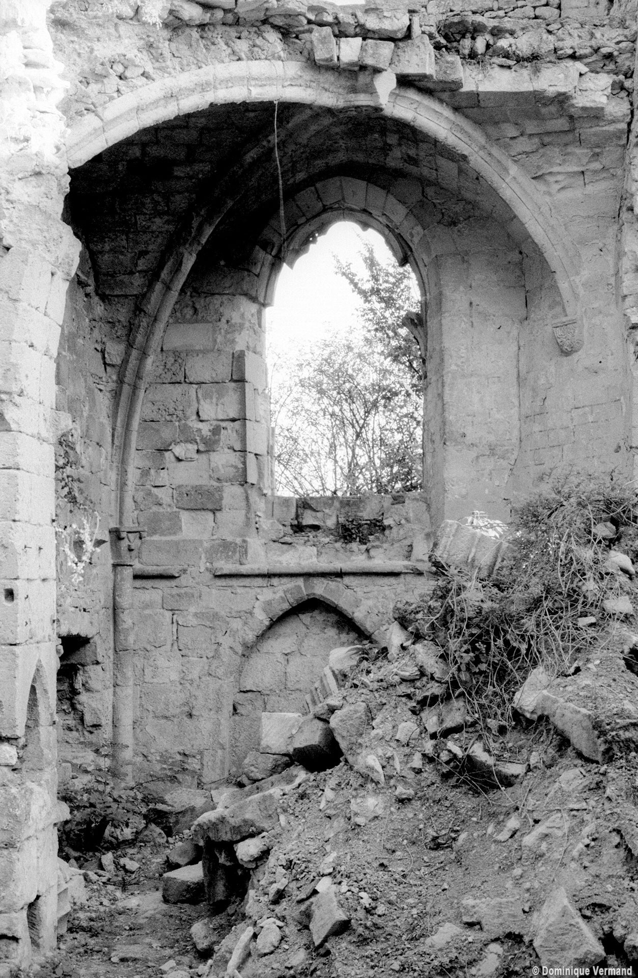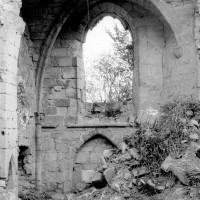 Un chœur de deux travées à chevet plat avait été bâti au début du 12ème siècle. Il sera totalement repris un siècle plus tard et doté, en plusieurs campagnes, de chapelles au nord et au sud, la plus tardive étant la chapelle sud-est, de la fin du 13ème siècle. Auparavant, c’est au début du même siècle qu’avait été reconstruite la façade ouest, percée d’un petit portail très simple et d’une fenêtre, tous deux en arc brisé.