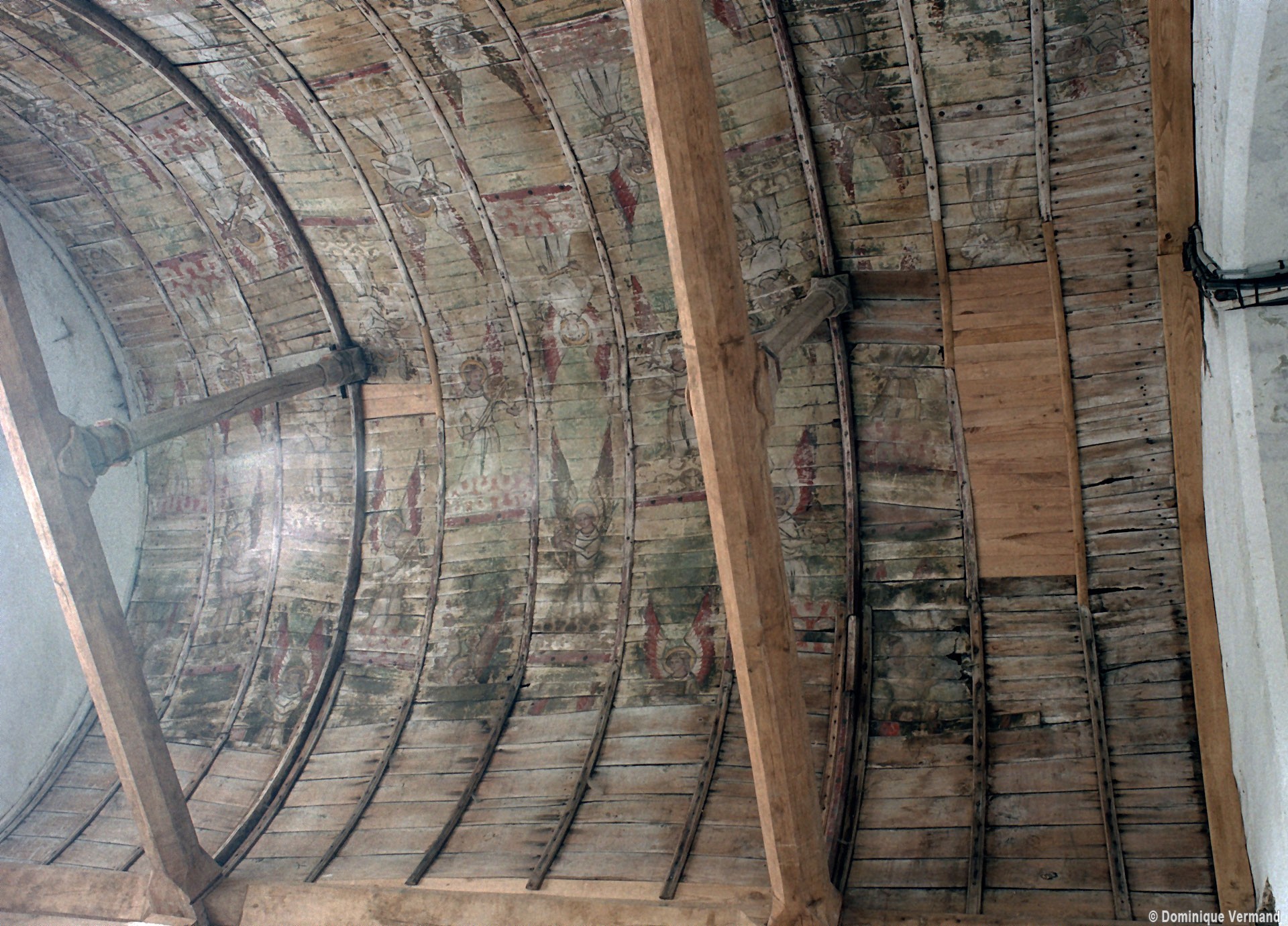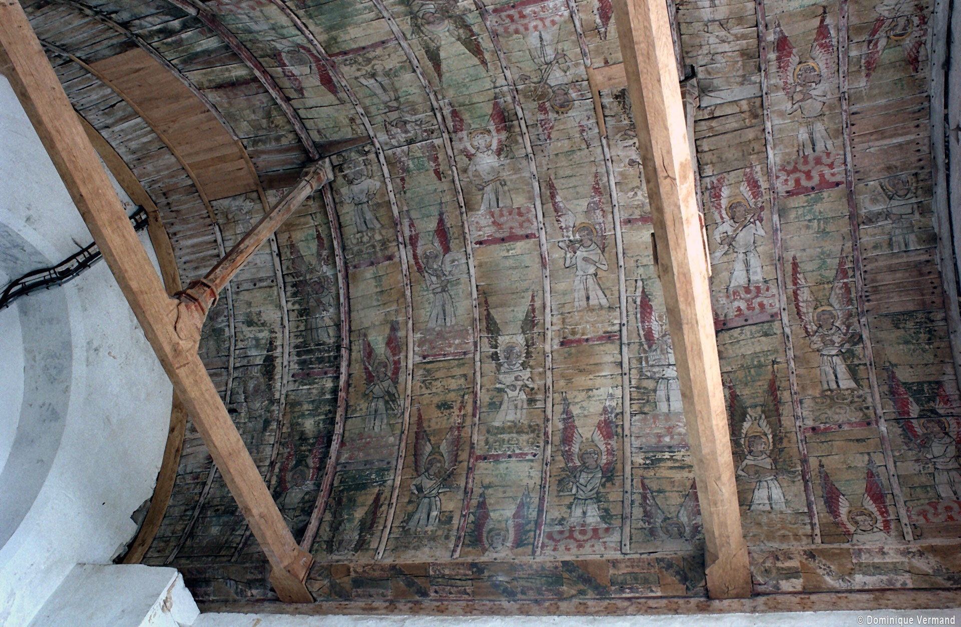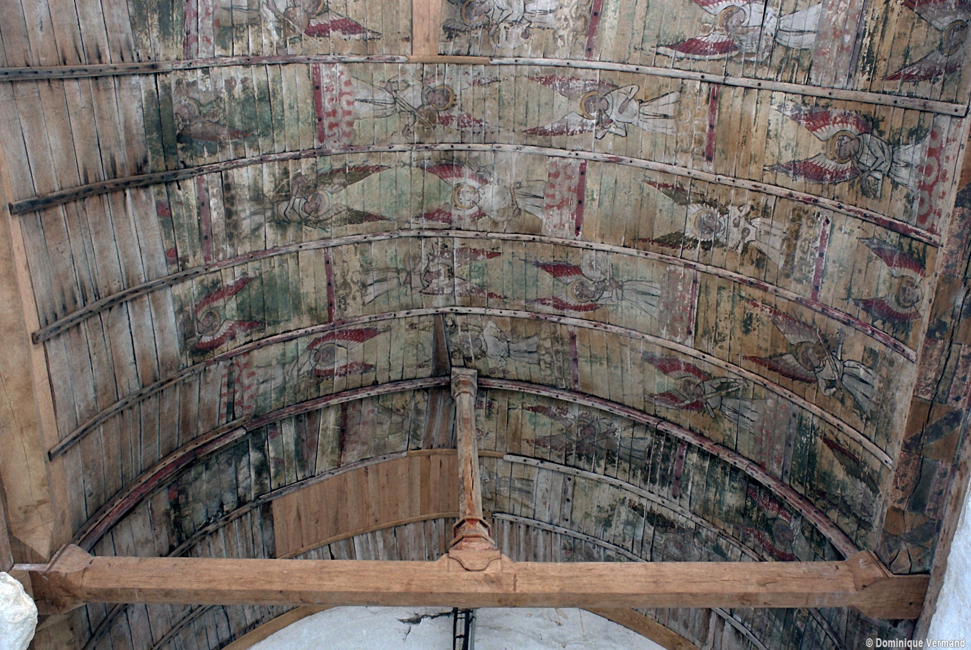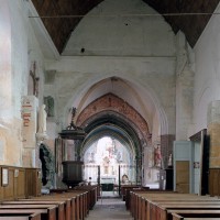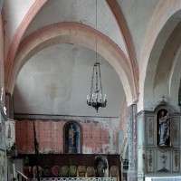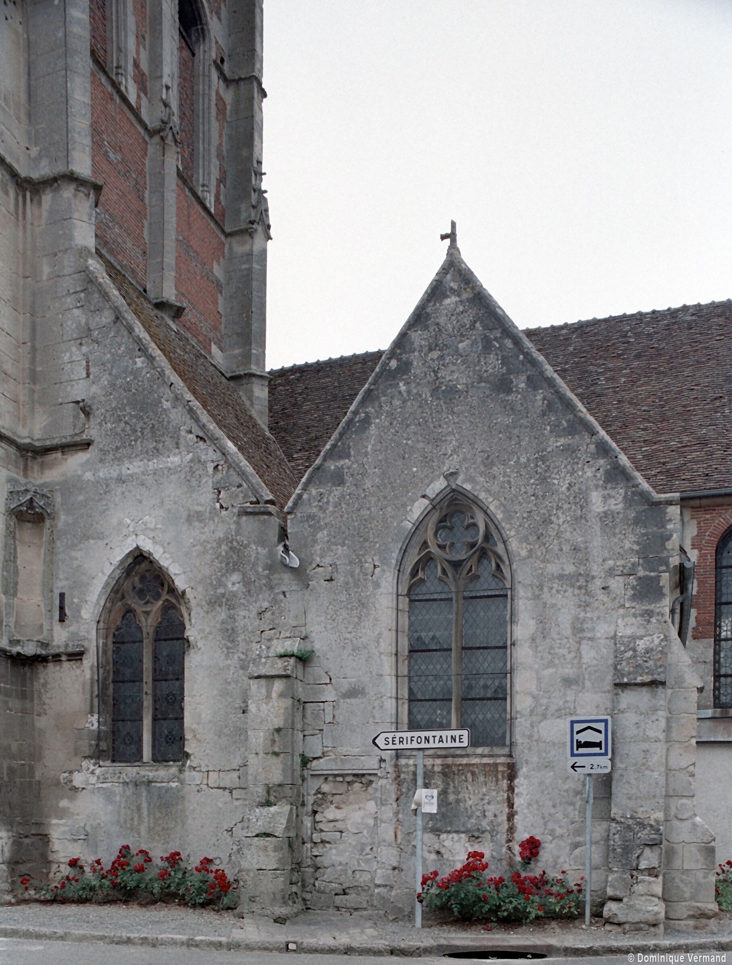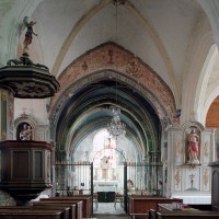 Vers 1200, l’édifice n’était constitué que d’une simple nef – d’origine sans doute plus ancienne mais très dénaturée par la suite – et d’un choeur de deux travées à chevet plat. Englobé dans les agrandissements successifs de l’église, celui-ci a conservé ses deux voûtes d’ogives retombant sur des faisceaux de colonnettes par l’intermédiaire de chapiteaux à crochets. Les fenêtres primitives avec décor de pointes de diamant se voient encore sur le côté nord, celle de la première travée depuis l’intérieur.