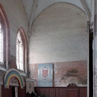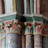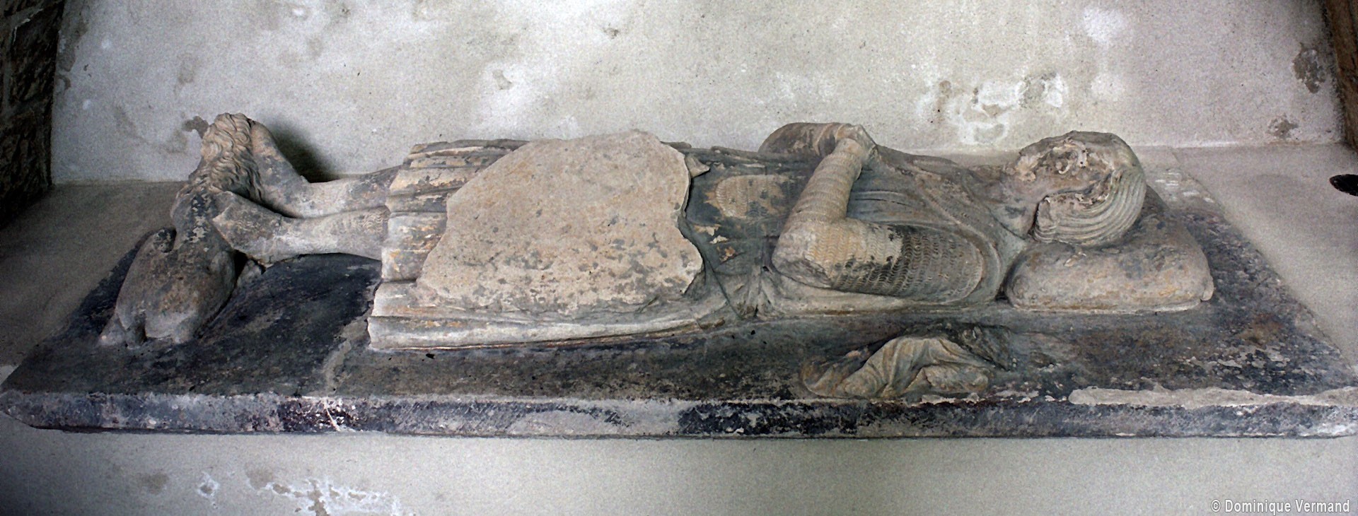 C’est sur cette dernière que seront greffées, au nord comme au sud, deux chapelles par Guillaume de Flavacourt, archevêque de Rouen entre 1278 et 1306. Celle du sud conserve encore sa fenêtre à remplage rayonnant. A peu près à la même époque, le choeur sera prolongé vers l’est par une chapelle funéraire, plus basse qu’aujourd’hui et dont le mode de communication originel avec le choeur n’est pas connu car l’ensemble sera repris au 16ème siècle. Elle conserve, sur les deux côtés, deux enfeux qui abritent des gisants du début du 14ème siècle qui pourraient être ceux de Guillaume II de Flavacourt et de son épouse, Agnès de Blois, autrefois à la chapelle Sainte-Anne.