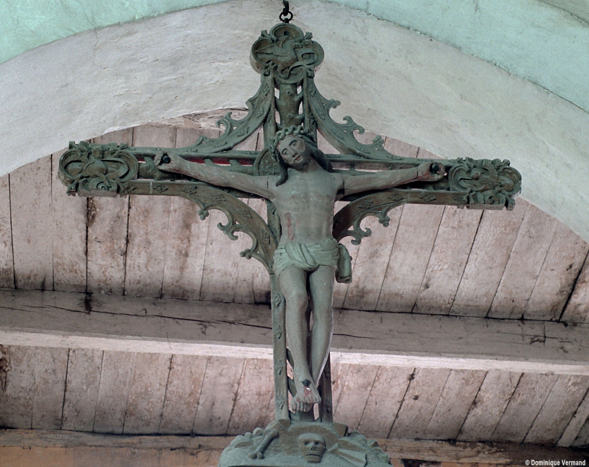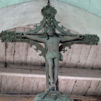 L’édifice conserve notamment un très beau Christ en Croix (15ème siècle) provenant de l’ancienne poutre de gloire ainsi que plusieurs statues en pierre des 14ème (saint Clair, saint Jean Baptiste), 15ème (deux moines) et 16ème (saint Christophe) siècles (2006, modifié 2019).