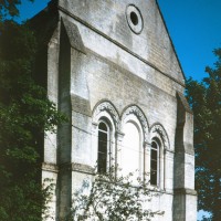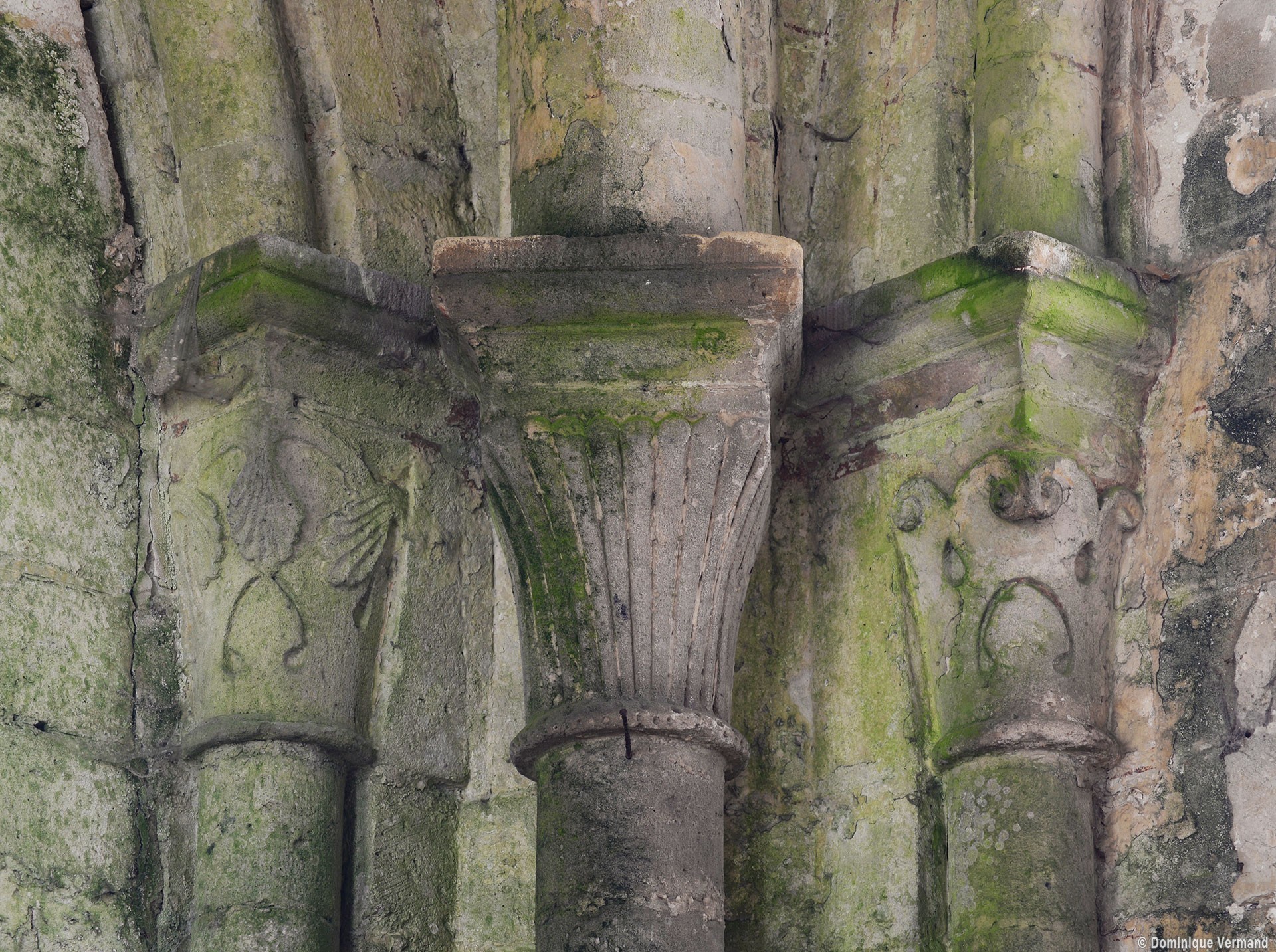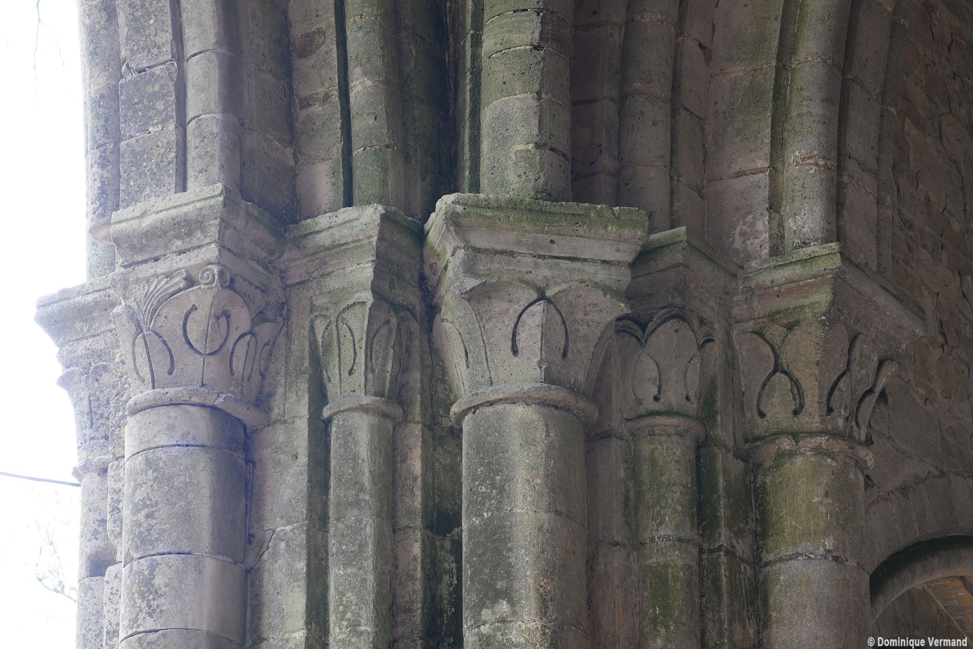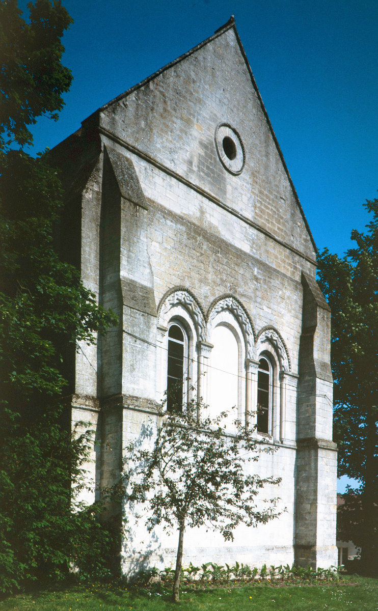 Caractérisé par une silhouette qui reste encore pleinement romane, l’extérieur laisse admirer la perfection de son appareil. Sobre et raffiné à la fois, le chevet est percé d’un triplet décoré de bâtons brisés retombant, vers l’extérieur, sur des chapiteaux dont le décor se prolonge en frise. Le pignon est percé d’un oculus tandis que celui du croisillon sud est agrémenté d’une élégante suite d’arcatures aveugles (1994).