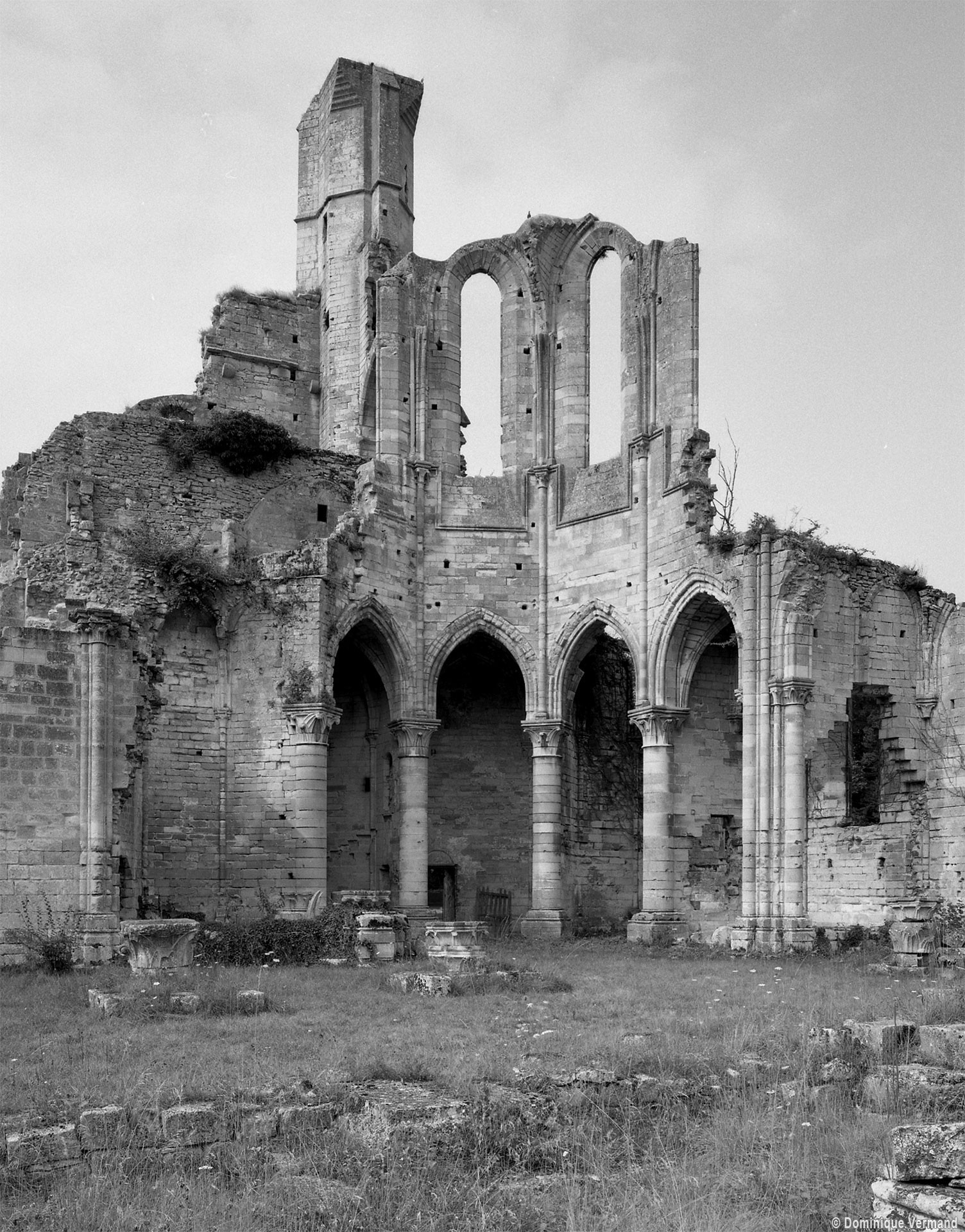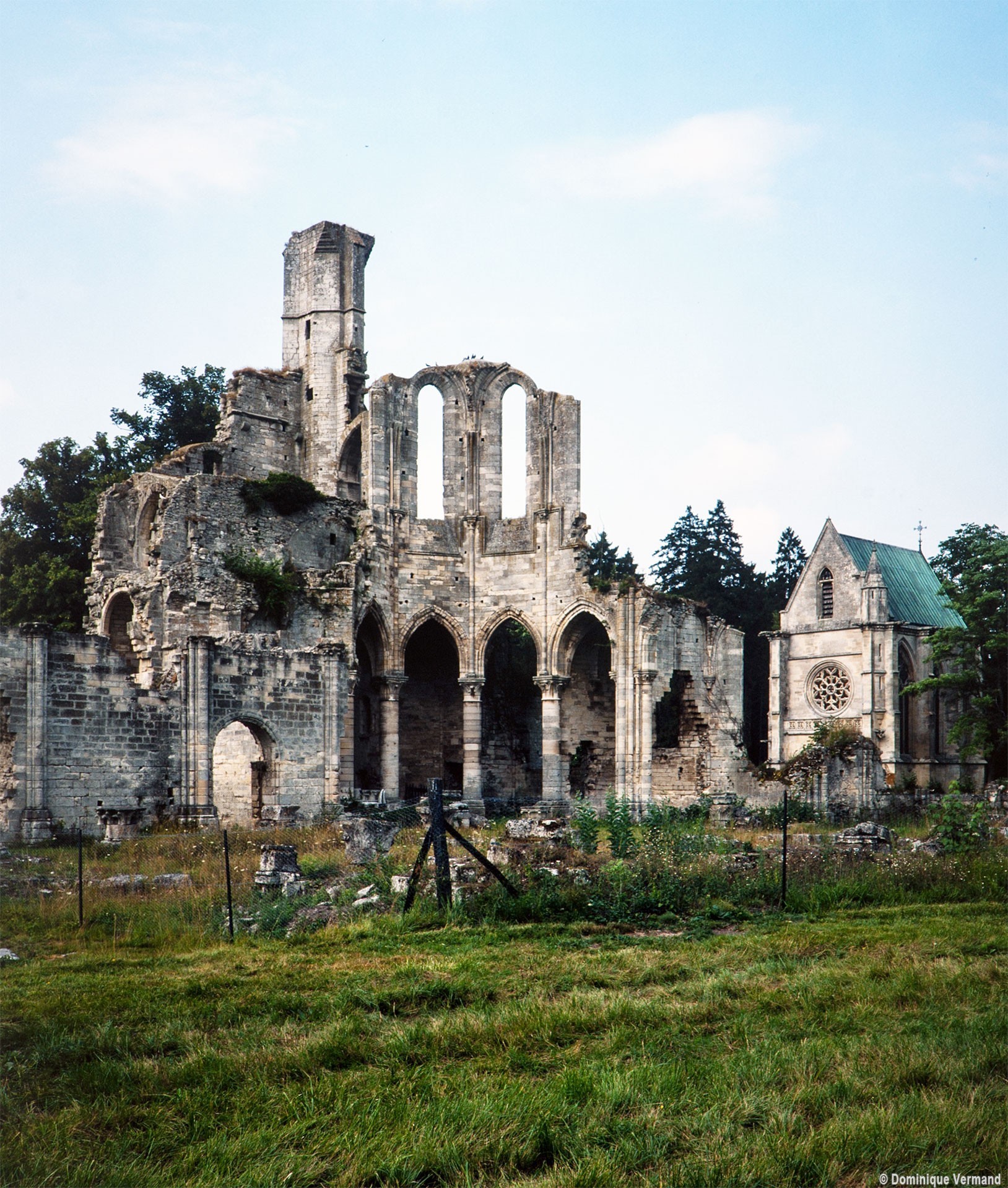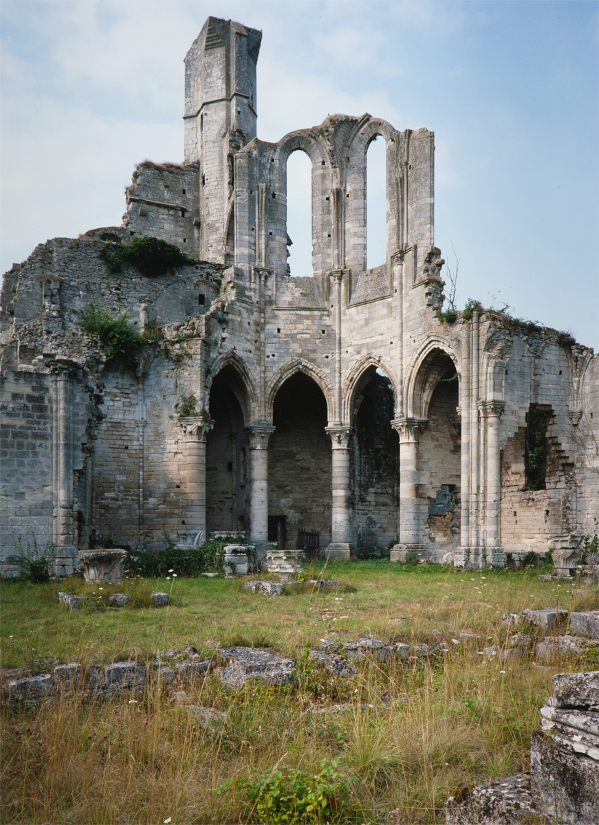 Restée très homogène si l’on excepte la construction de chapelles au sud de la nef vers 1278, l’église abbatiale avait été commencée au tout début du 13ème siècle et consacrée en 1219 par Guérin, évêque de Senlis et chancelier de Philippe Auguste. Longue de 82 m et d’une hauteur sous voûte de près de 20 m, elle était comparable, par ses dimensions, aux plus grandes abbatiales cisterciennes gothiques de cette partie du domaine royal : Royaumont, Longpont, Ourscamp…