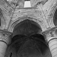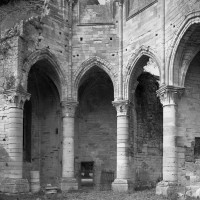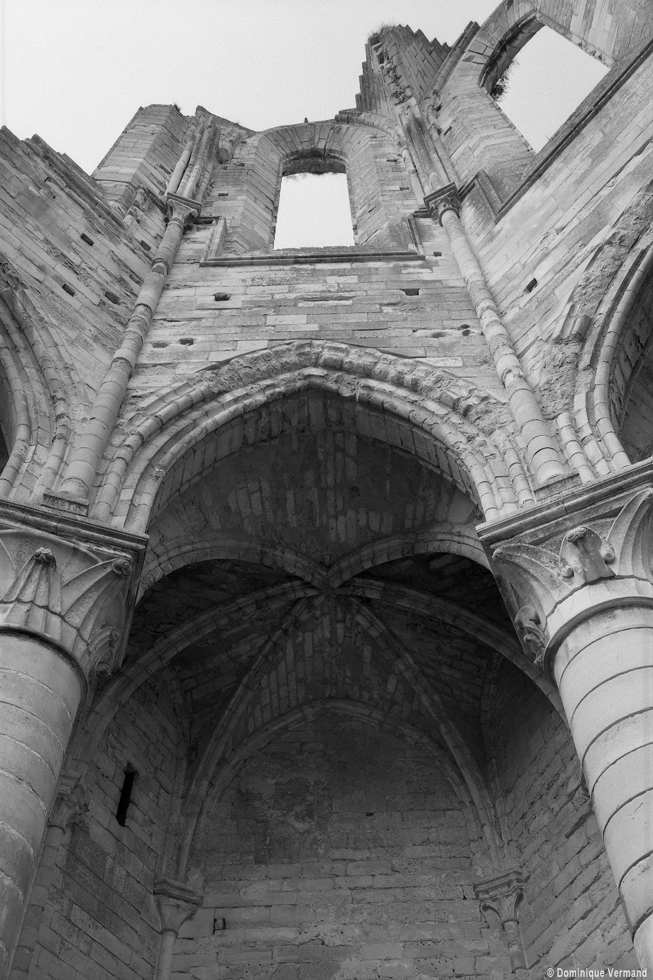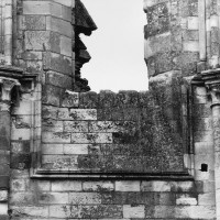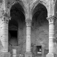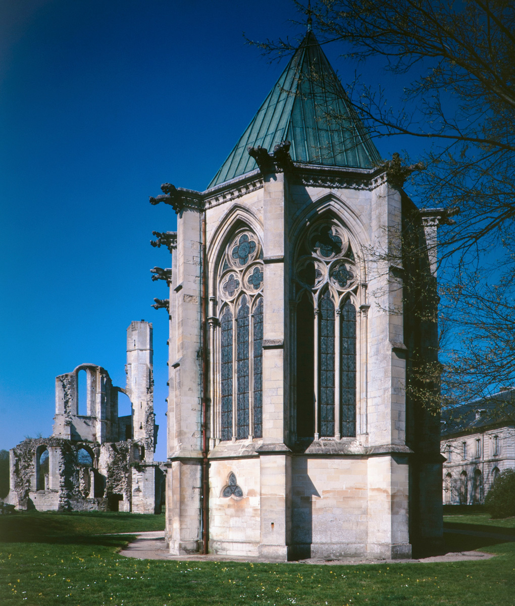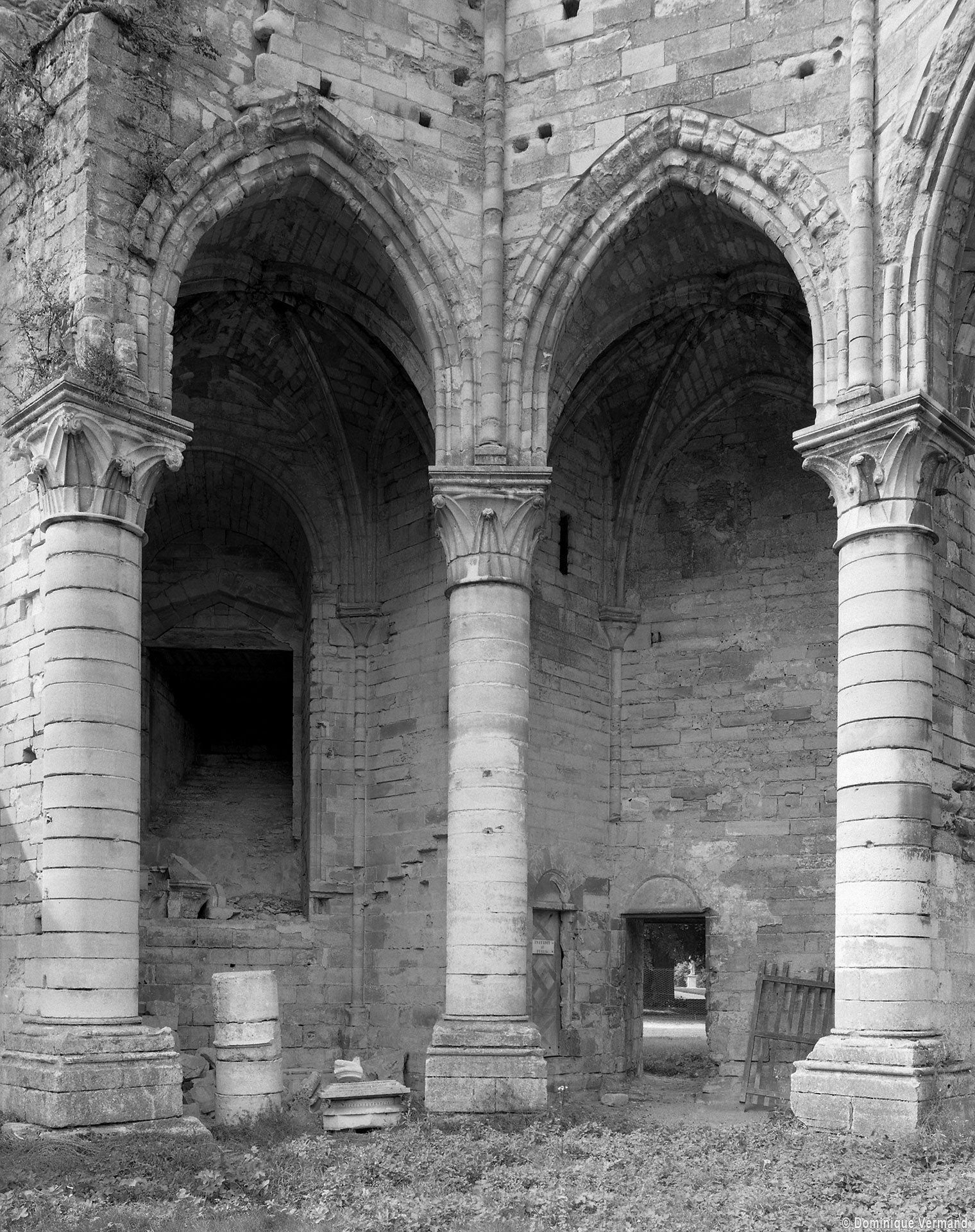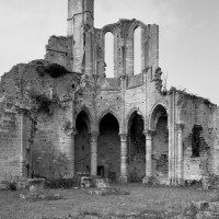 Mais la partie la plus originale était l’ensemble oriental, composé d’un vaste transept avec chapelles aux extrémités, de plan polygonal, et d’un chœur, également de plan polygonal, mais d’un développement très restreint puisque dépourvu déambulatoire. Le bras nord est encore bien conservé. Sept chapelles, de plan carré pour les parties droites et pentagonales pour la partie tournante, viennent s’y greffer. Toutes reçoivent des voûtes sexpartites.